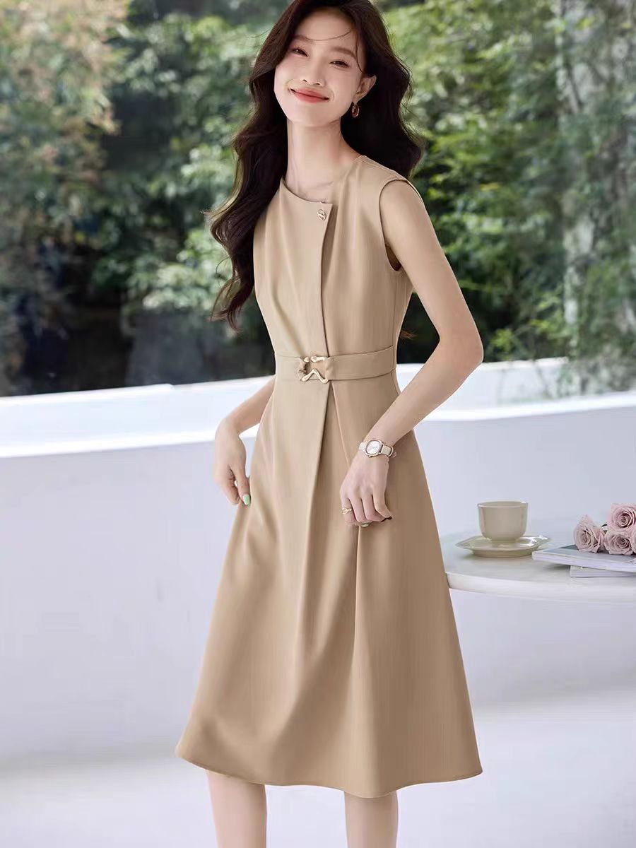 骨格ストレート夏服袖なしカジュアルシャツワンピース