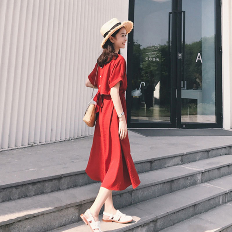 夏のお出かけにぴったりなシャツタイプのロングワンピースです。