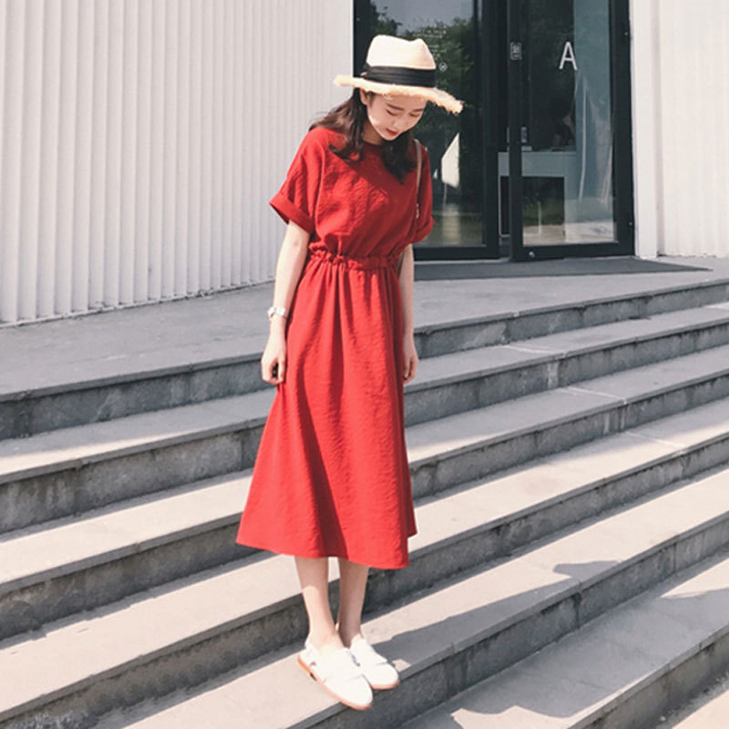 ウエスト部分のリボンベルトがアクセントになり、すっきりとしたスタイルを演出します。