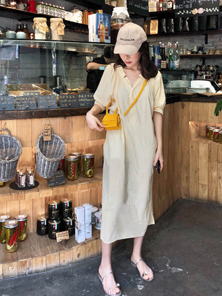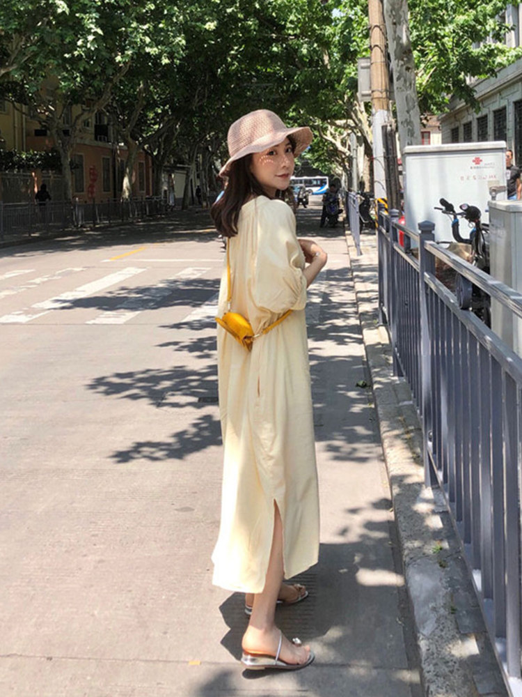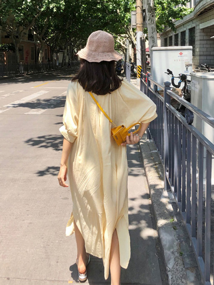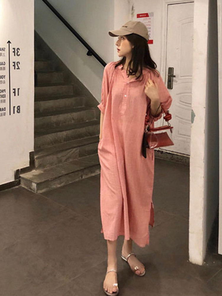 涼しげな素材感が魅力のシャツタイプのロングワンピースです。