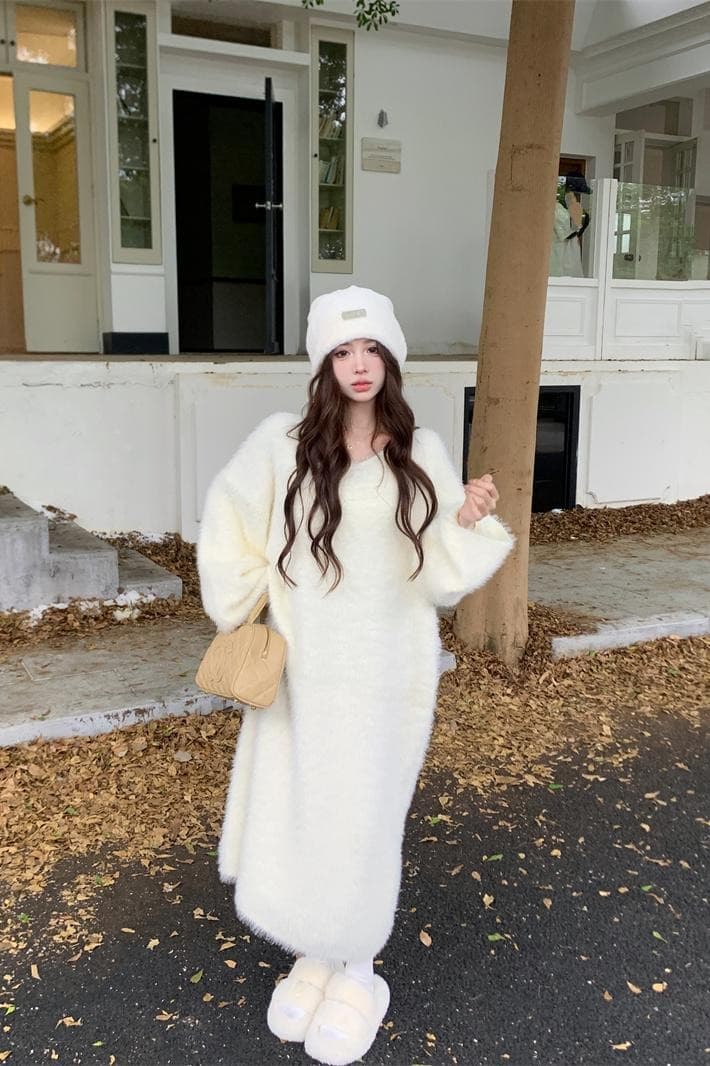 柔らかな肌触りが魅力的なニット素材を使用したロングワンピース。