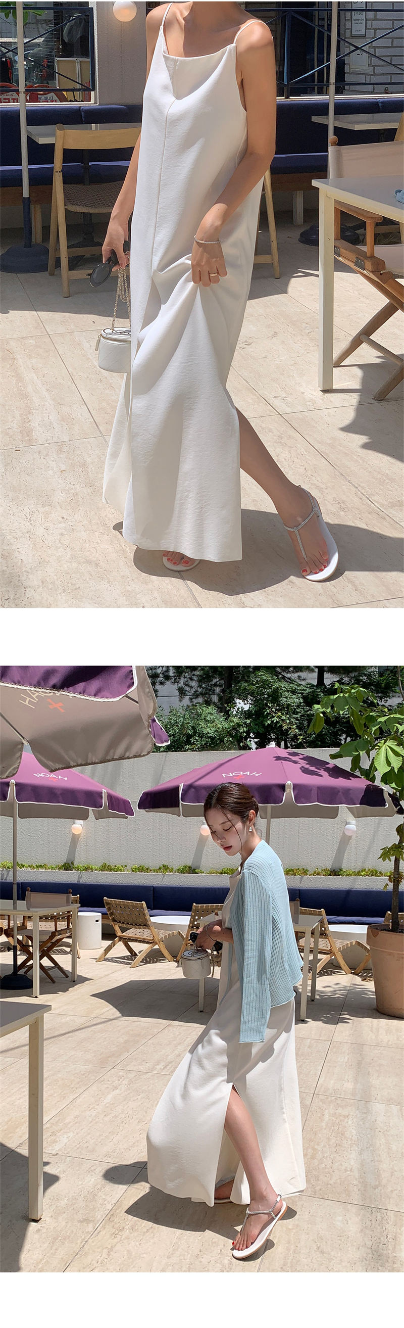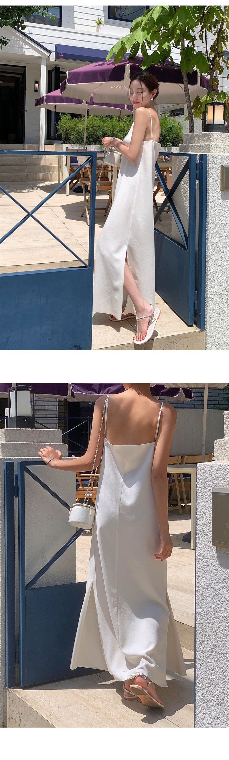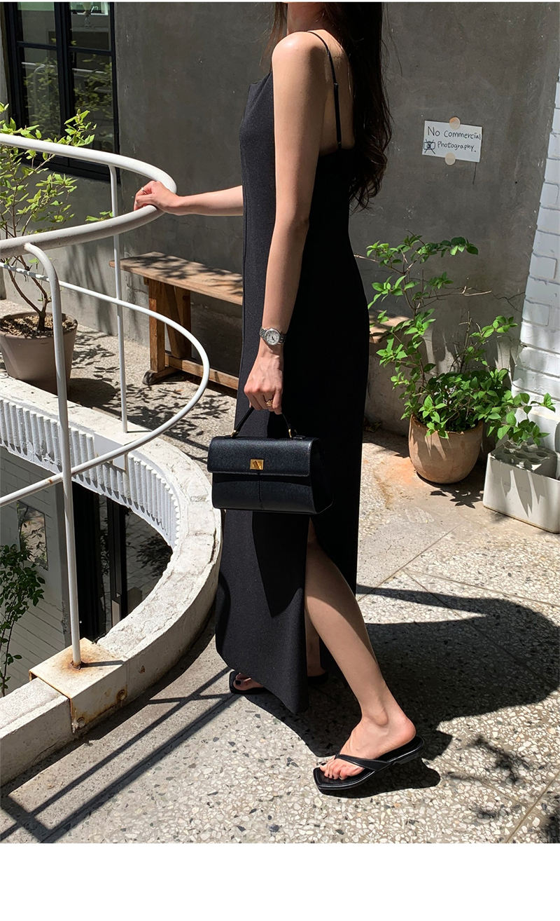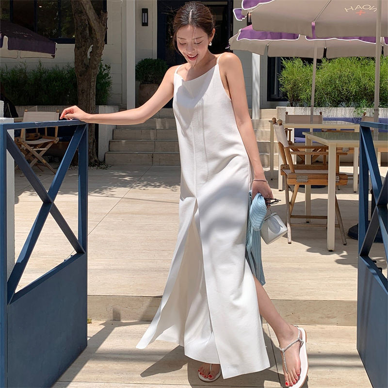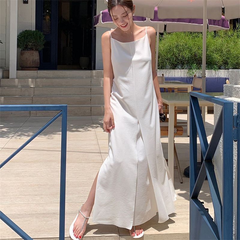 上品な韓国風デザインのキャミソールロングワンピース。