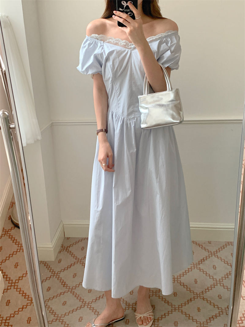 上品なレース襟がアクセントの白いシャツワンピースです。