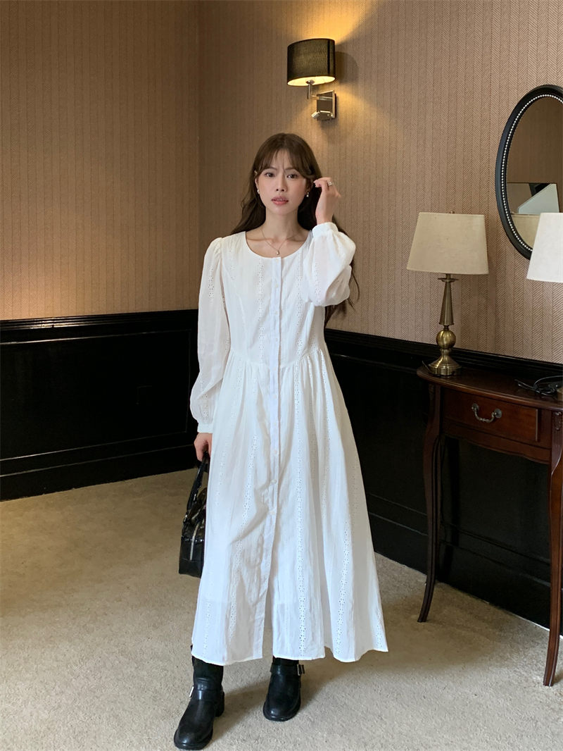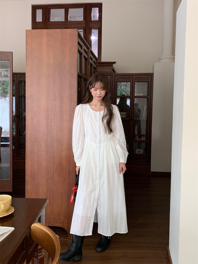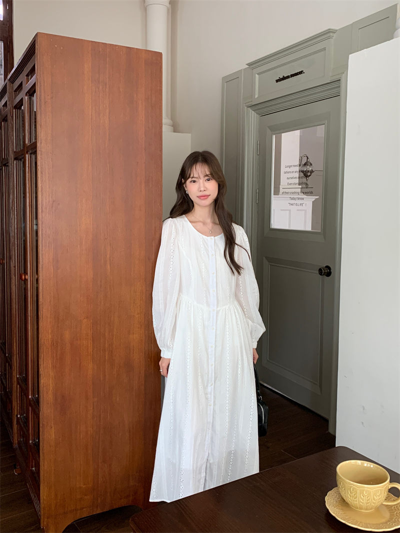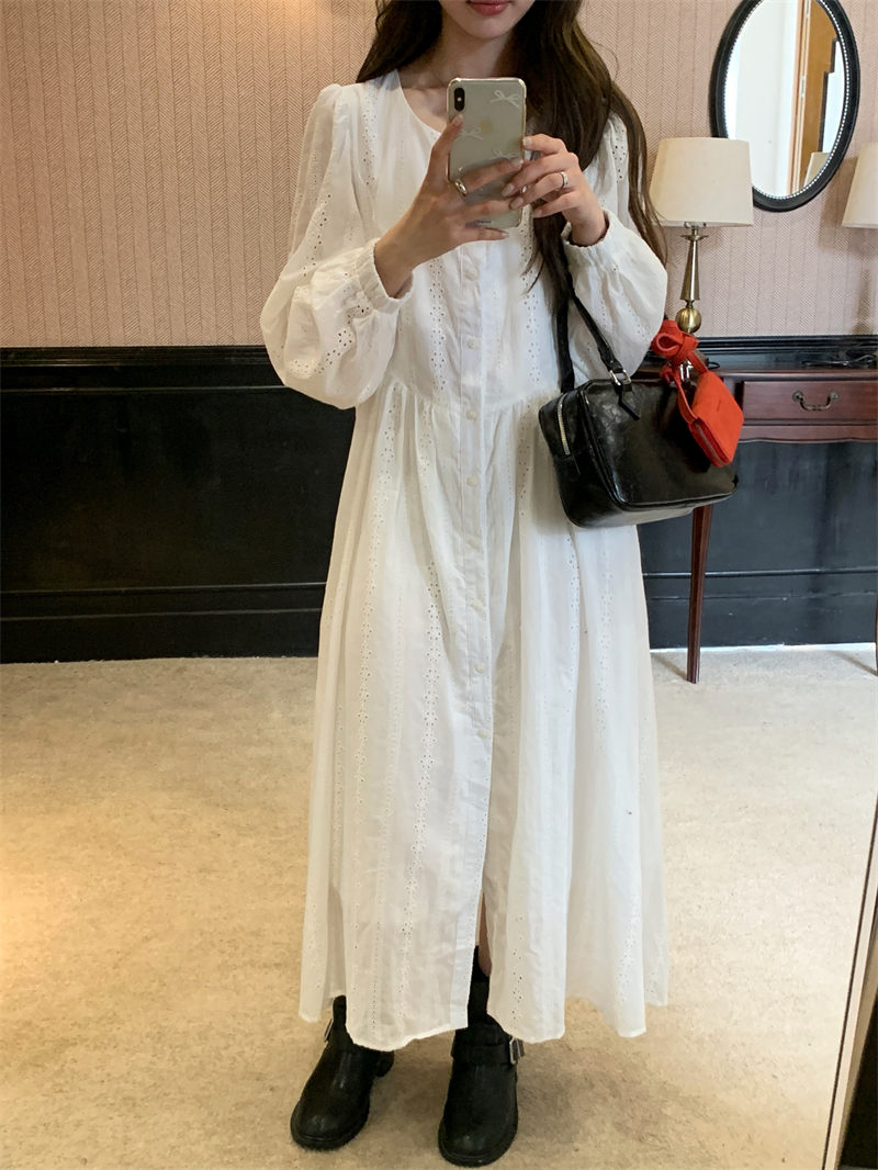 上品な刺繍レースが美しい韓国風シャツワンピース。