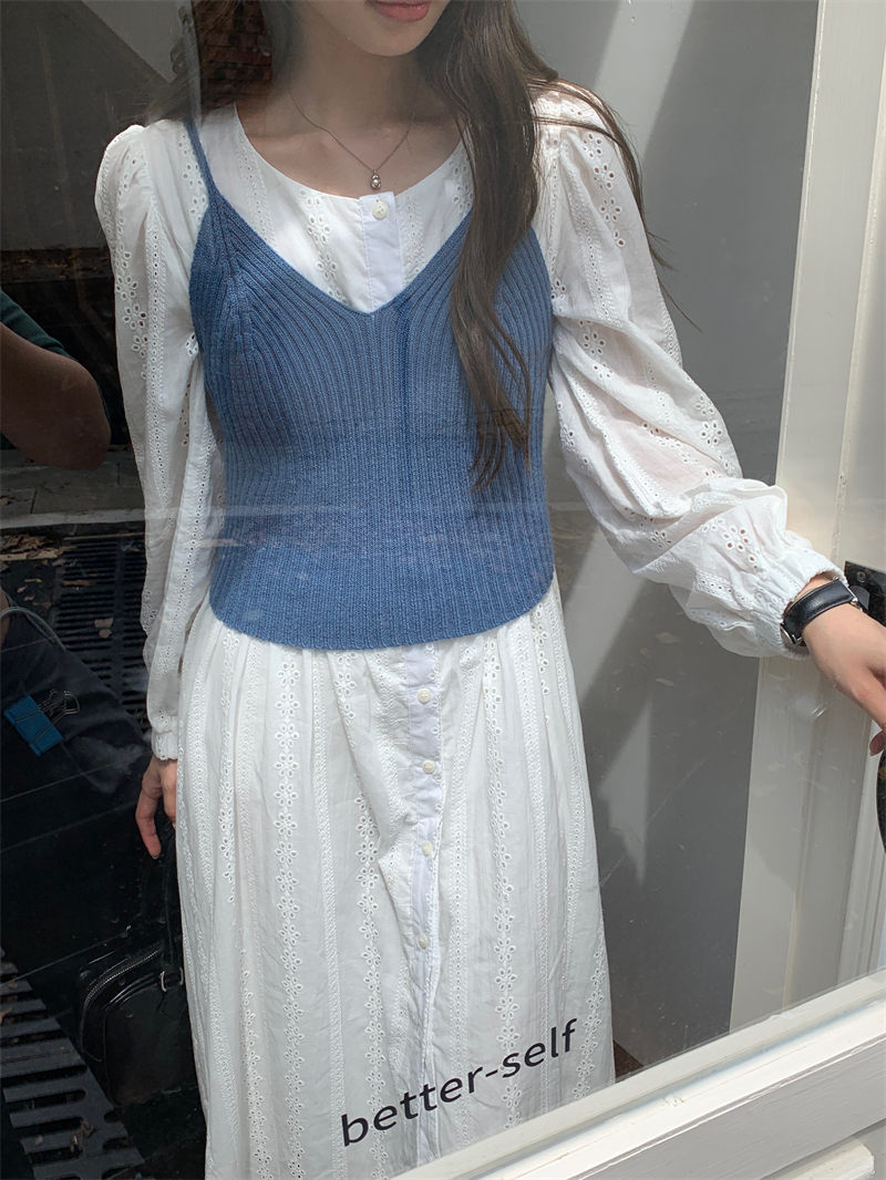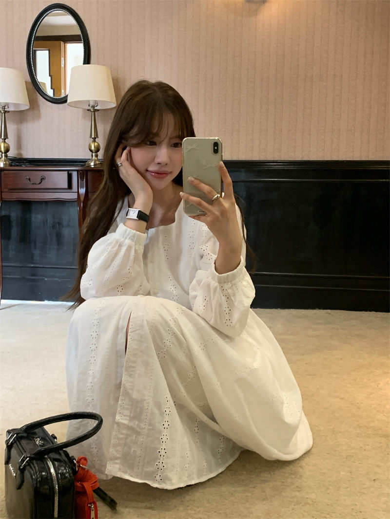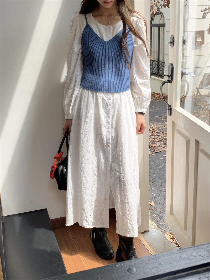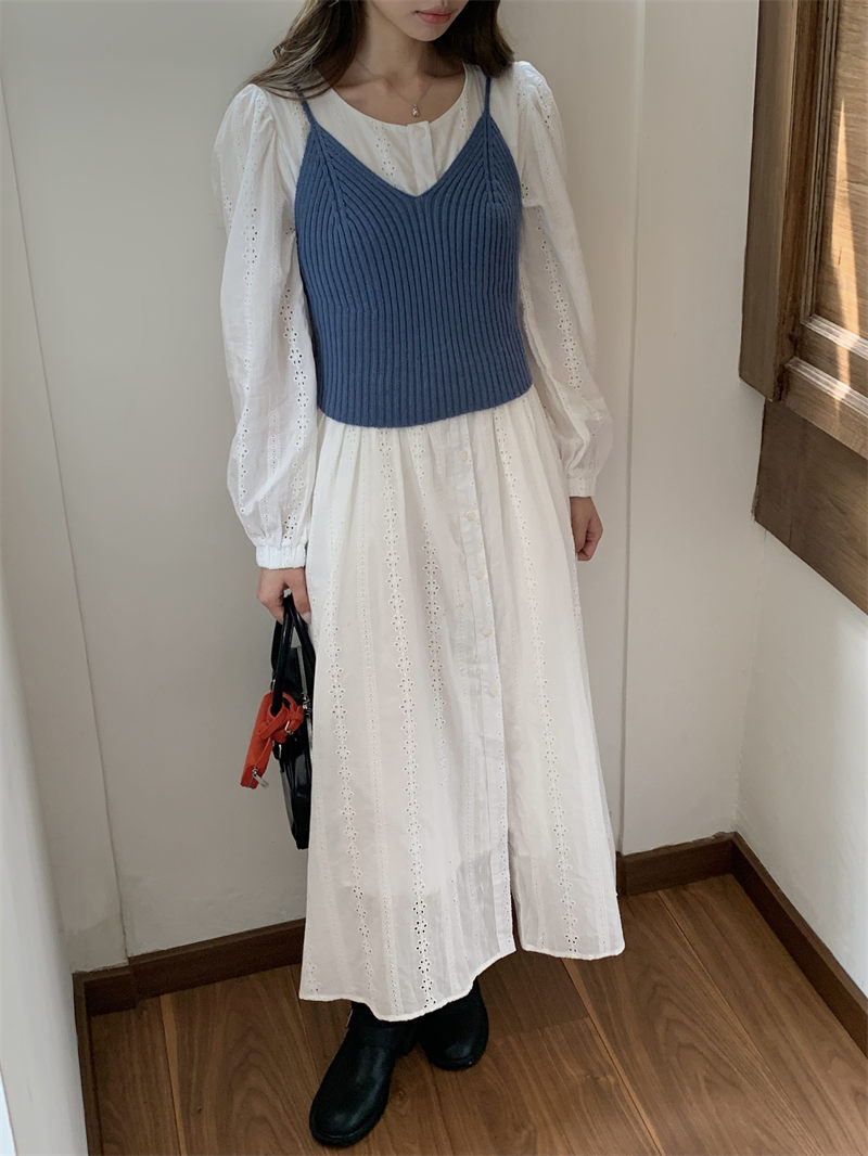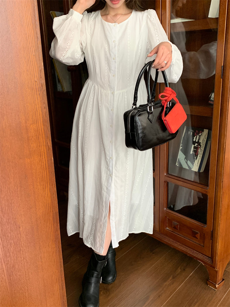 上品な刺繍レースが美しい韓国風シャツワンピース。