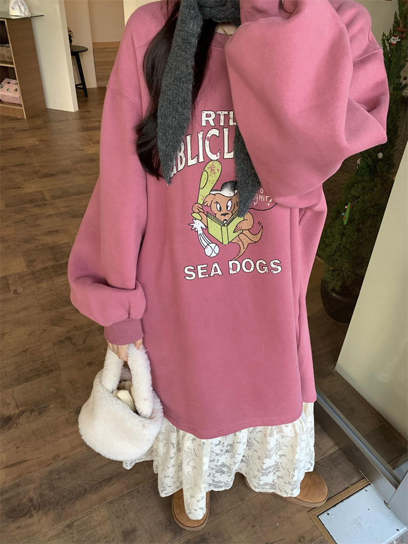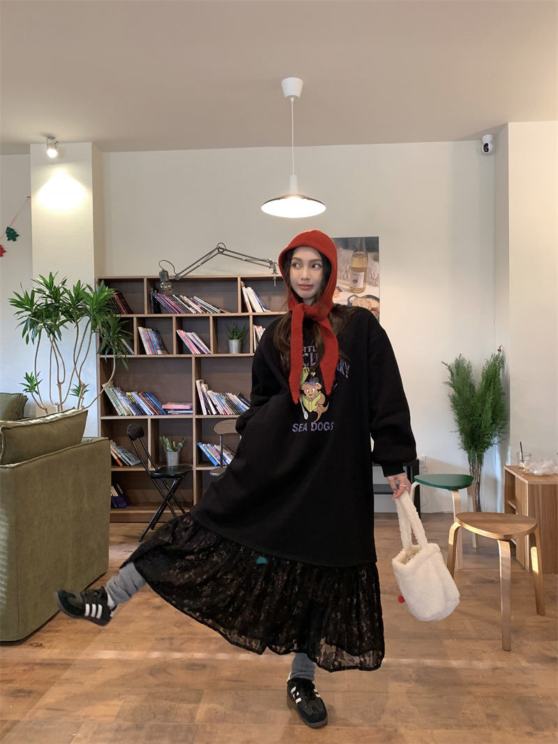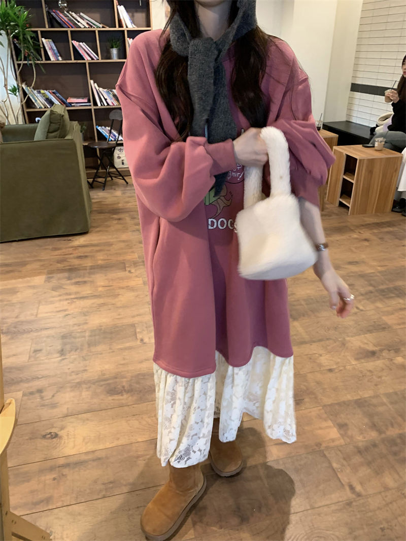 ゆったりとしたシルエットで着心地抜群、裾のレース切り替えが女性らしさを演出します。