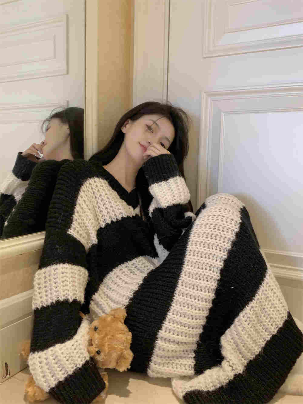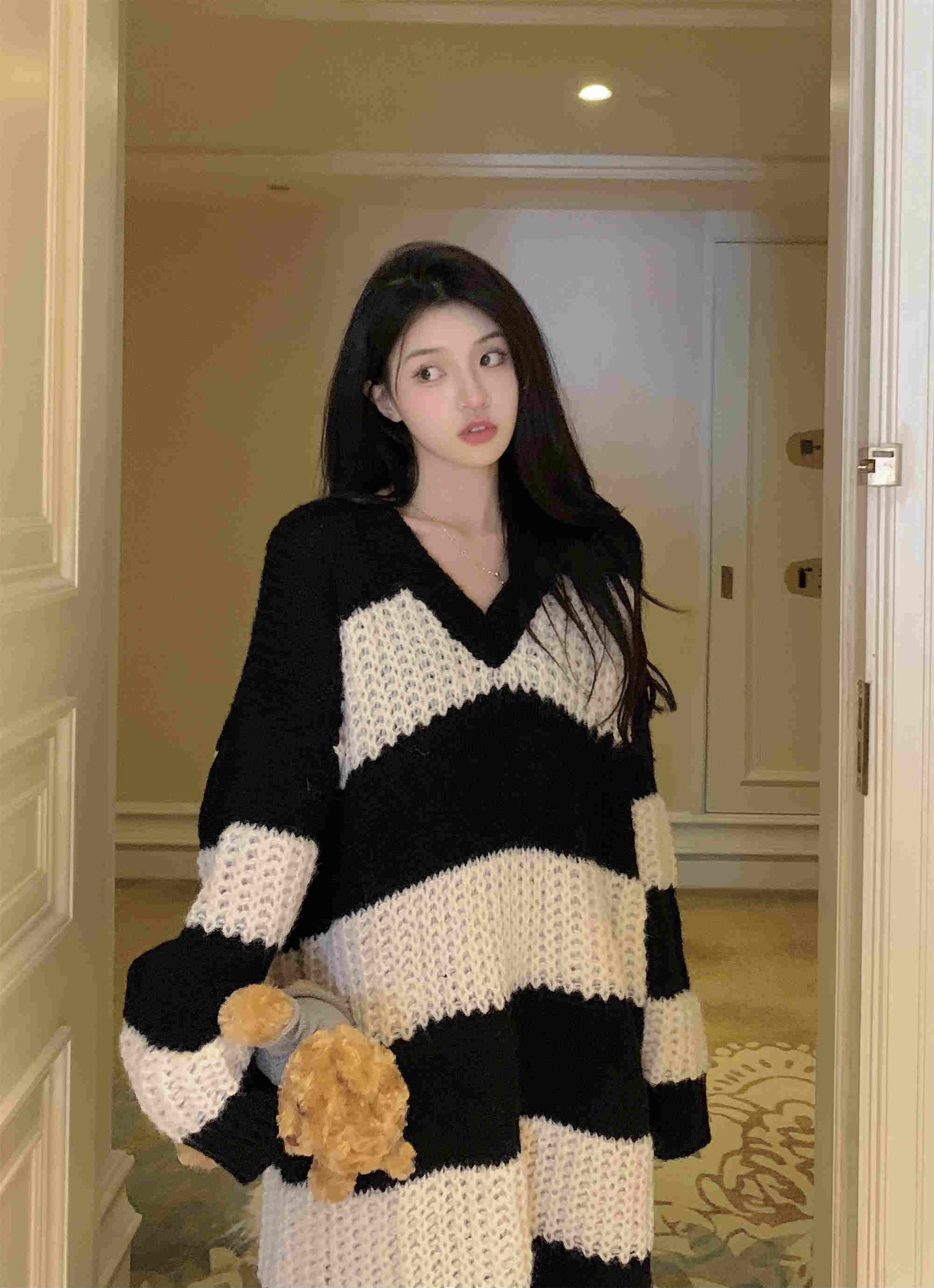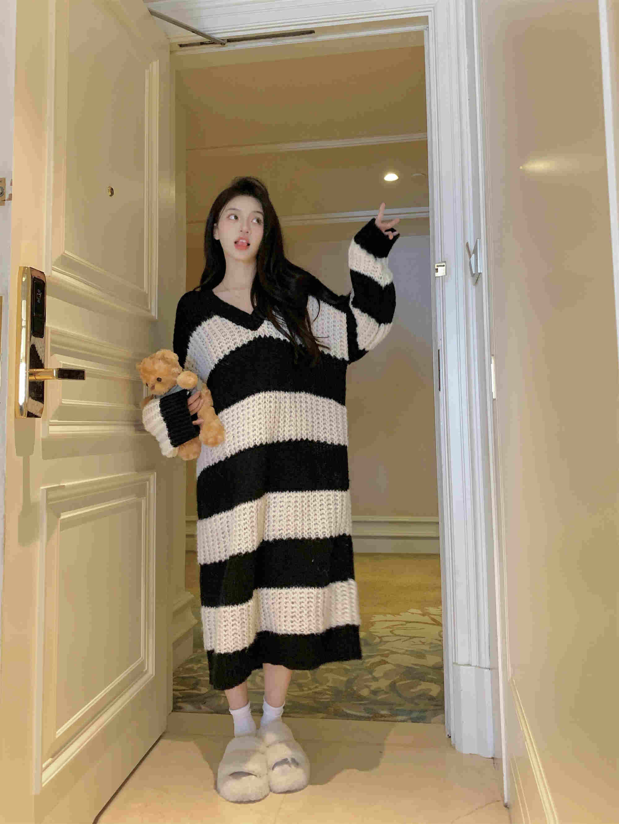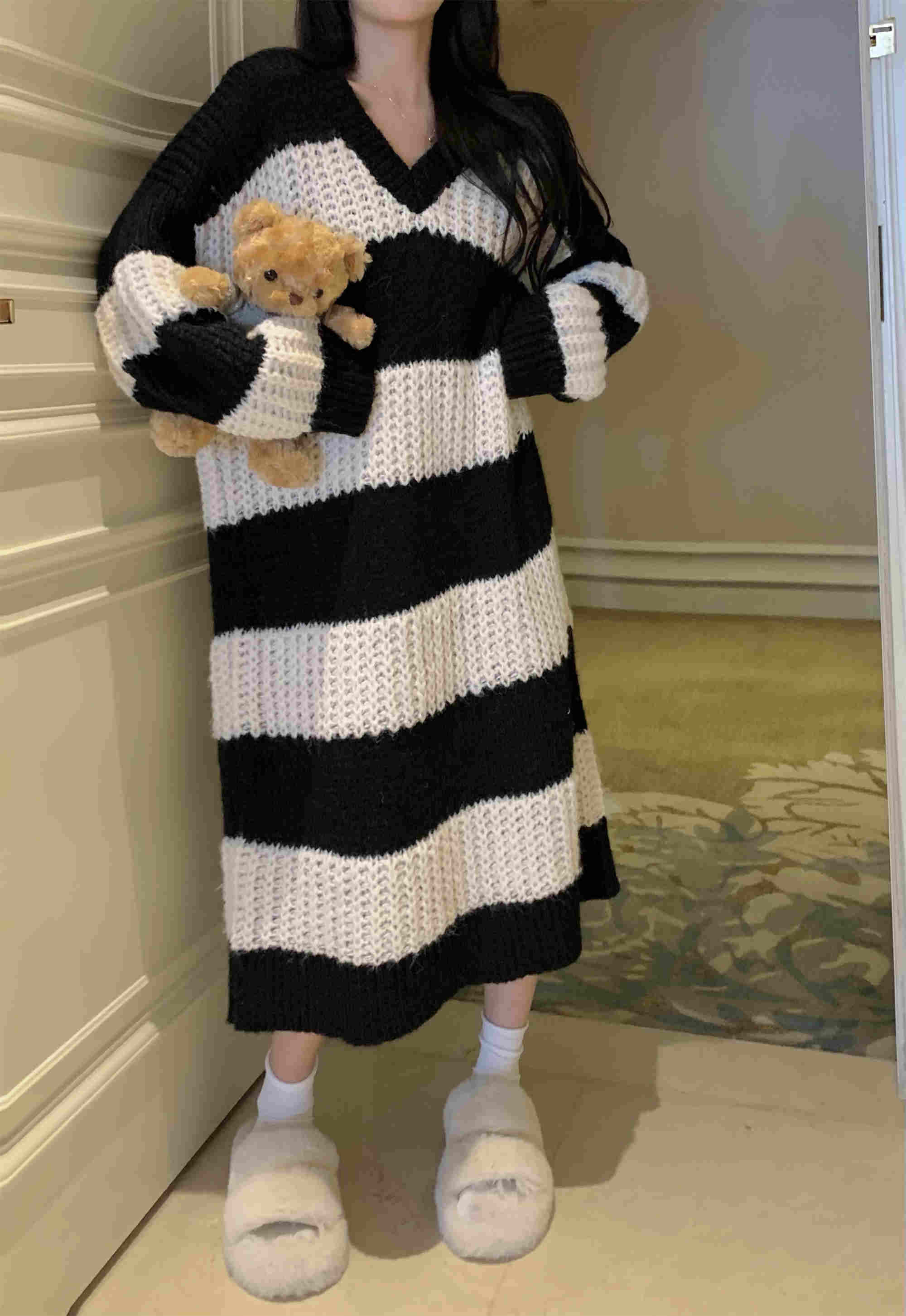 秋冬にぴったりの可愛いボーダー柄ニットワンピースが登場。