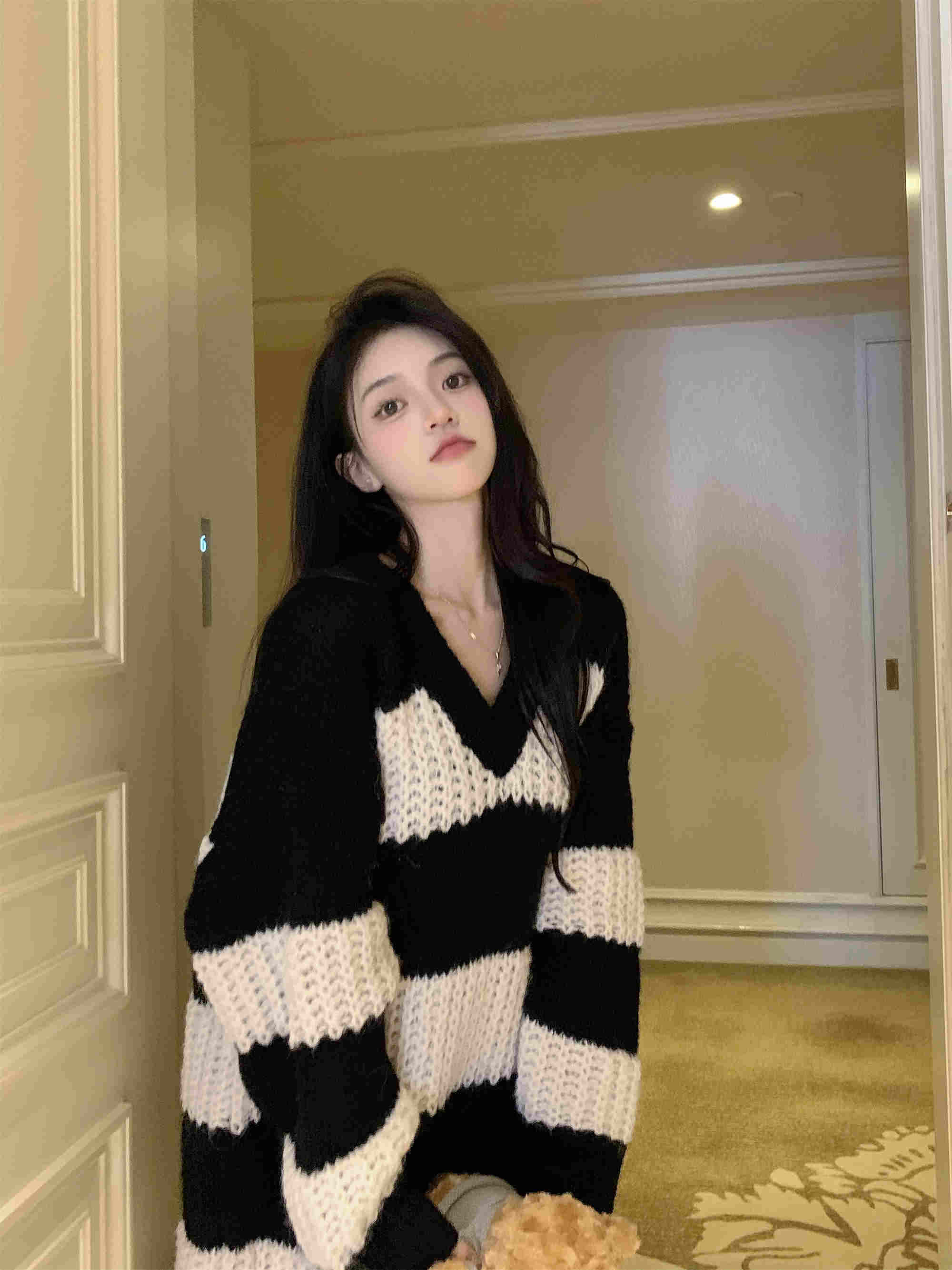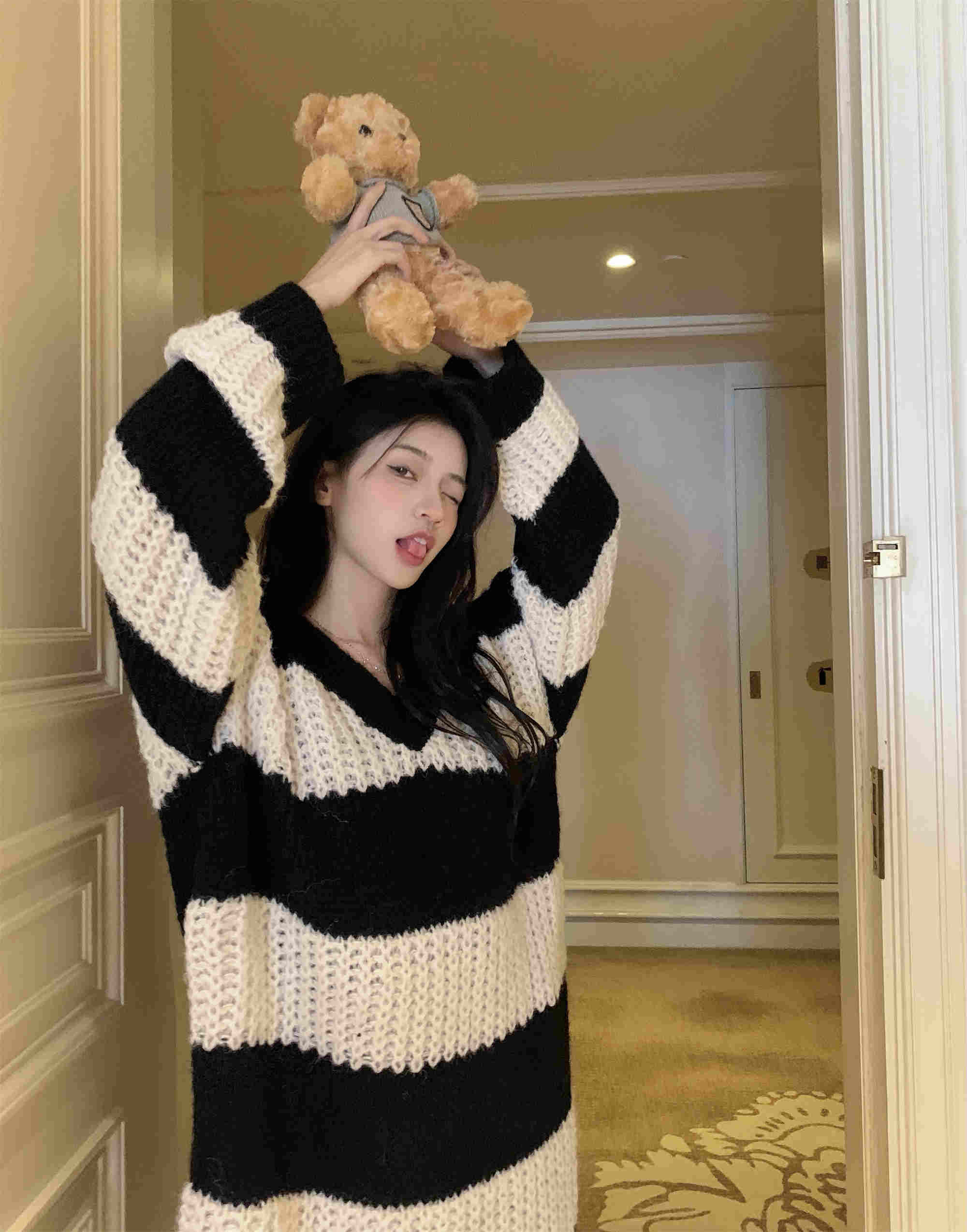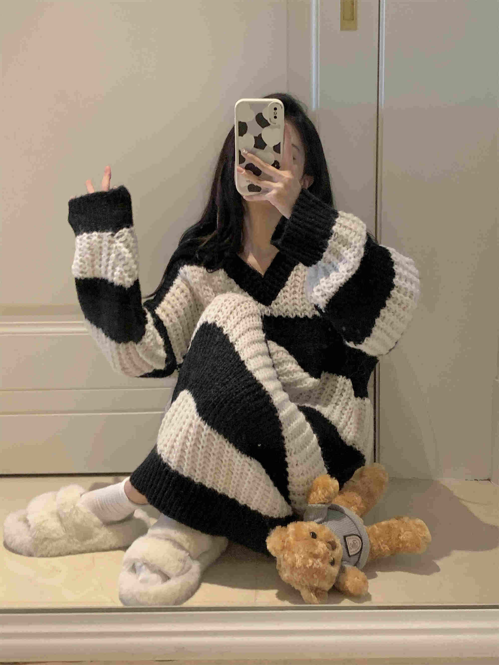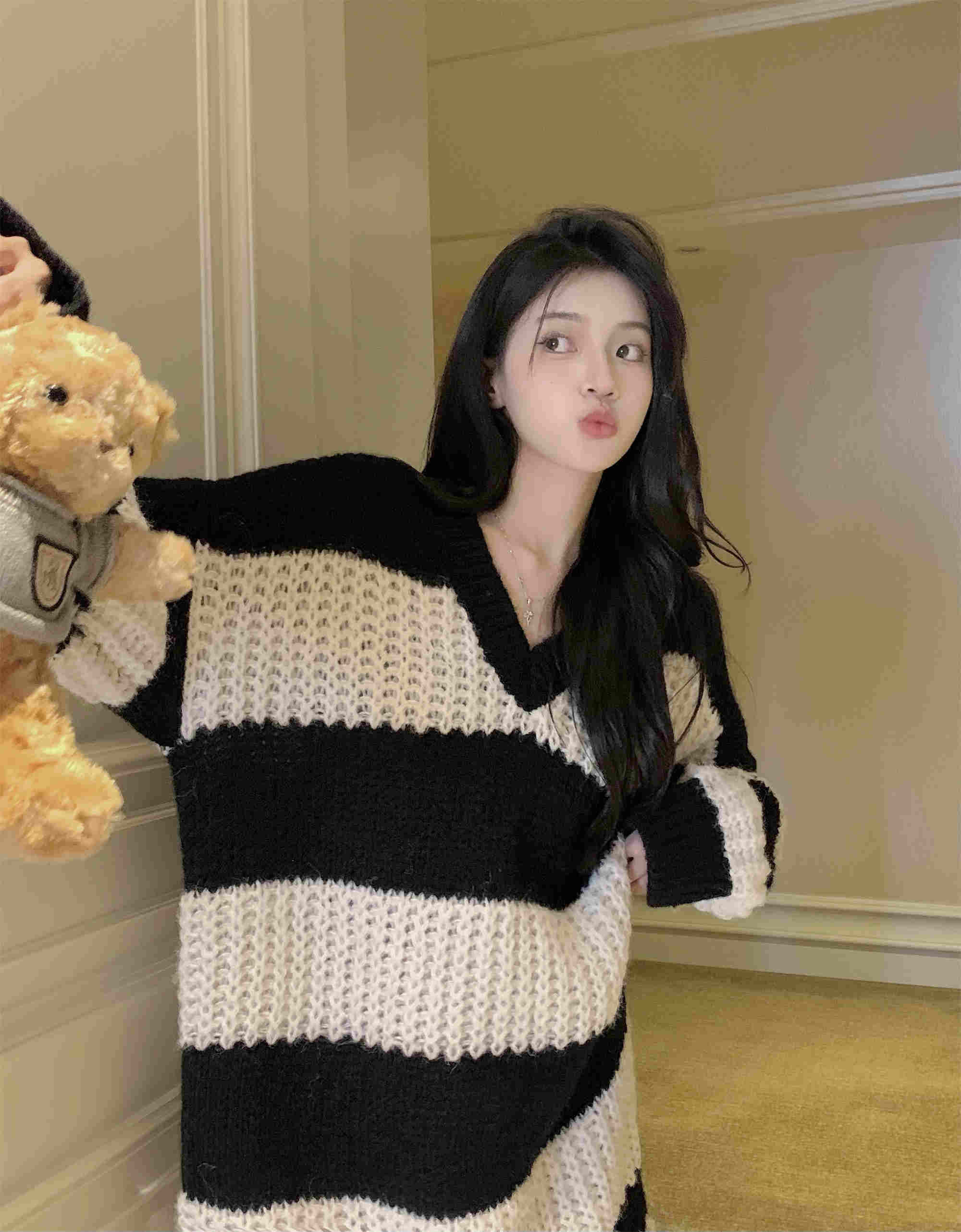 秋冬にぴったりの可愛いボーダー柄ニットワンピースが登場。