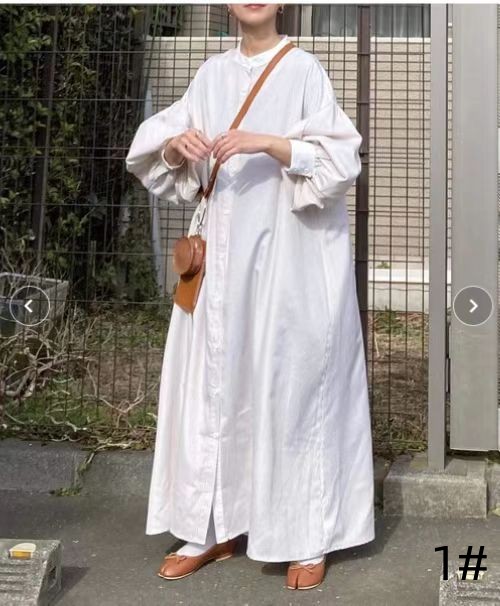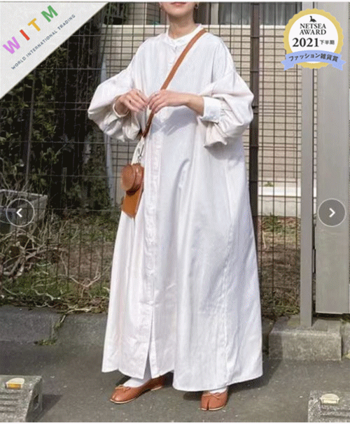 シャツタイプでカジュアルに着こなせて体型カバー効果も抜群。