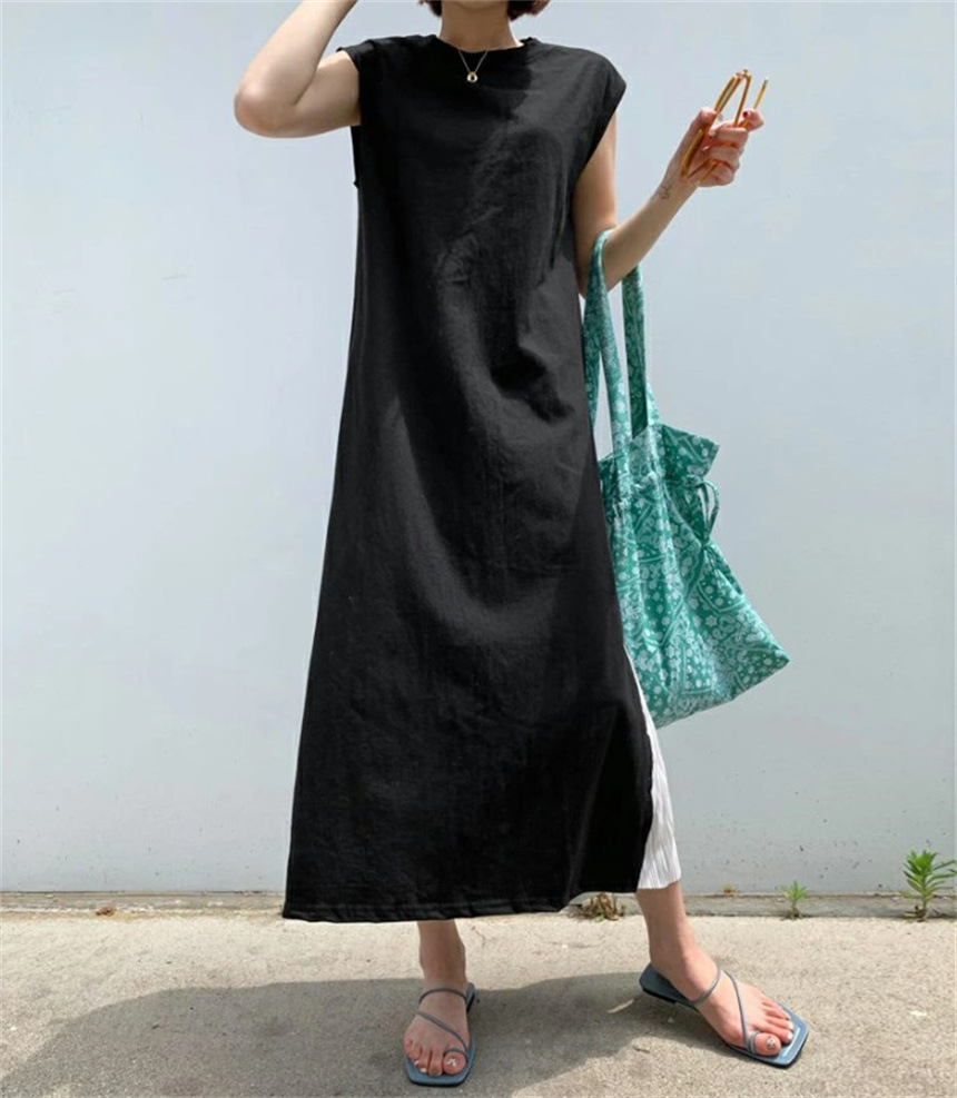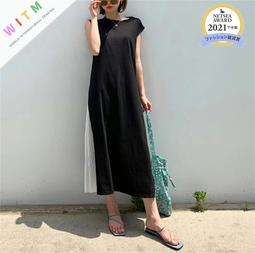 マキシ丈で上品な印象を与える一着です。