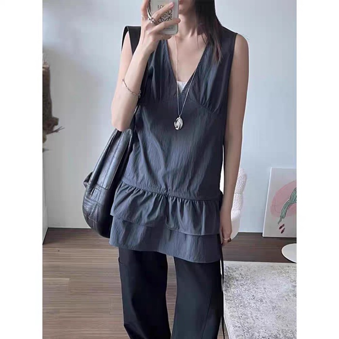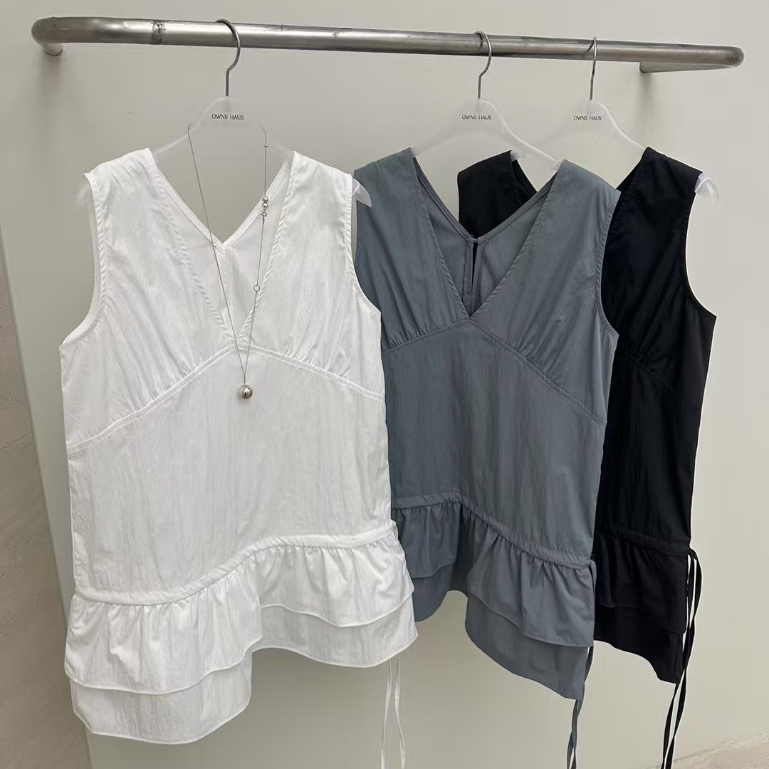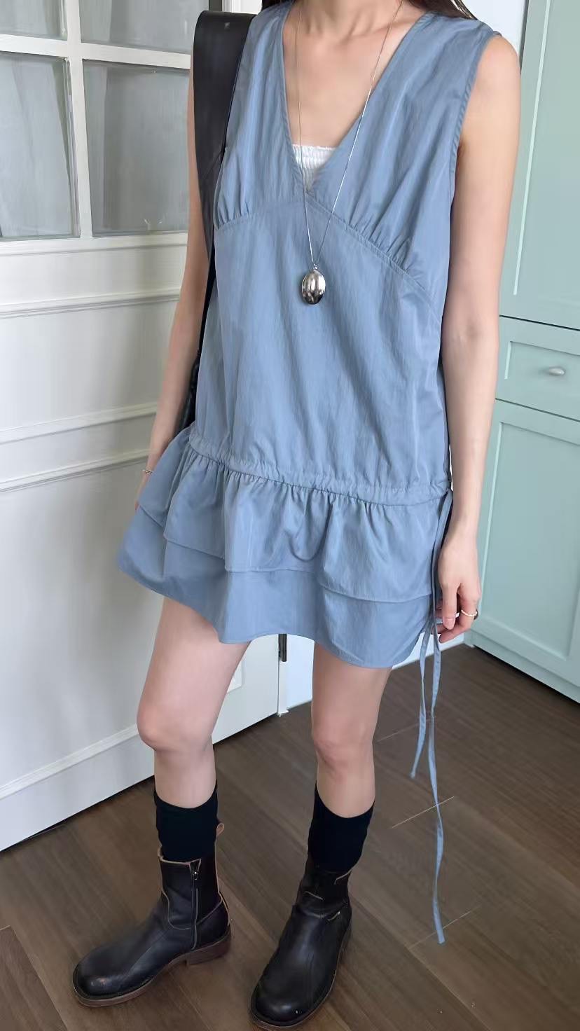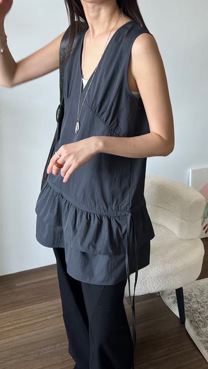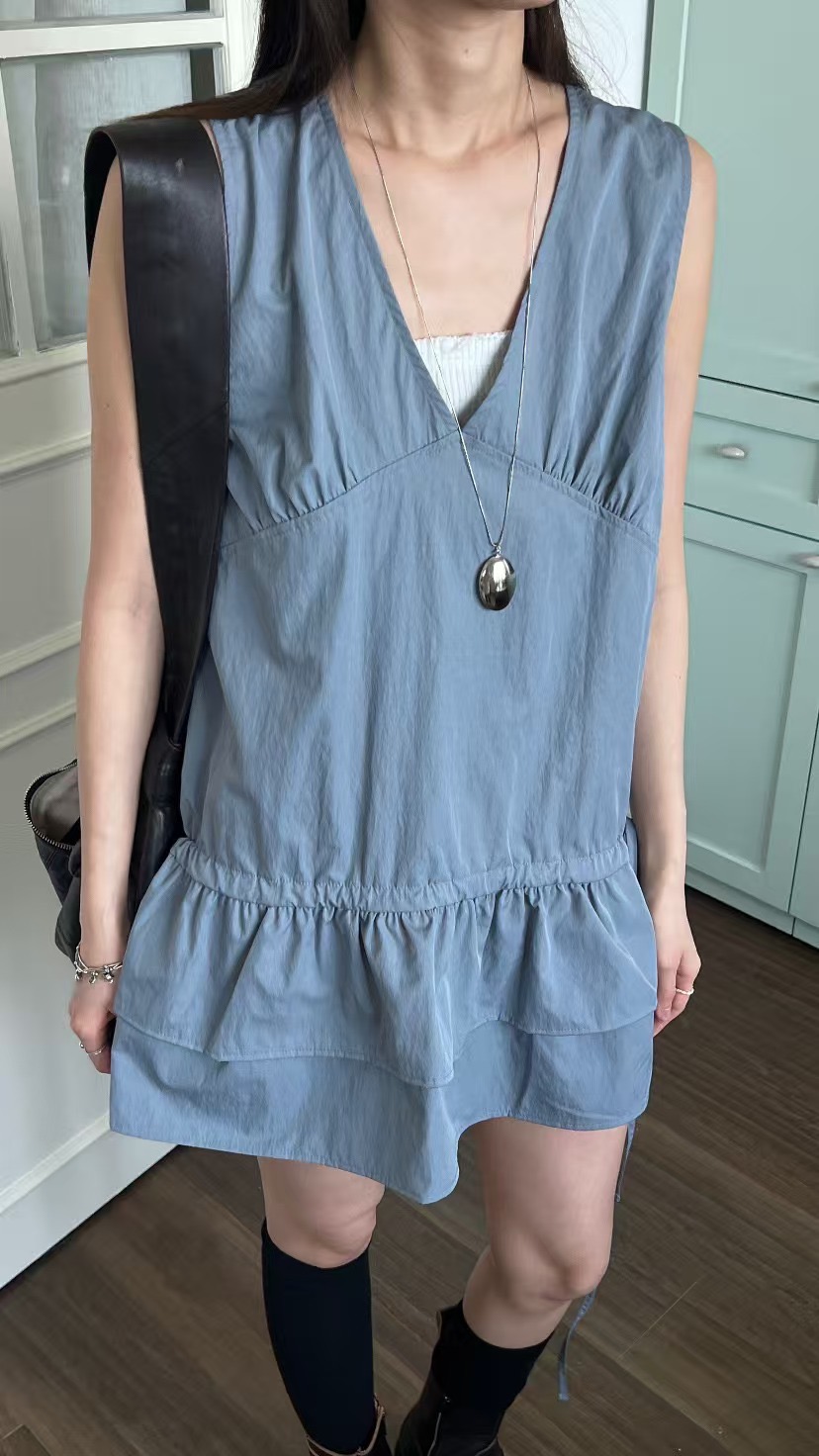 軽やかな生地感と段フリルの裾がエレガントな印象を与えます。