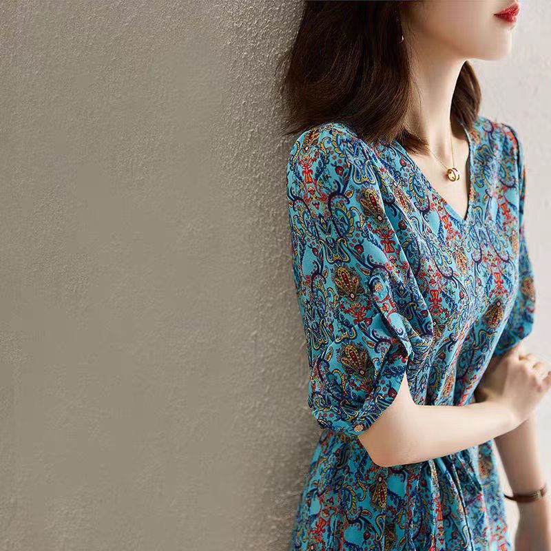 美しい花柄が印象的なシャツワンピースです。