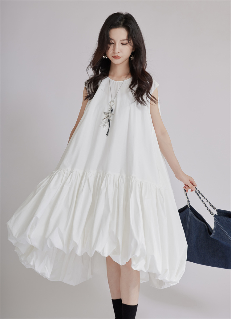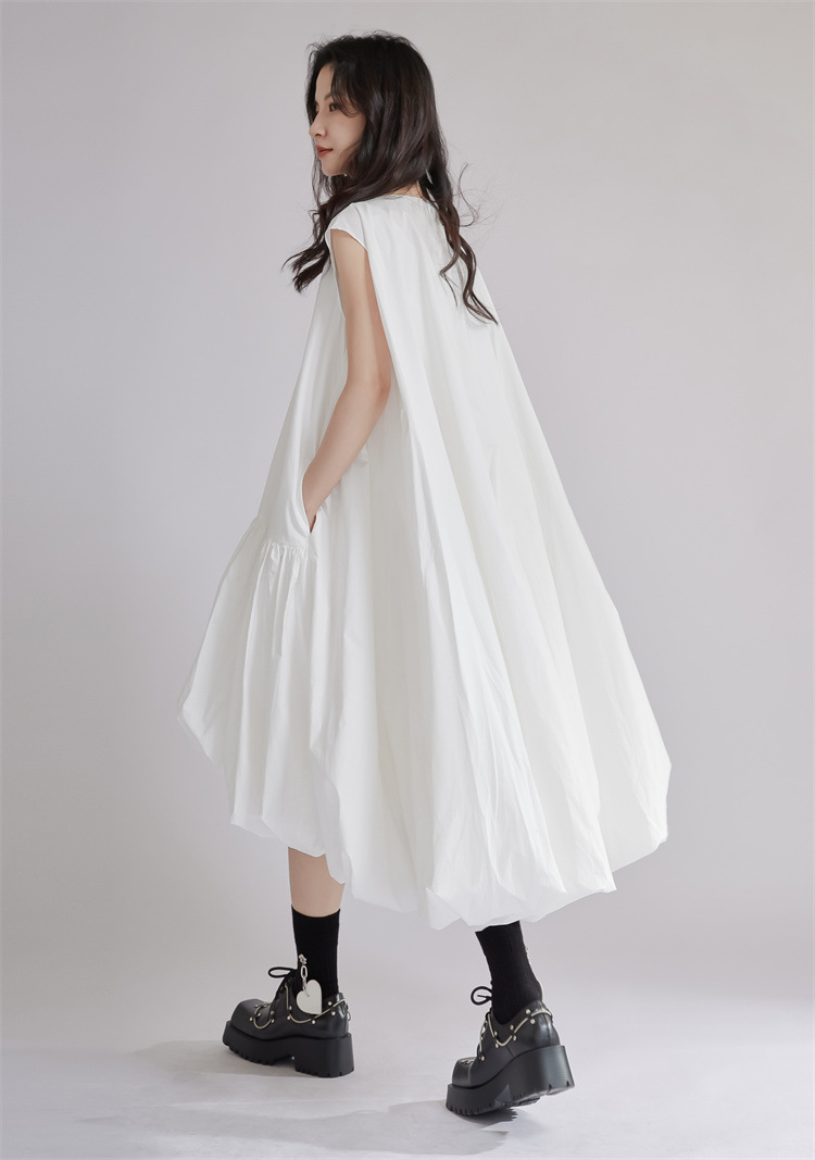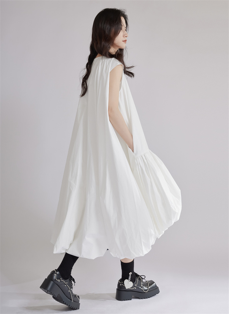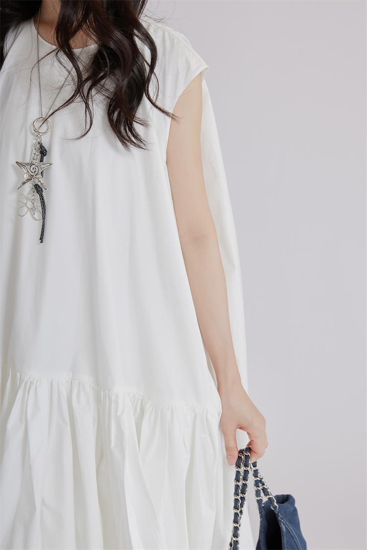 涼しげな白色のゆったりシャツワンピースです。