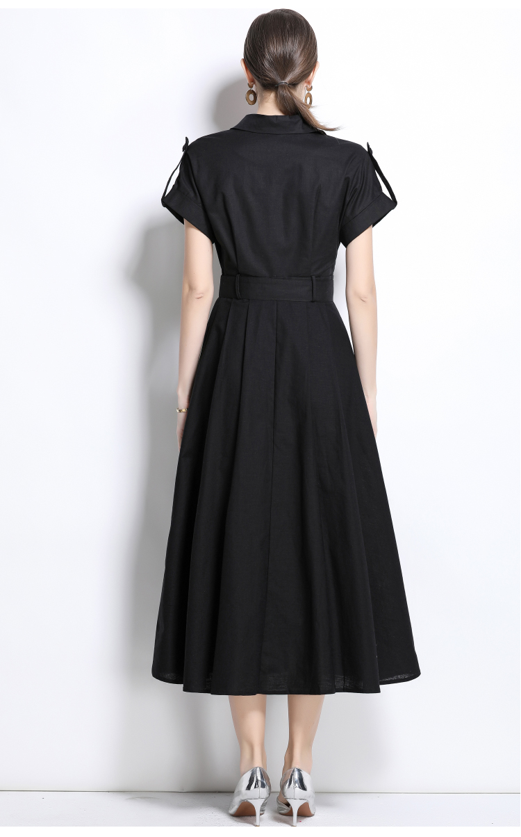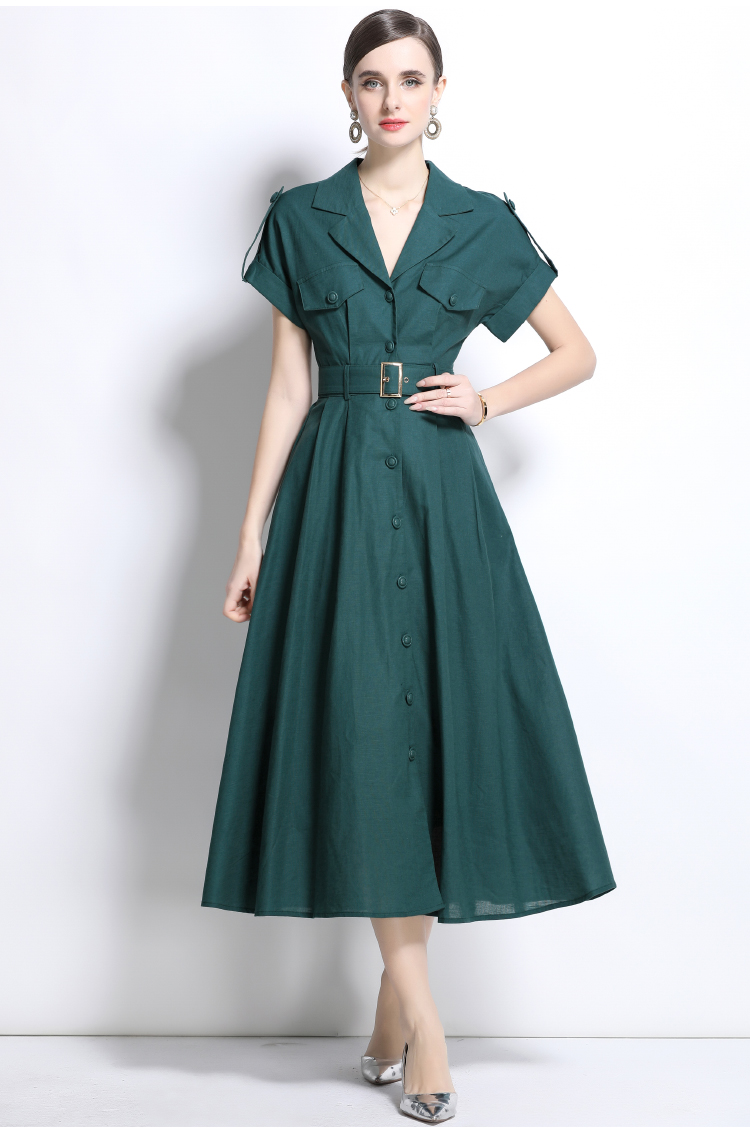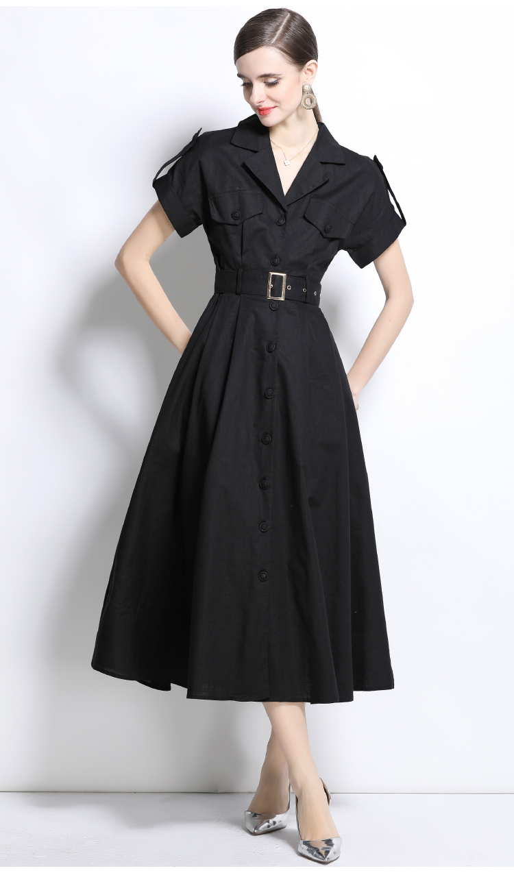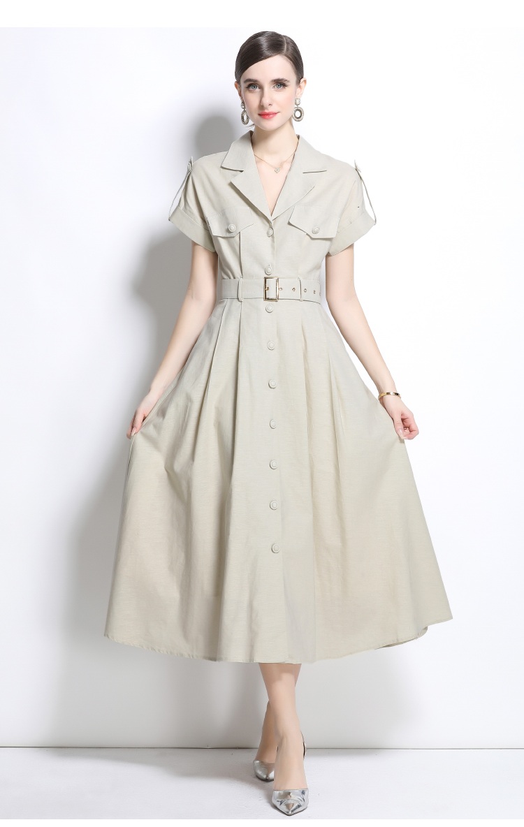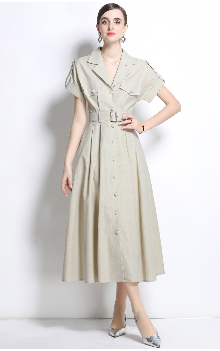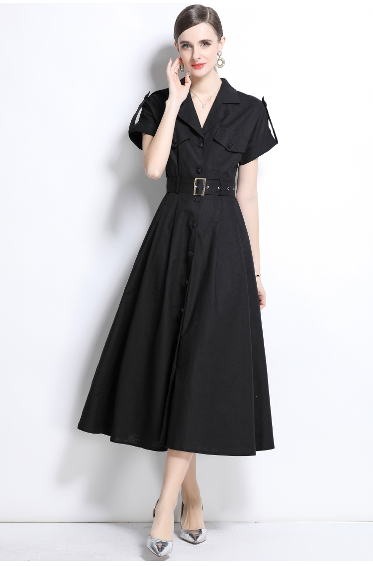 襟付きデザインが洗練された印象を与えるシャツタイプのロングワンピースです。
