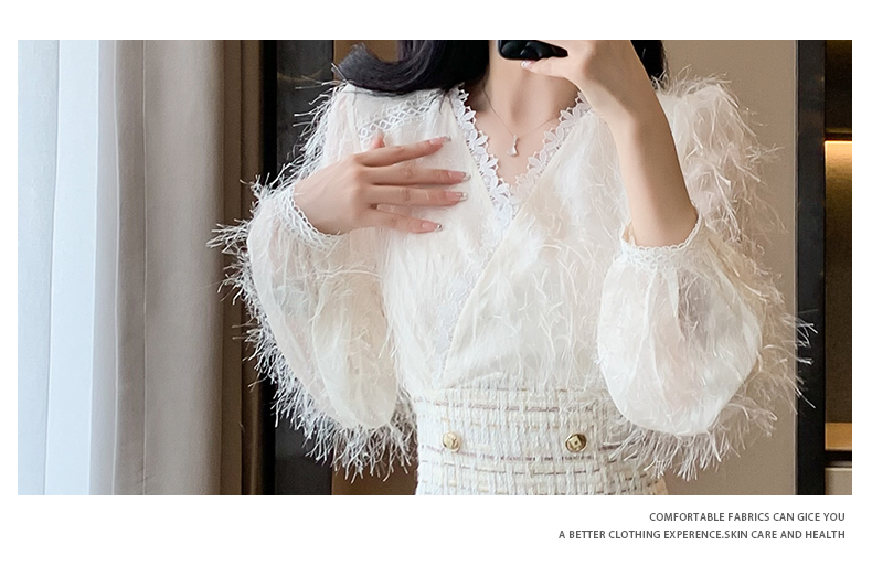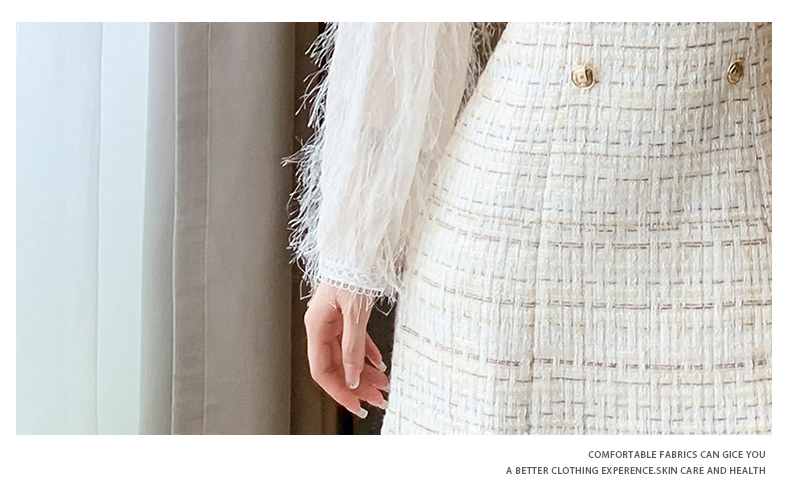 袖部分の繊細なフリンジデザインが華やかさをプラスし、エレガントな印象に。