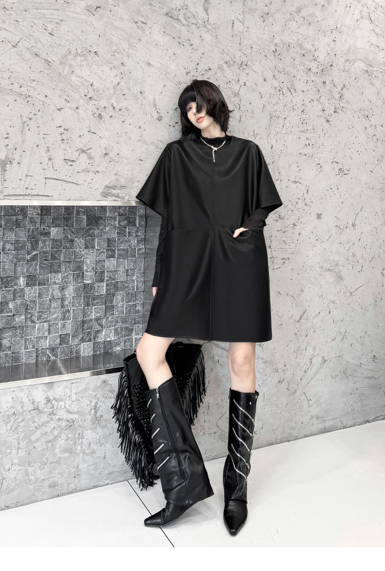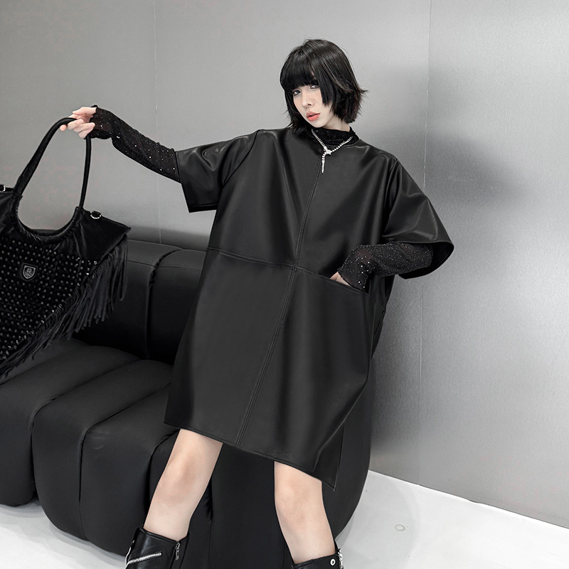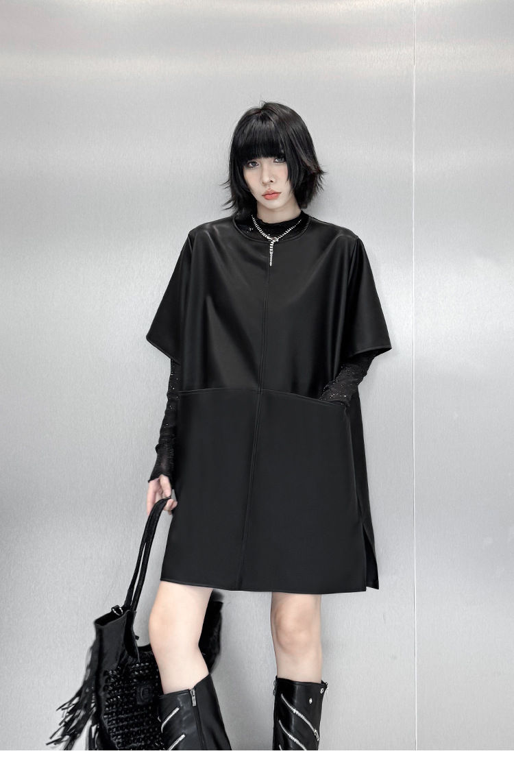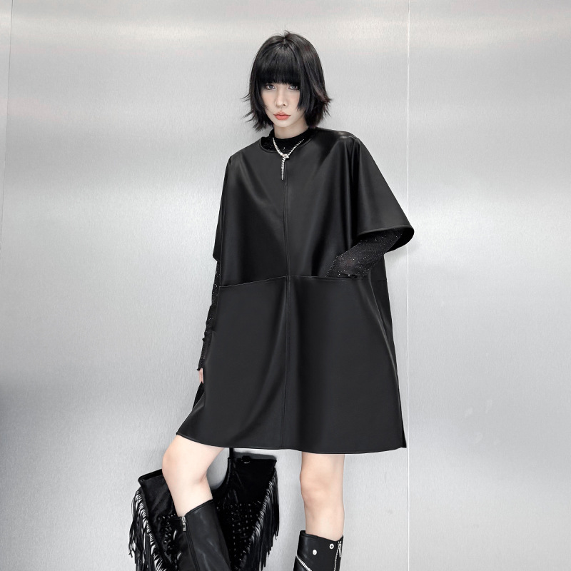 シャツスタイルとロングワンピースの要素を組み合わせた個性的なデザイン。