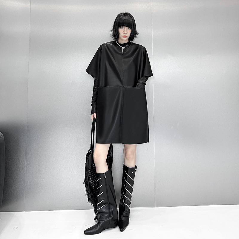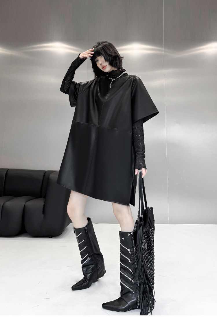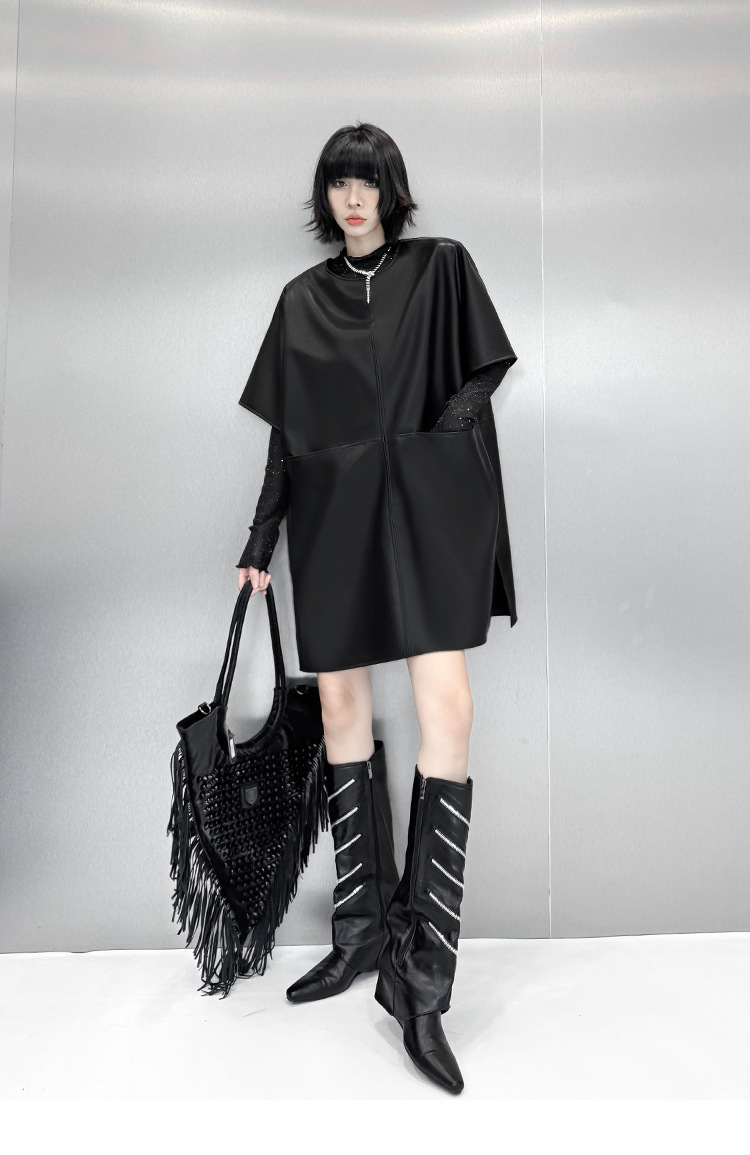 合成皮革の切替がモードな印象を演出し、通勤通学にも対応できる上品な仕上がりです。