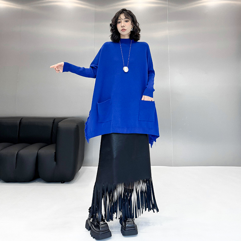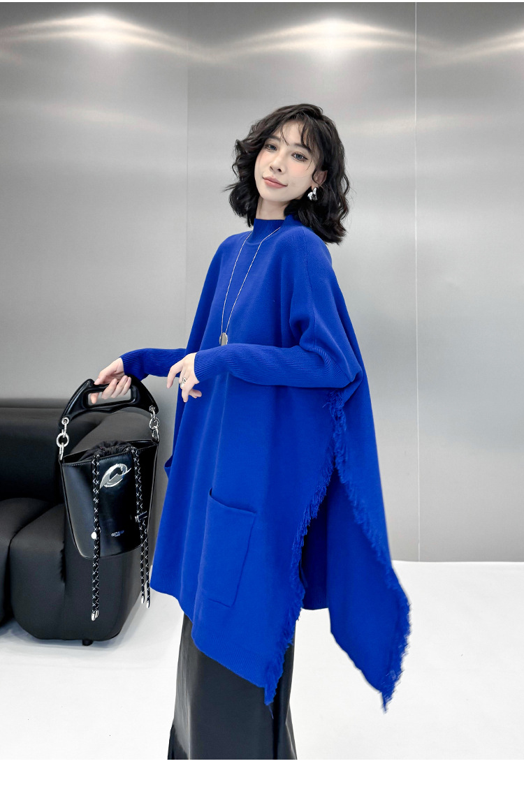 鮮やかなブルーが印象的なニット素材のロングワンピースです。