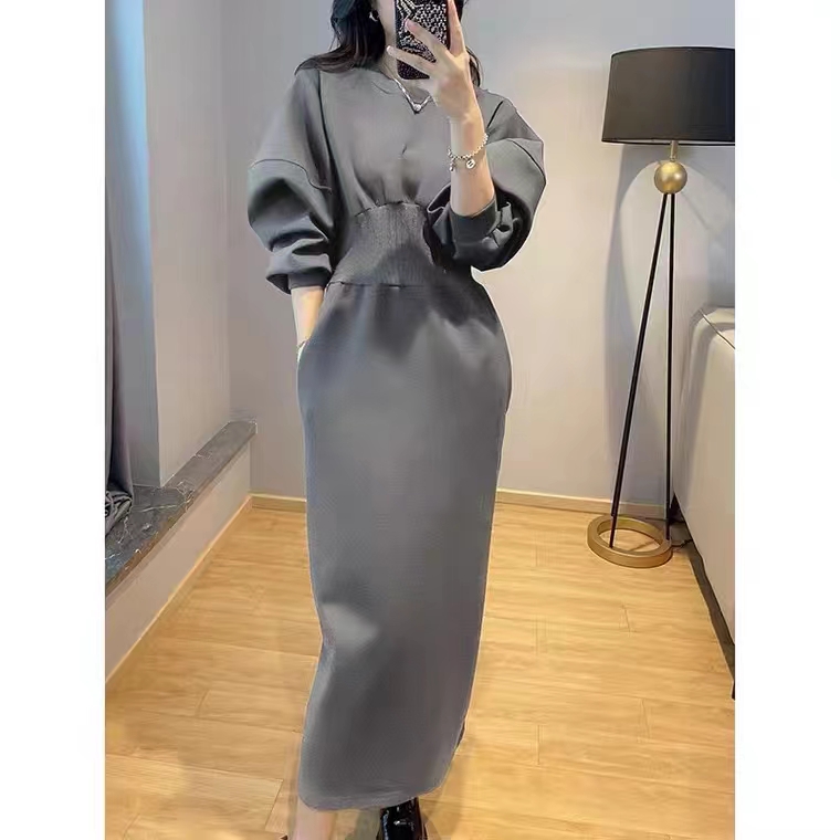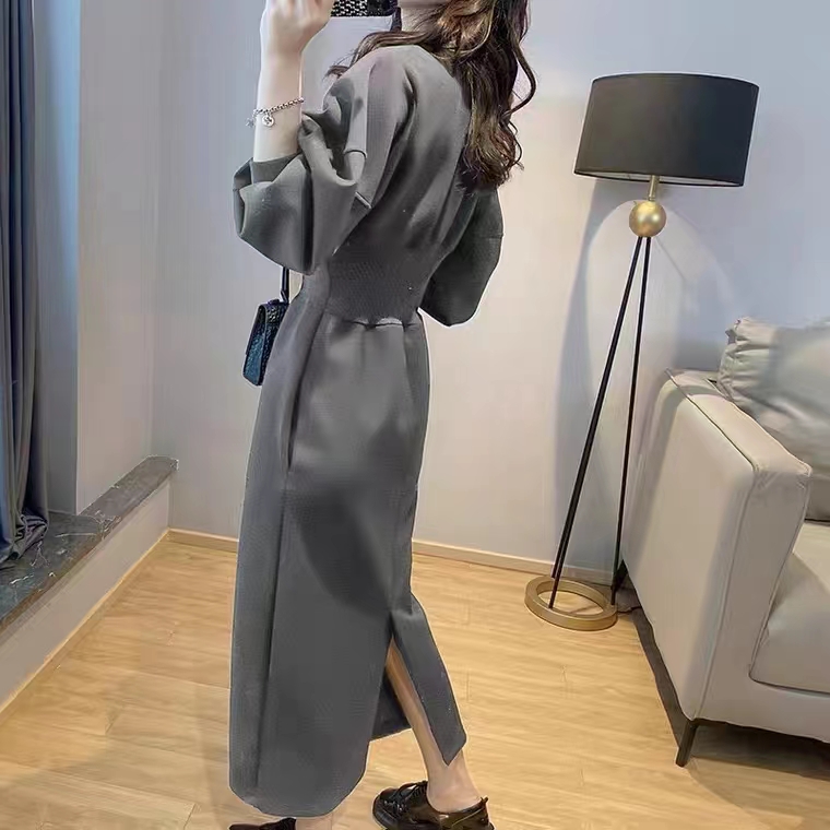トレンドの韓国風デザインが魅力的なシャツタイプのロングワンピース。