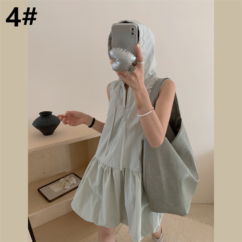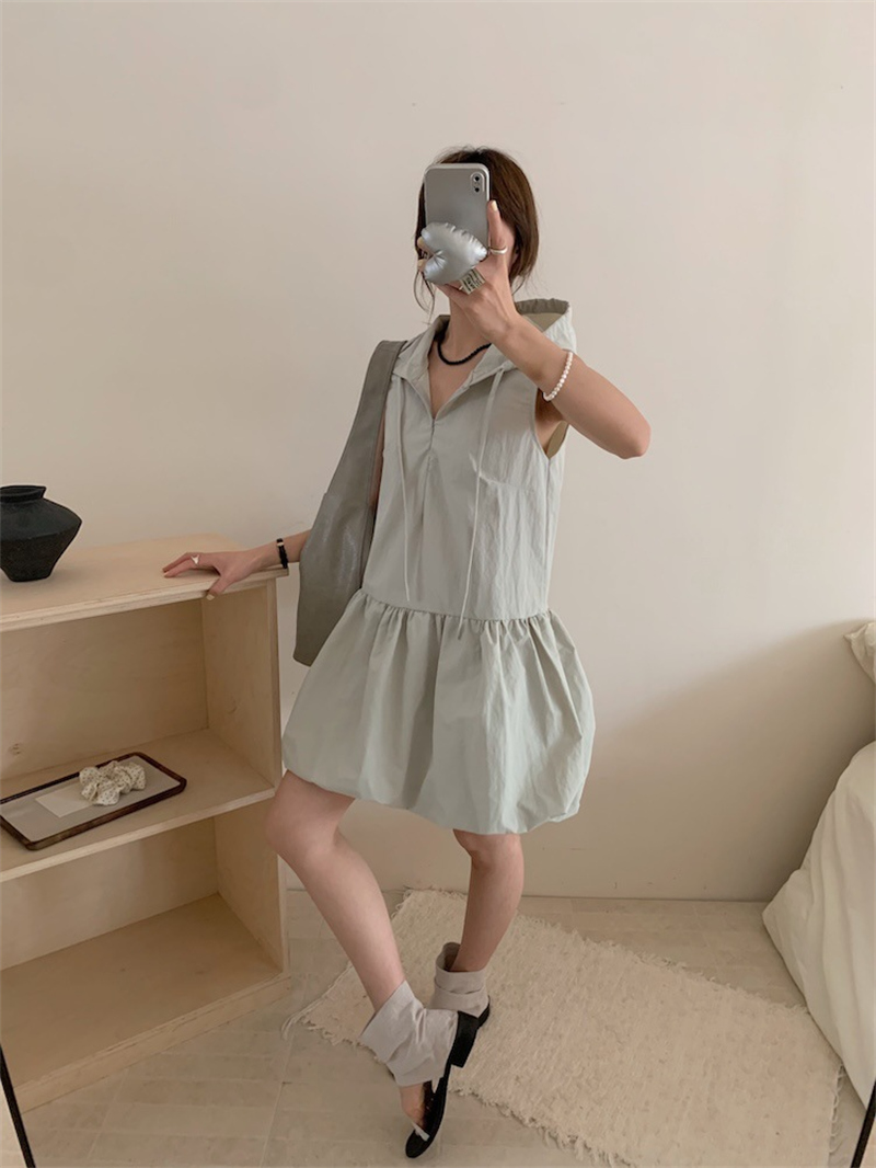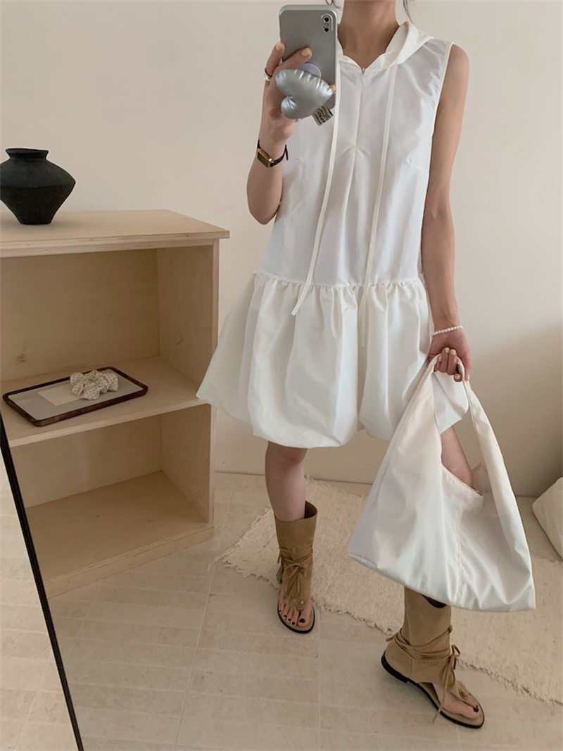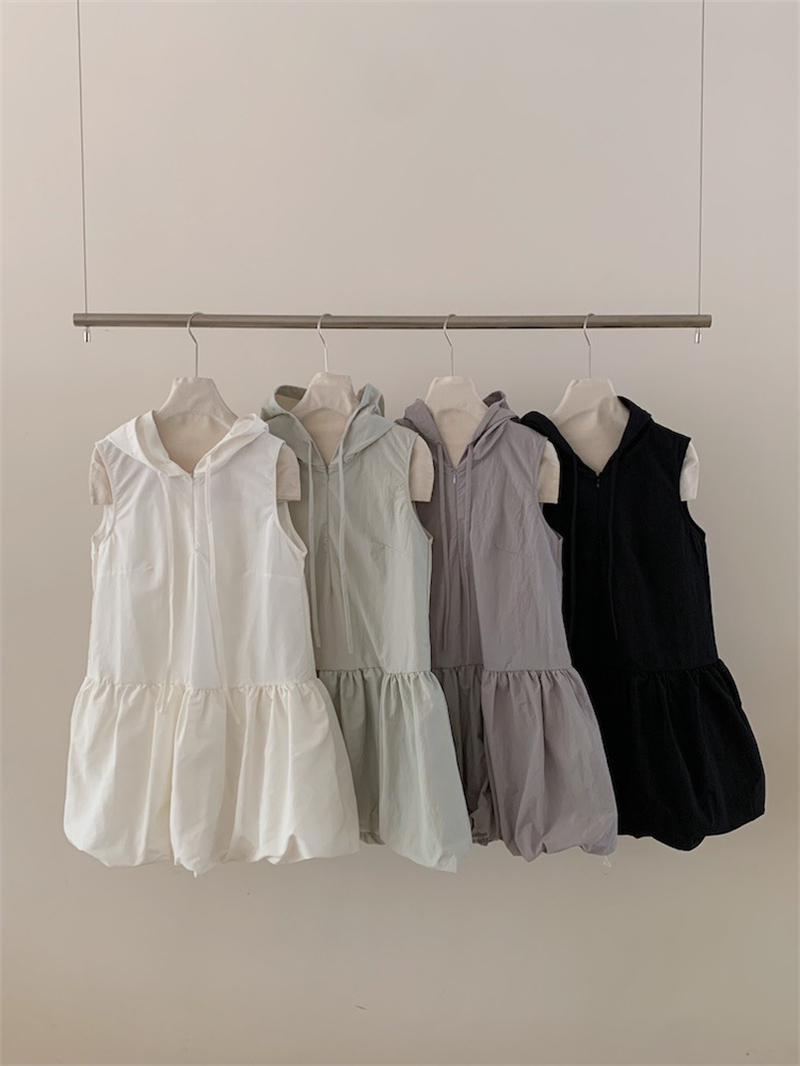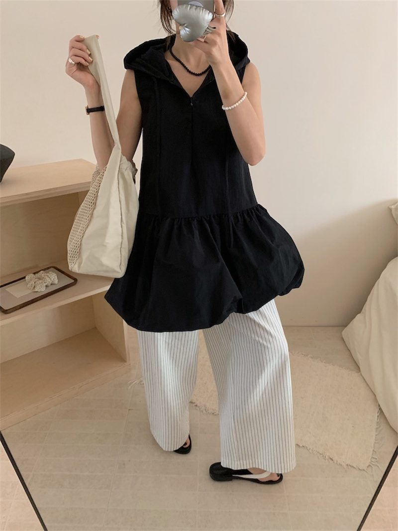 袖がないデザインで涼しげな印象を演出し、リラックス感のある着心地を実現