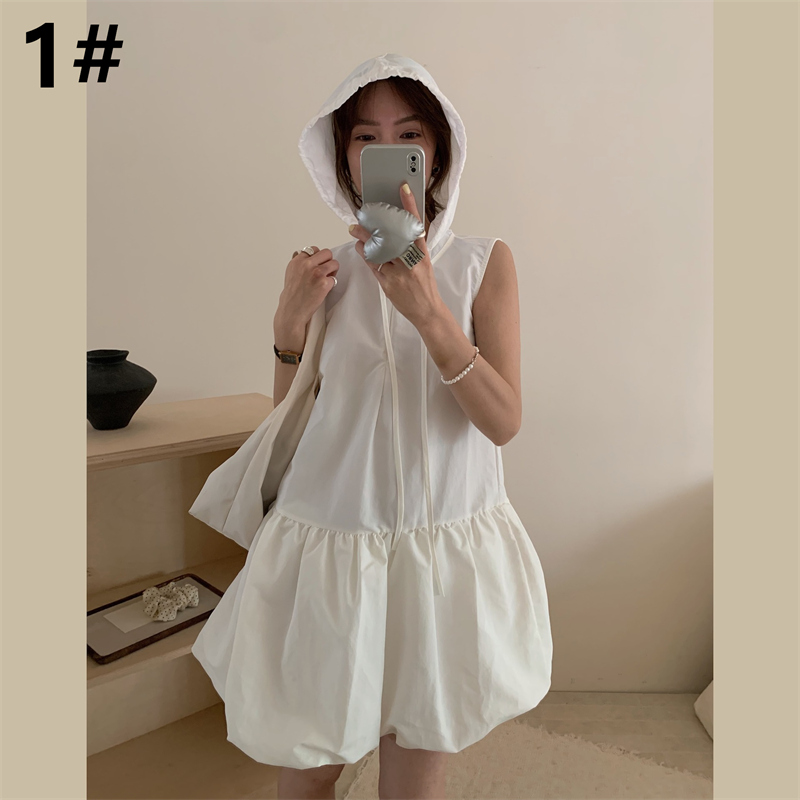 フード付きで体型カバー効果も抜群、ロングワンピースとしても楽しめるデザイン。