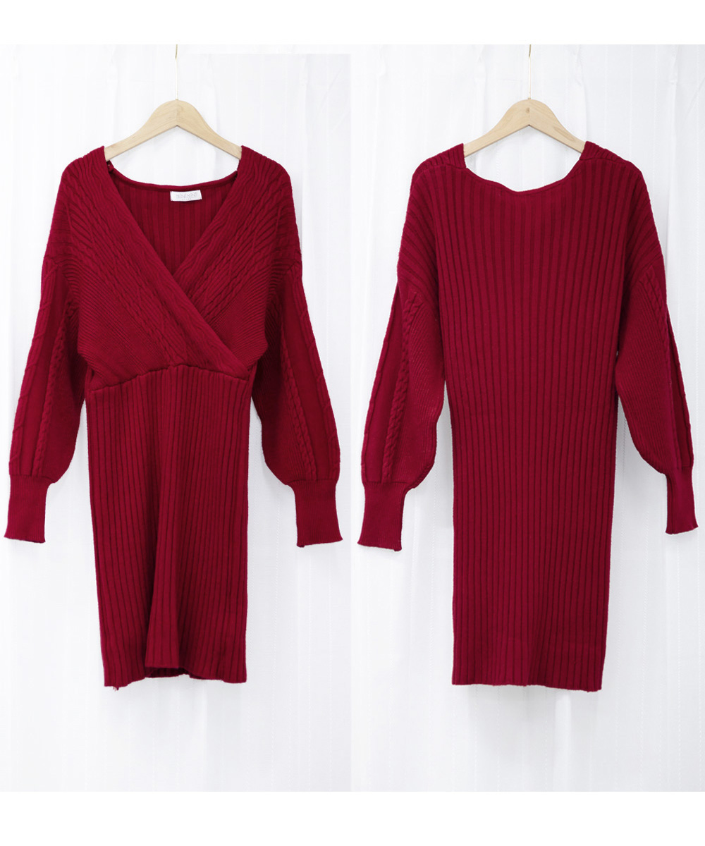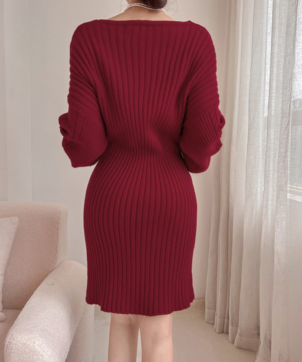 縦のリブ編みスカート部分がすっきりとした印象を与え、一枚でおしゃれが完成する優秀アイテムです。