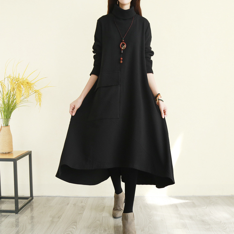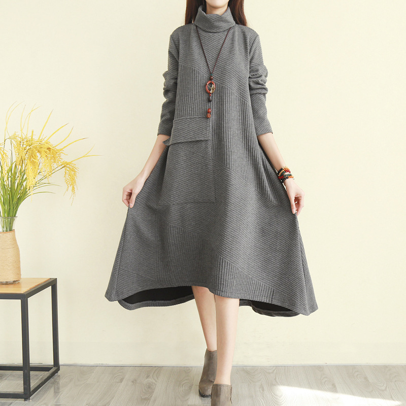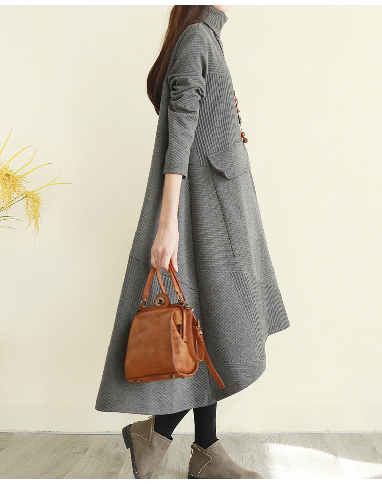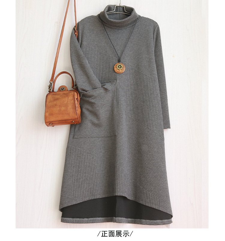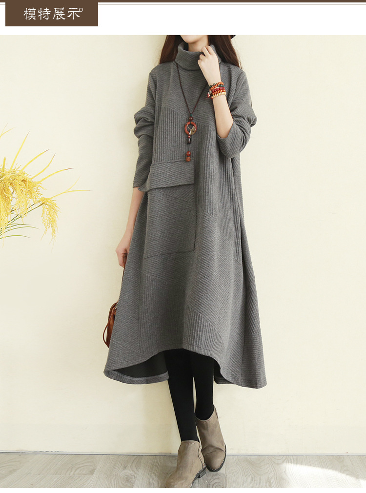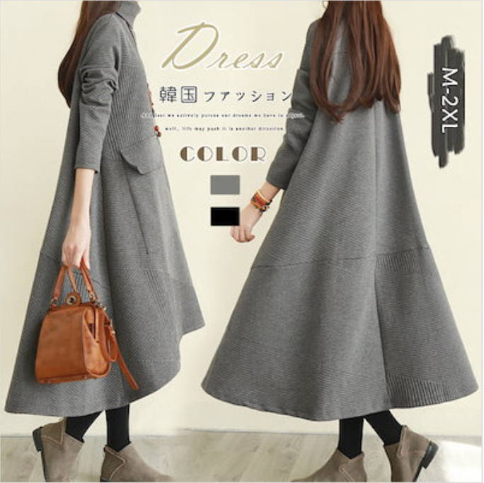 上品なタートルネックデザインのニット素材ロングワンピースです。 ゆったりとしたシルエットで体型カバー効果も抜群。 厚手の生地で秋冬にぴったり、重ね着にも最適なアイテムです。 カジュアルからきれいめまで幅広いスタイリングが楽しめます。