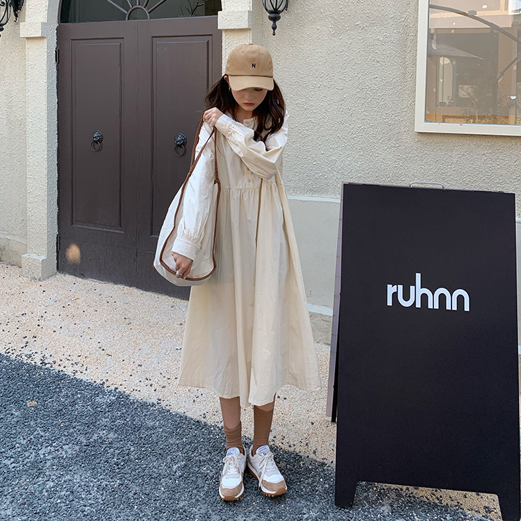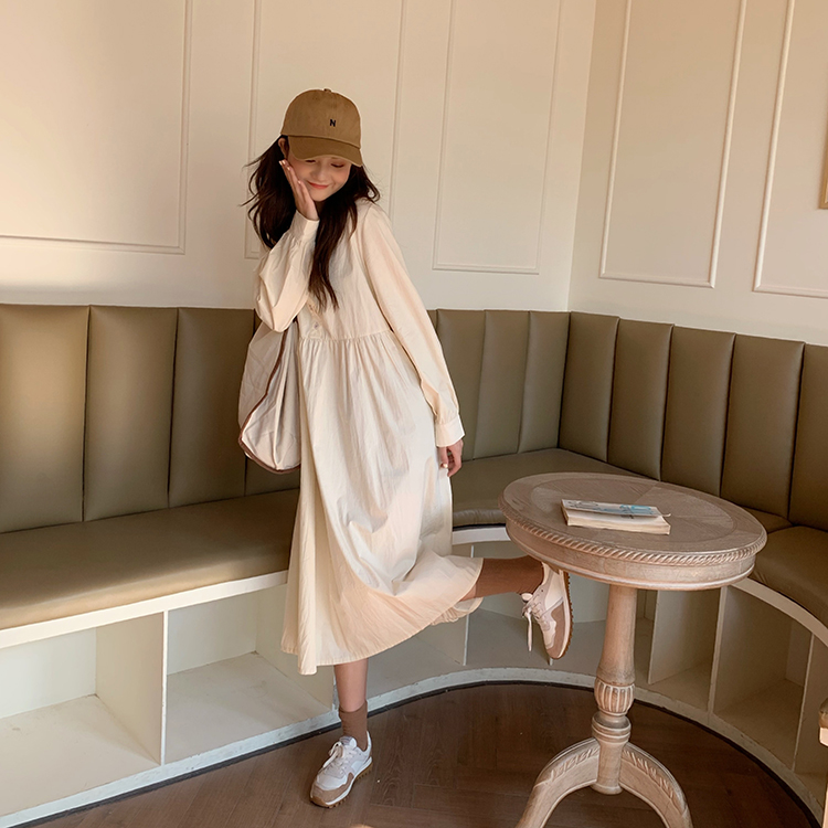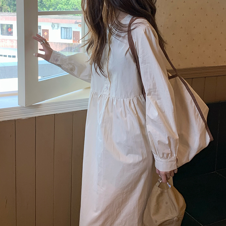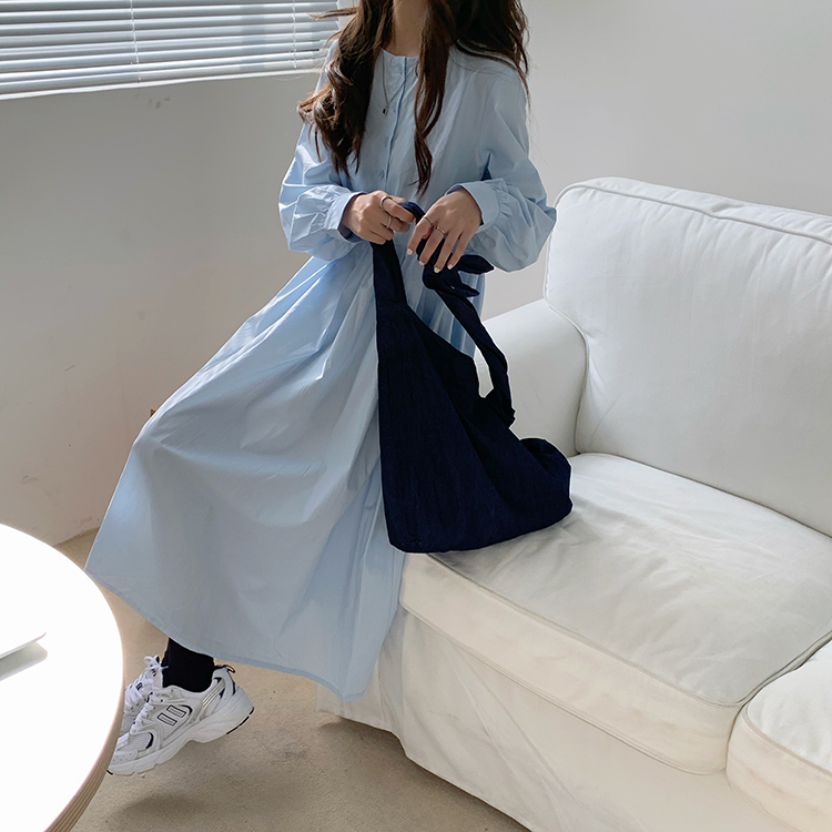 優しい水色が魅力的なシャツタイプのロングワンピースです。