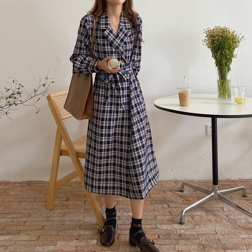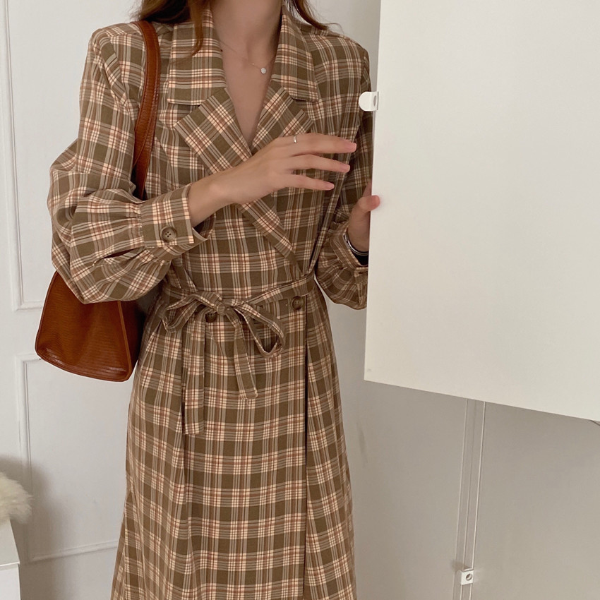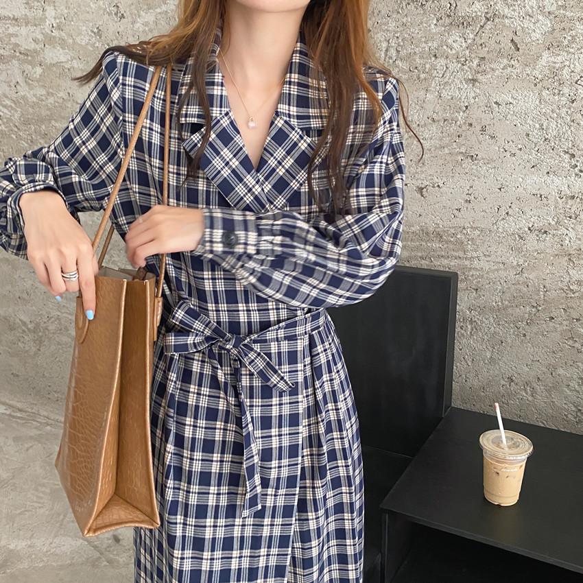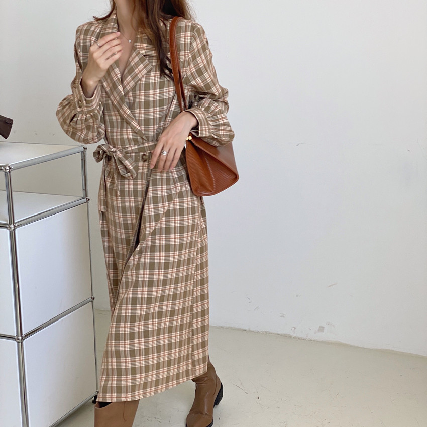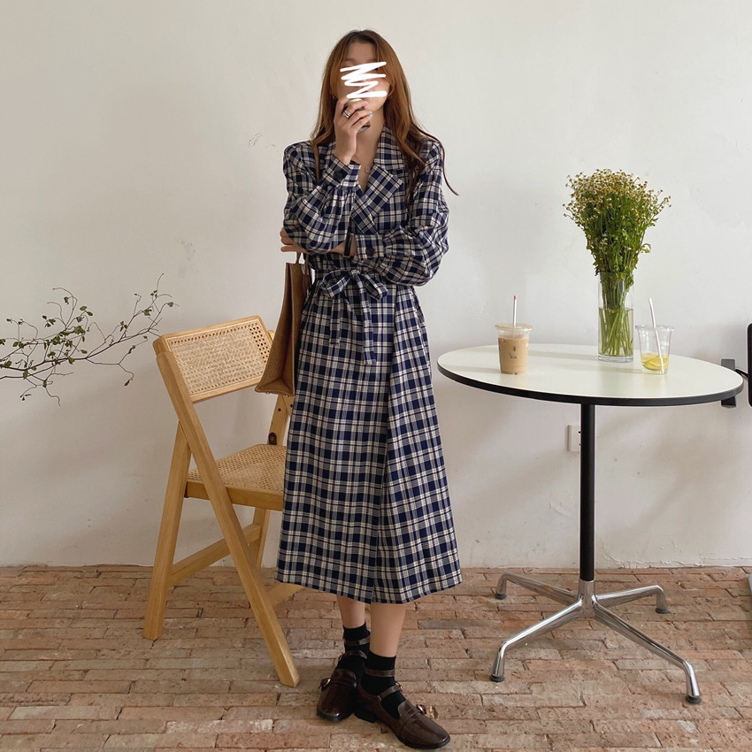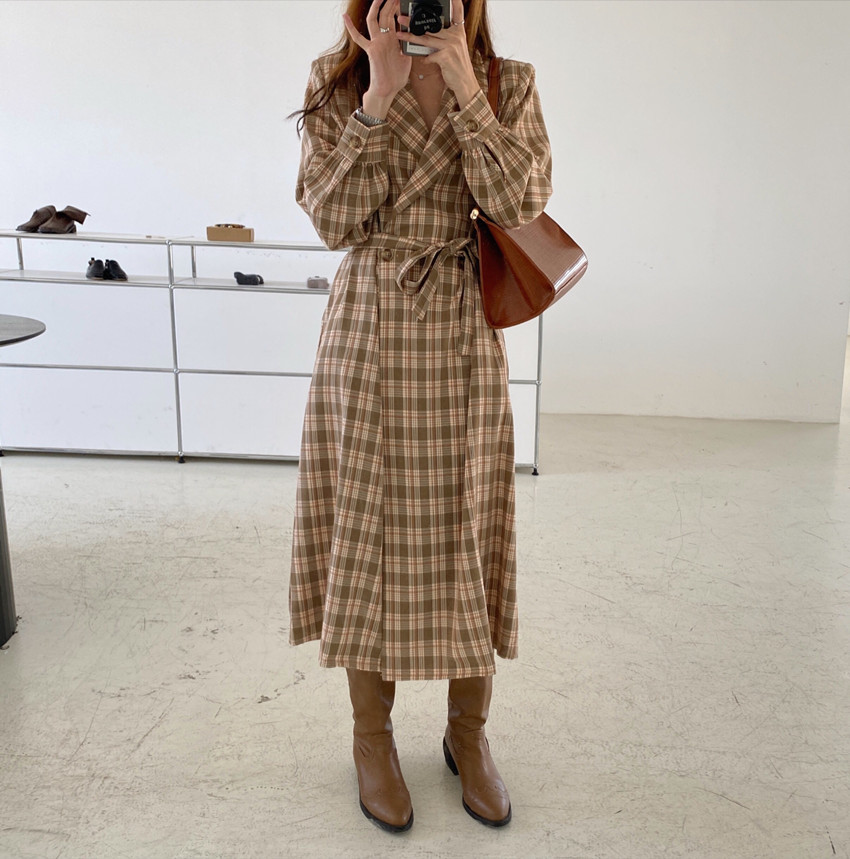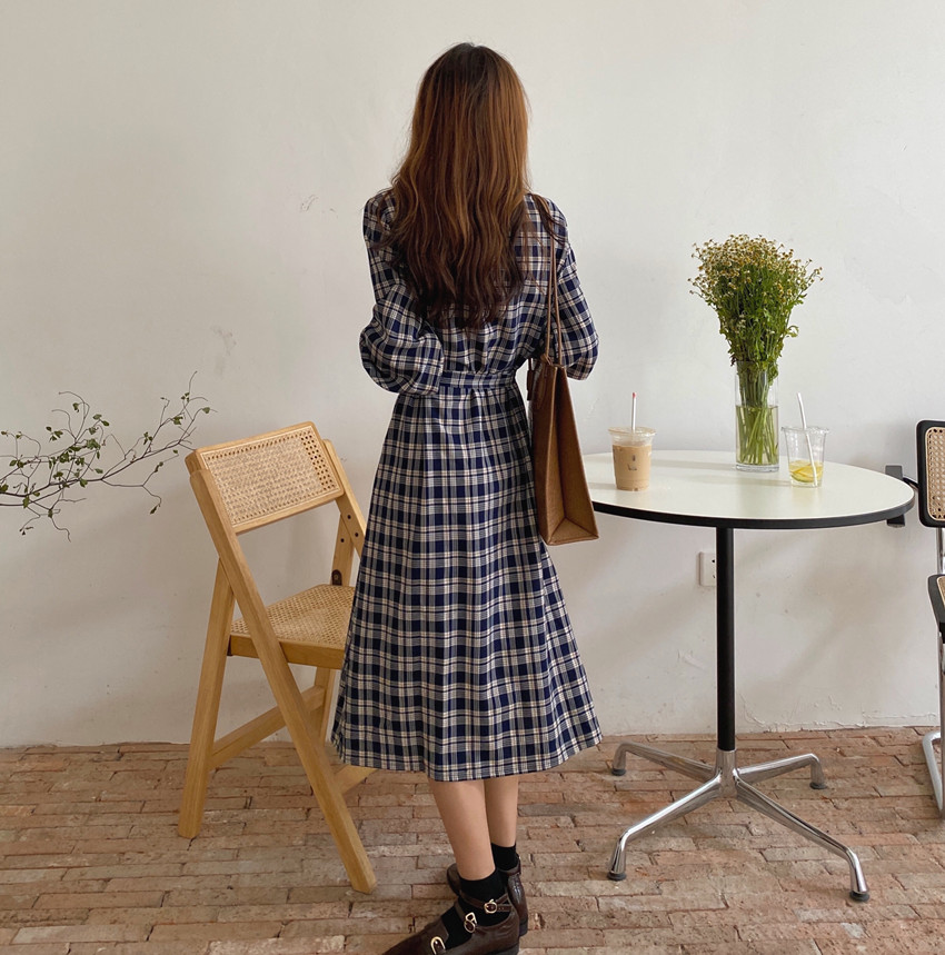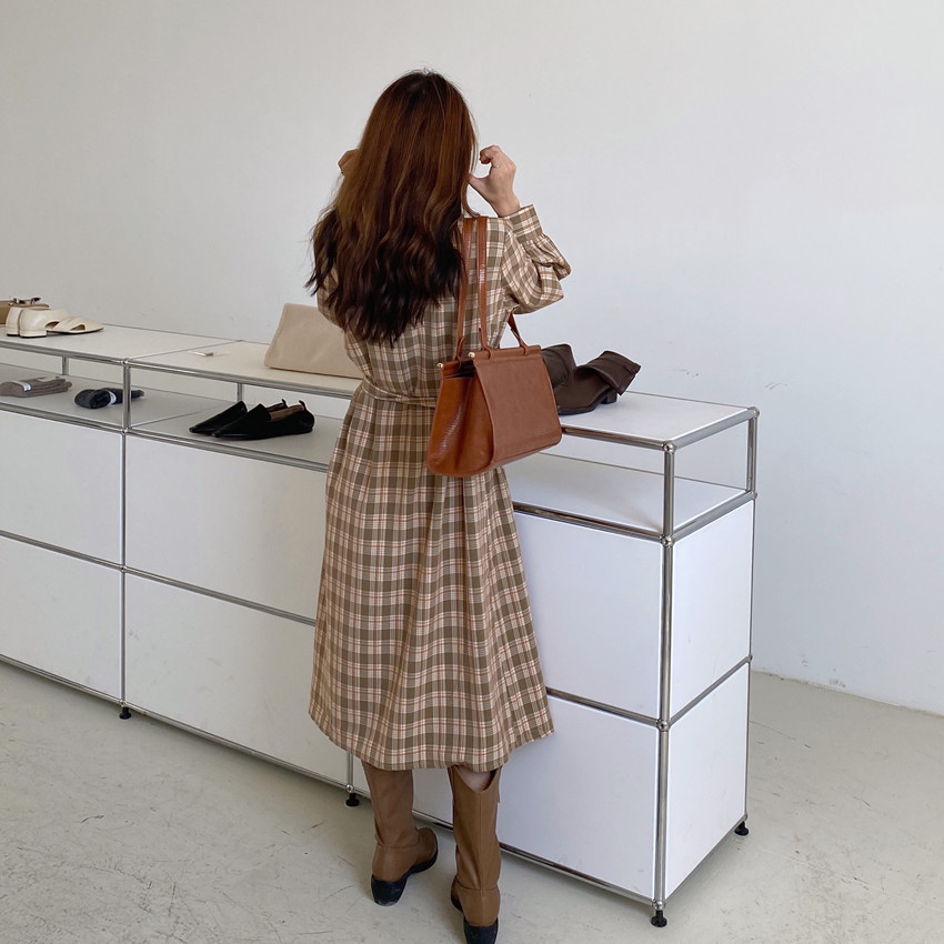 上品なチェック柄が魅力的なシャツワンピースです。