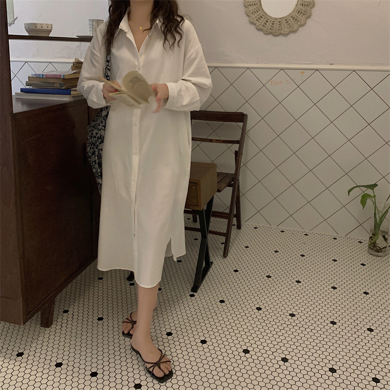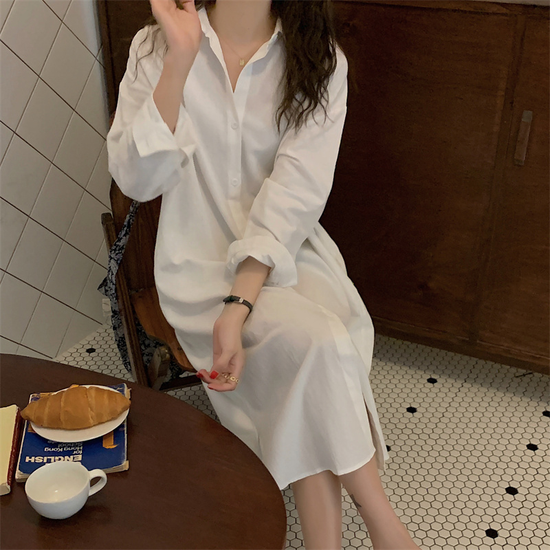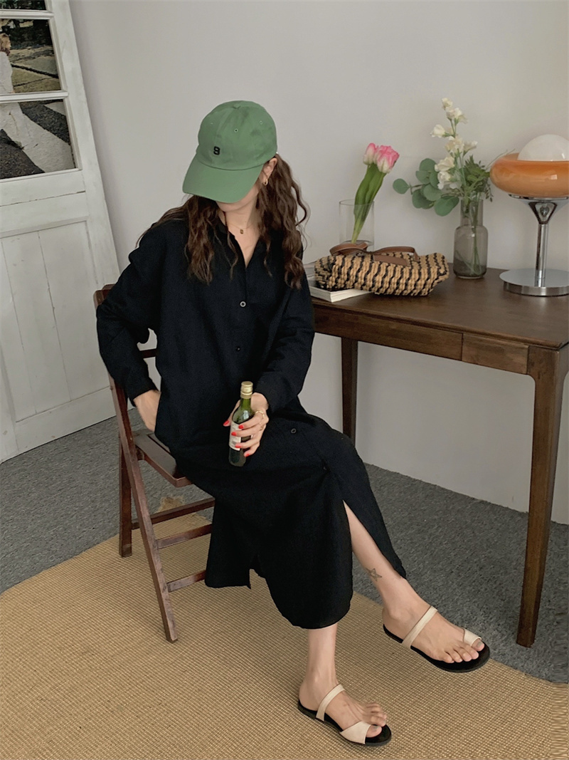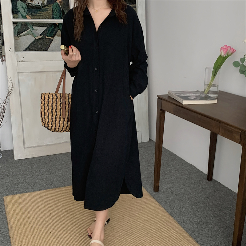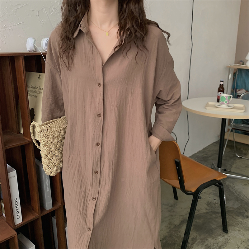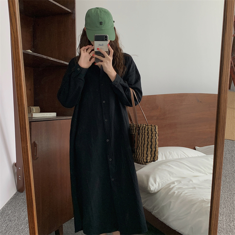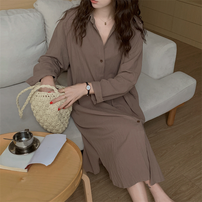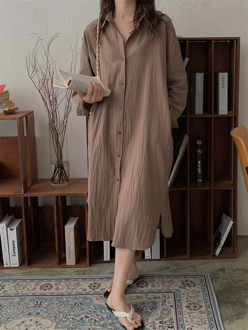 上品で快適な着心地が魅力のシャツタイプのロングワンピースです。