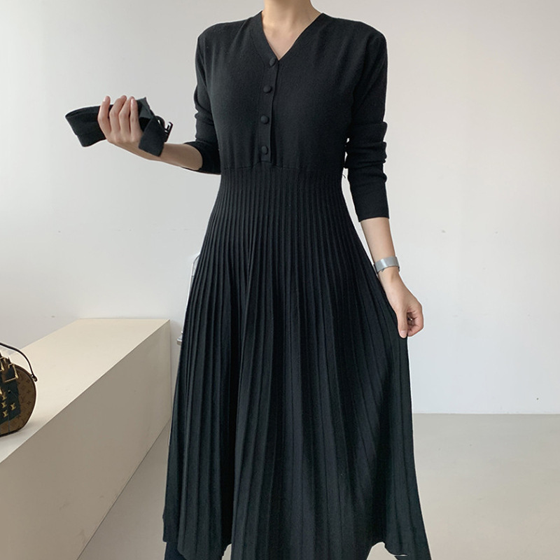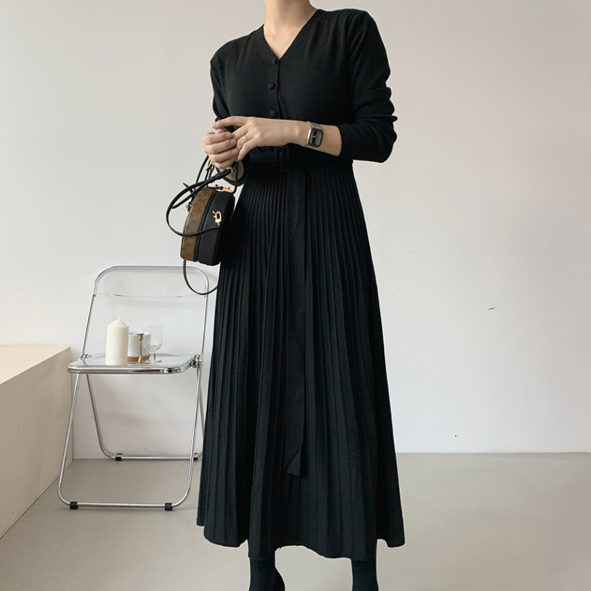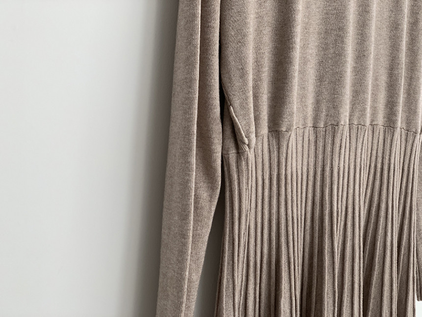 洗練されたデザインが魅力的なニットロングワンピースです。