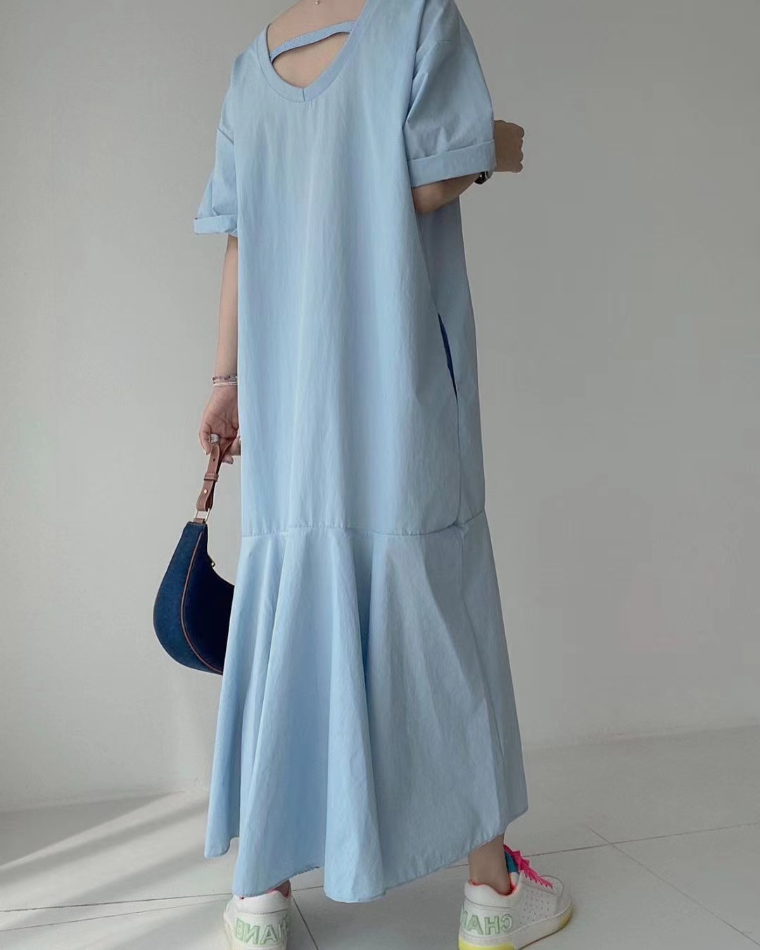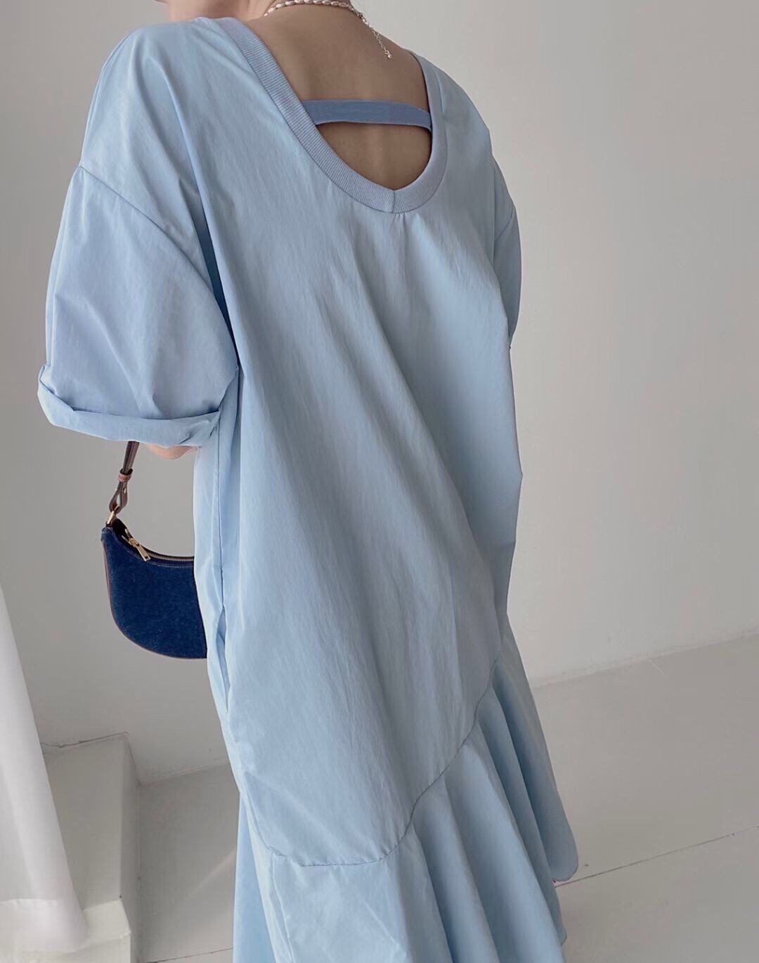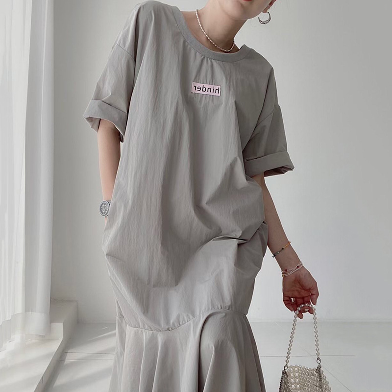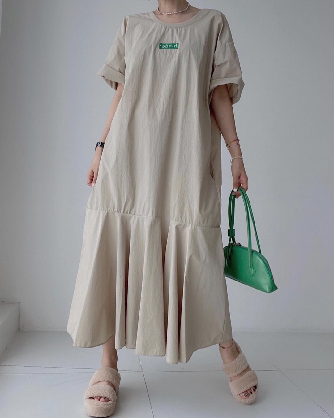 ゆったりとした半袖スウェット素材のロングワンピースです。