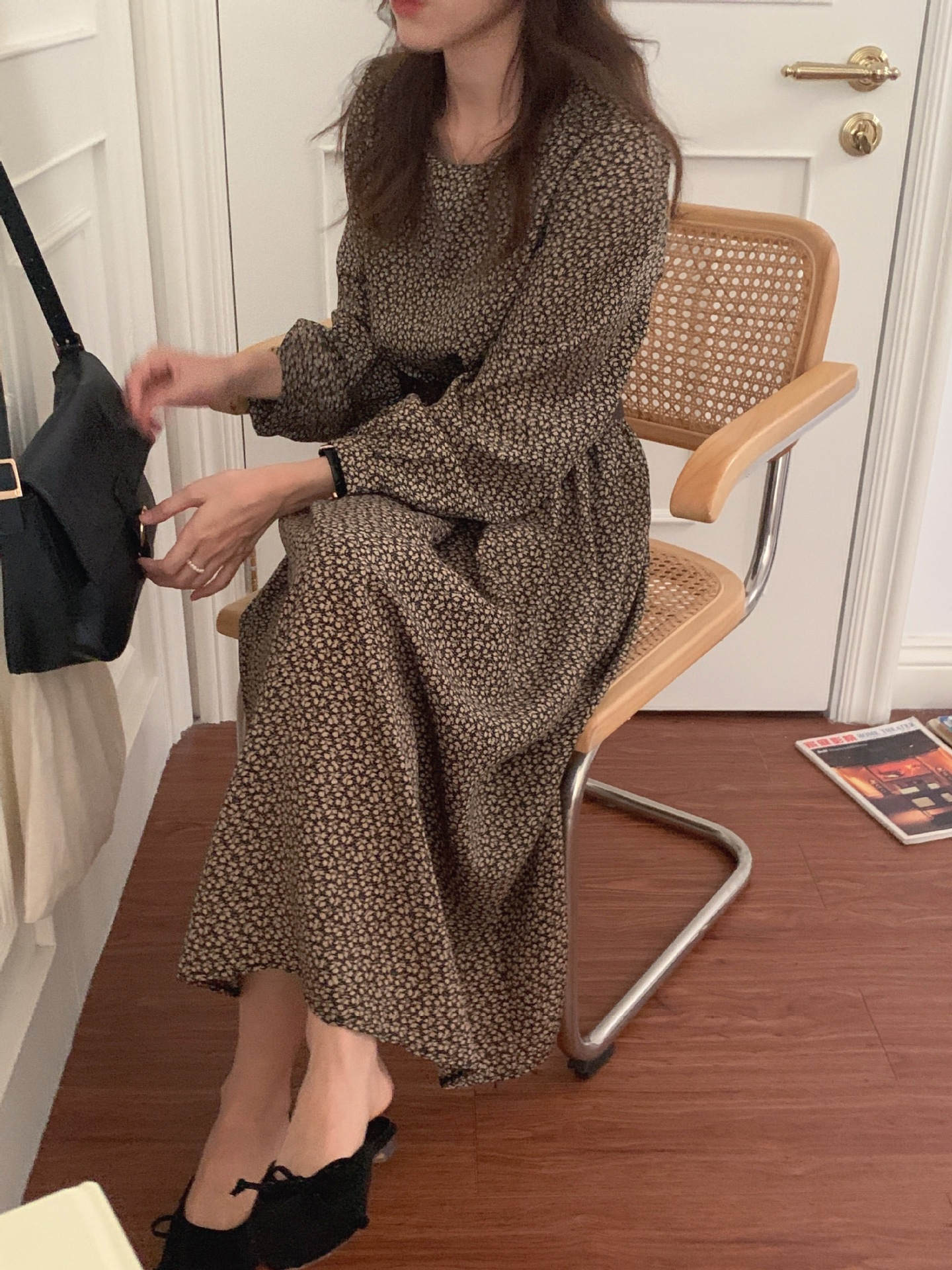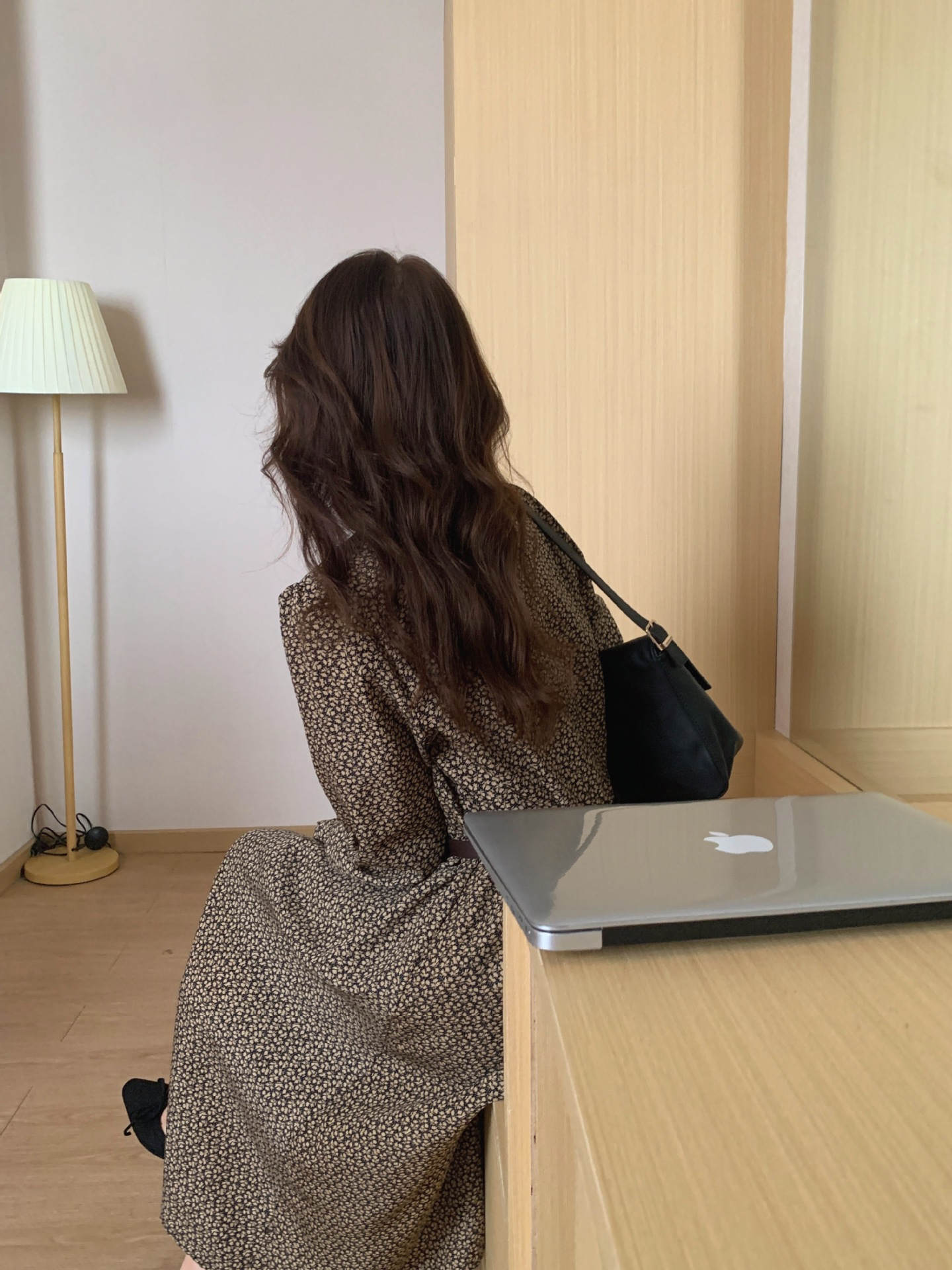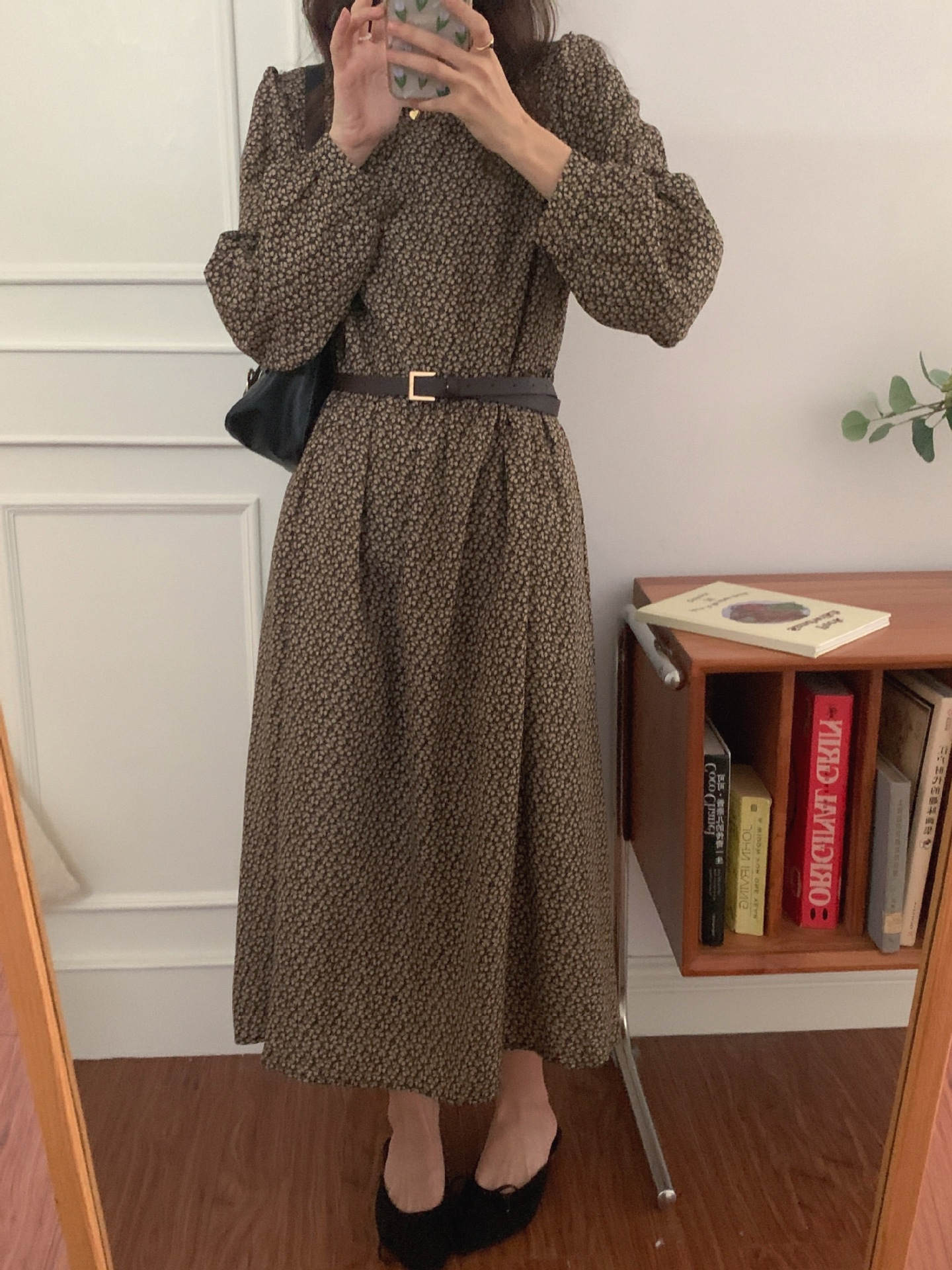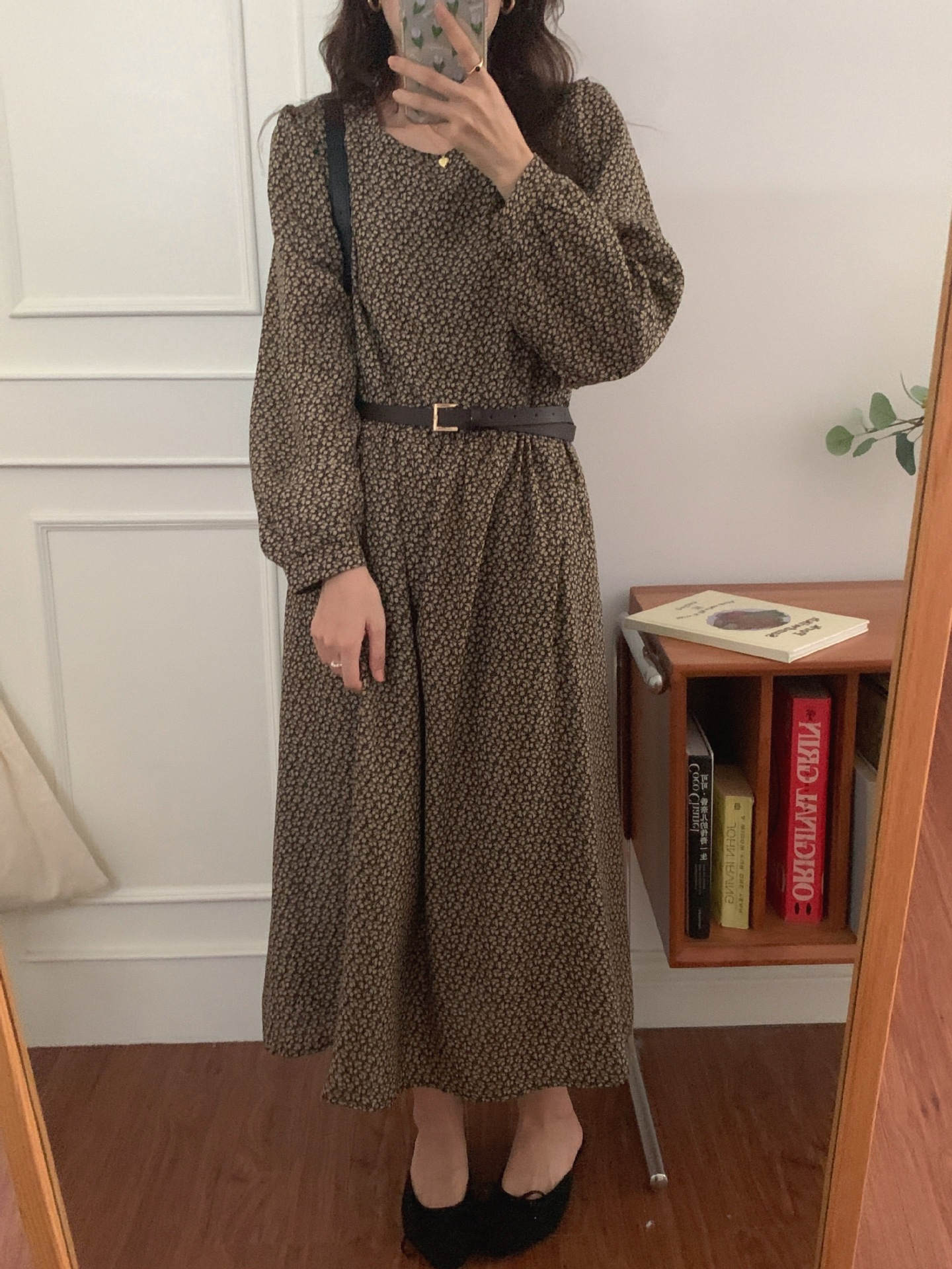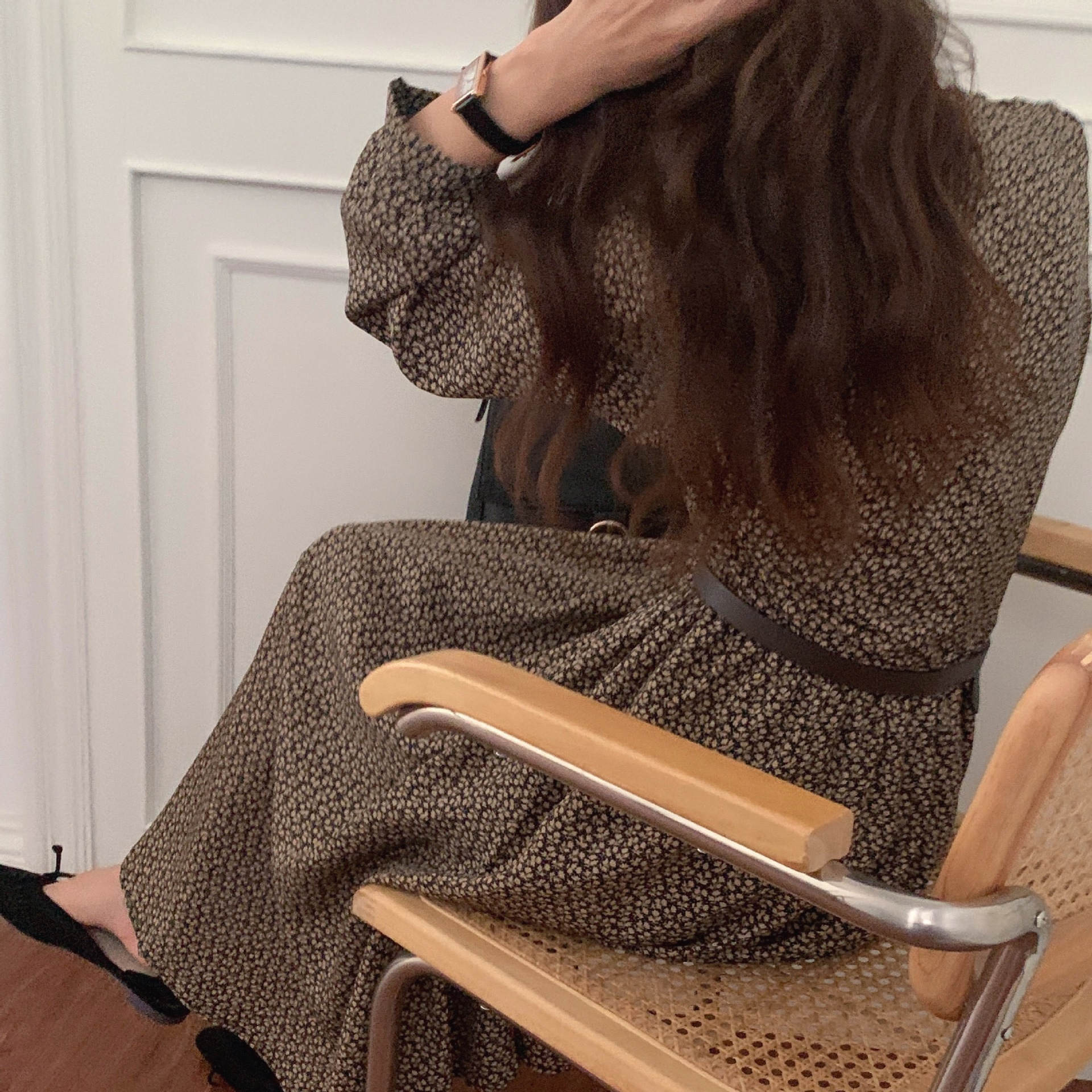 上品な小花柄が印象的なシャツタイプのロングワンピース。