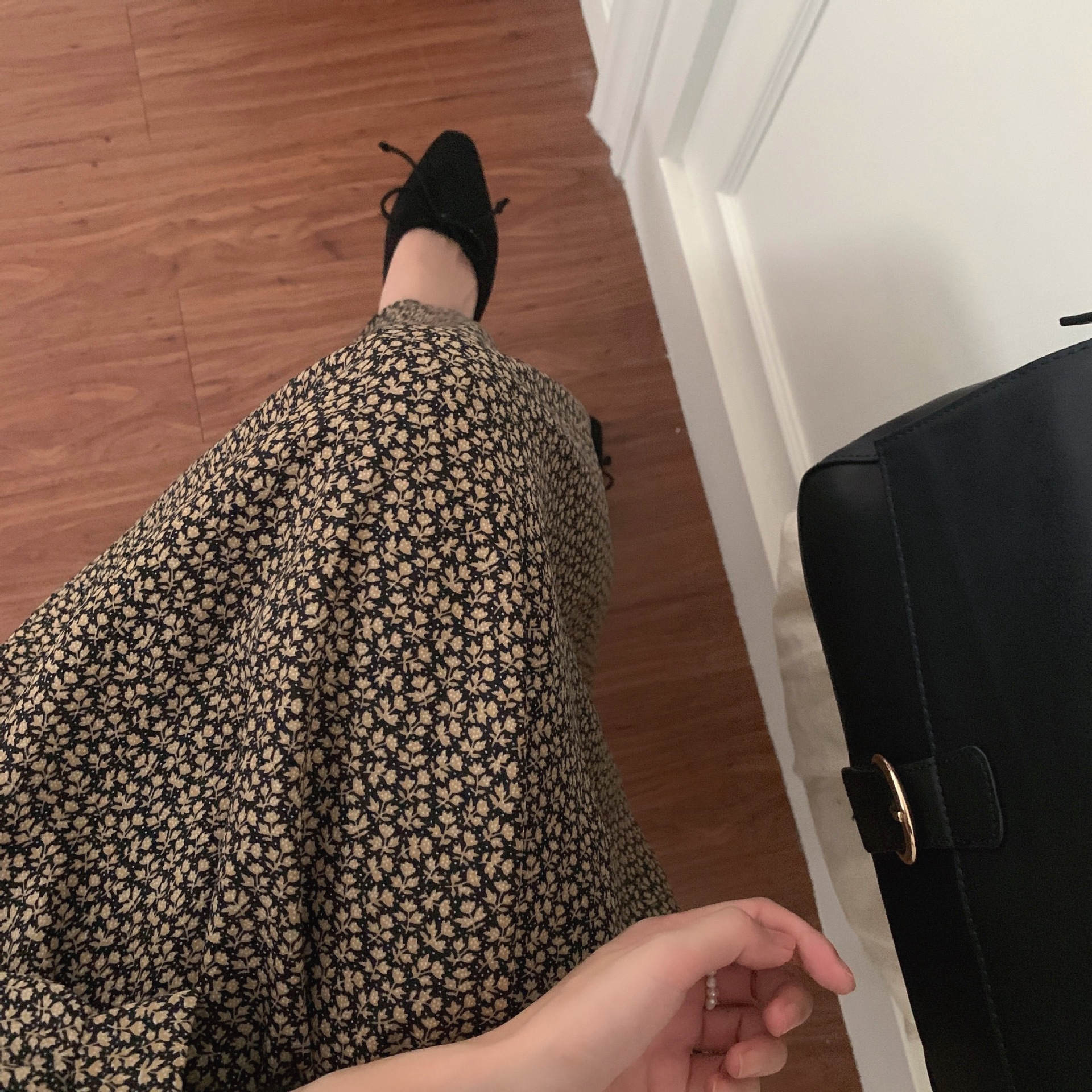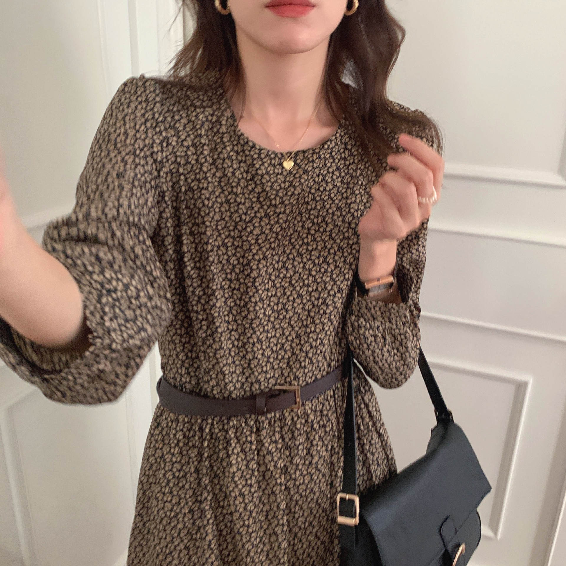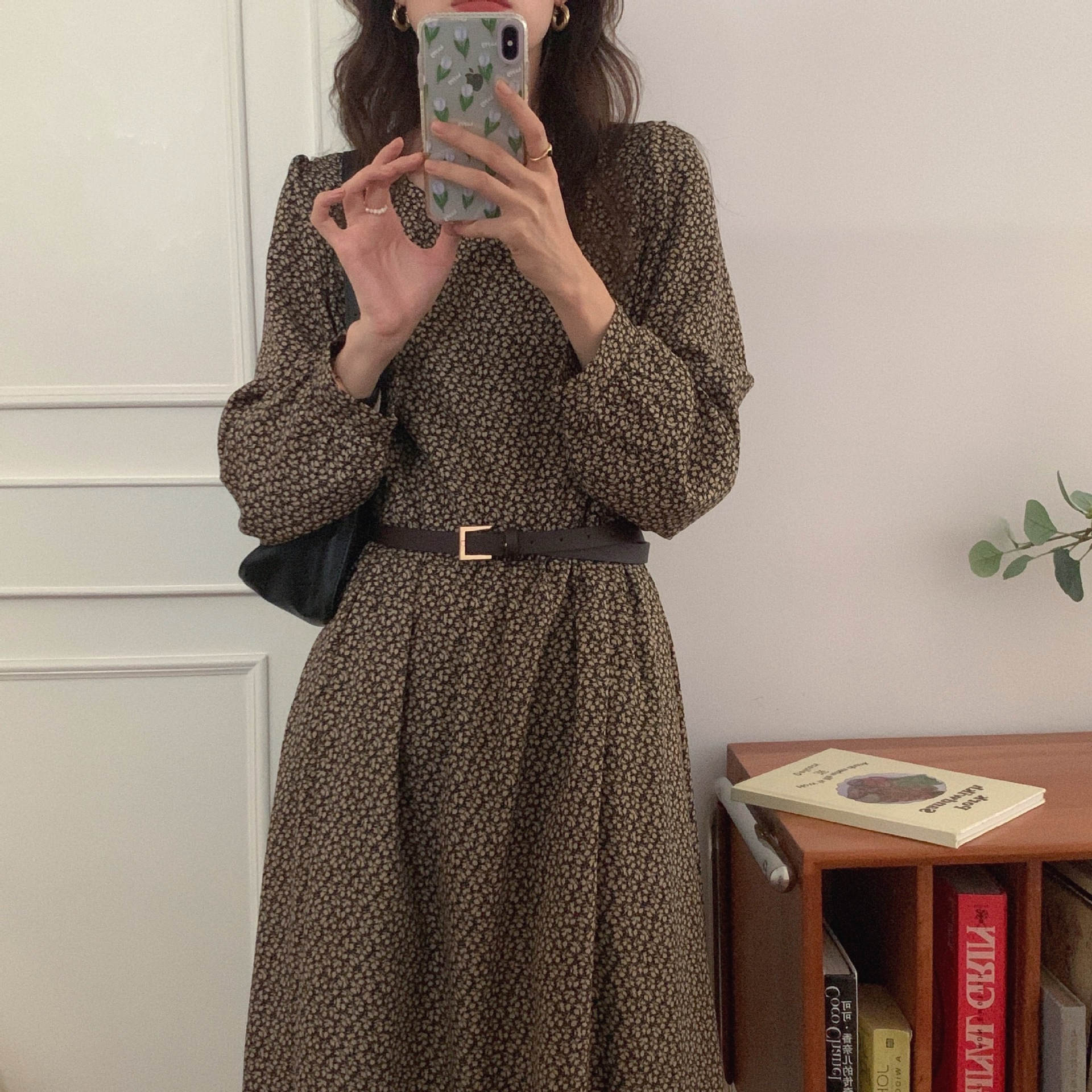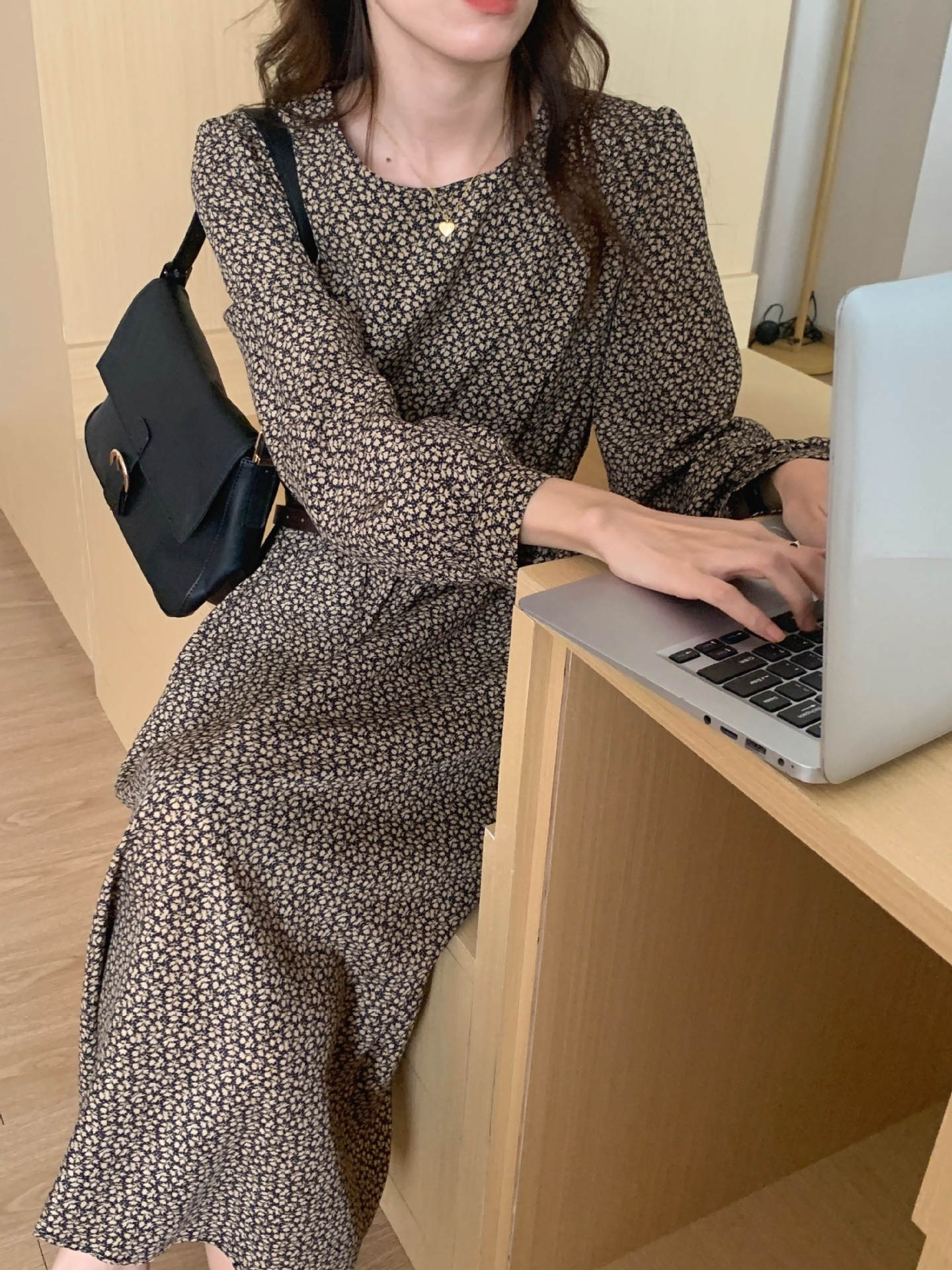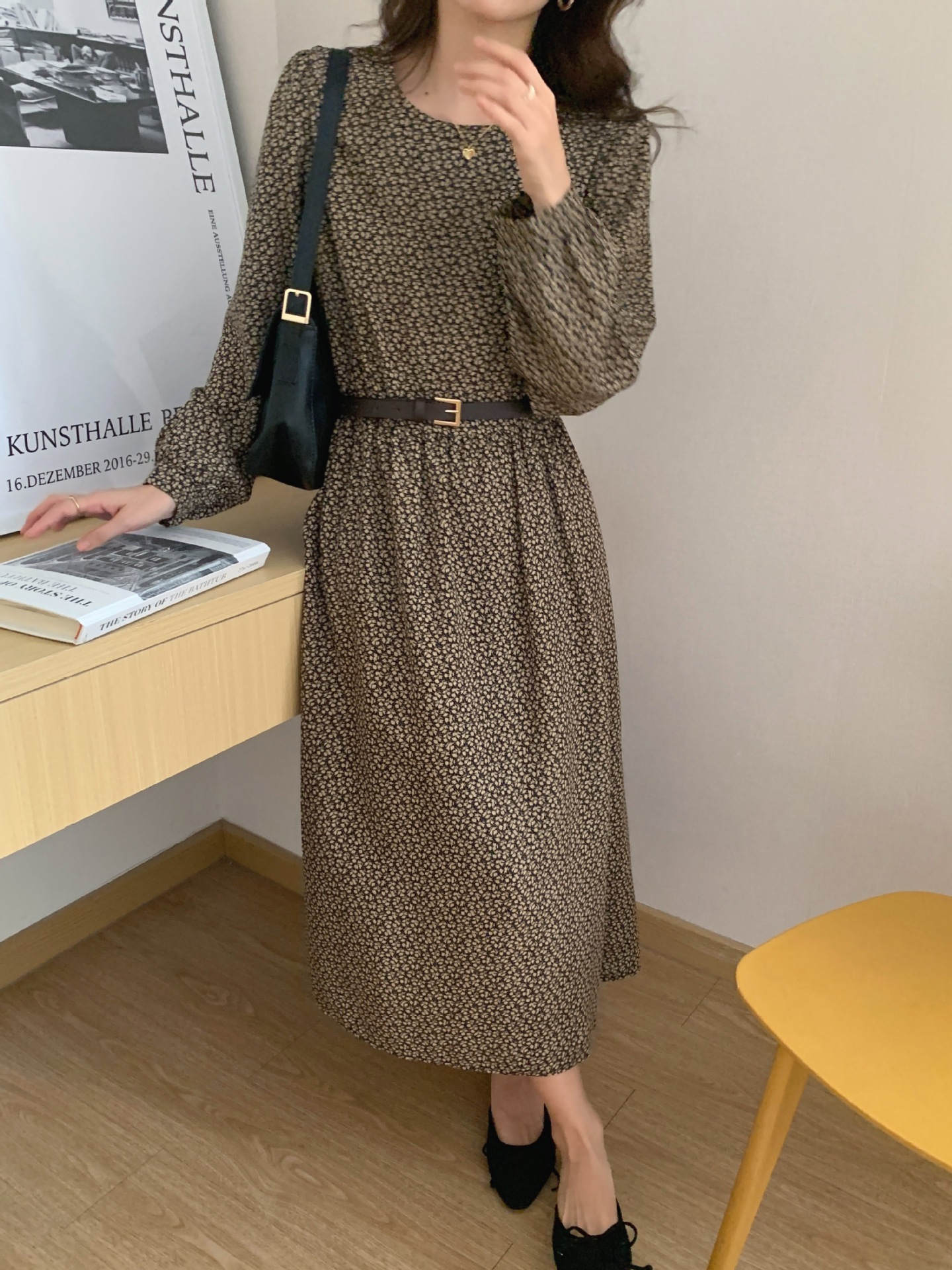 上品な小花柄が印象的なシャツタイプのロングワンピース。