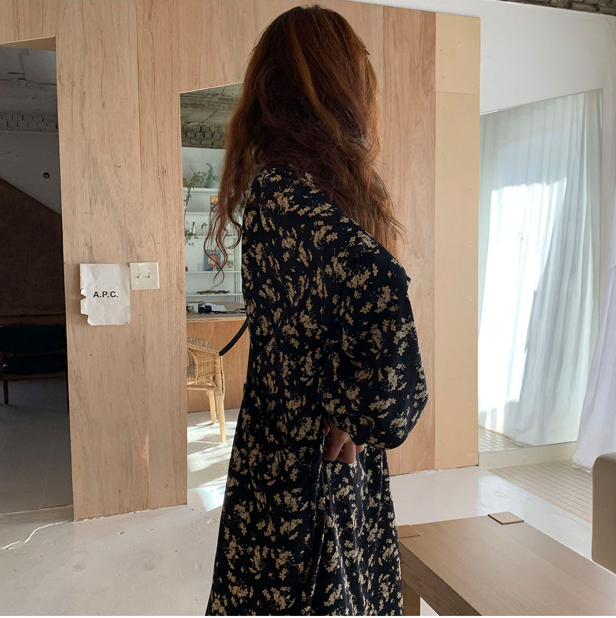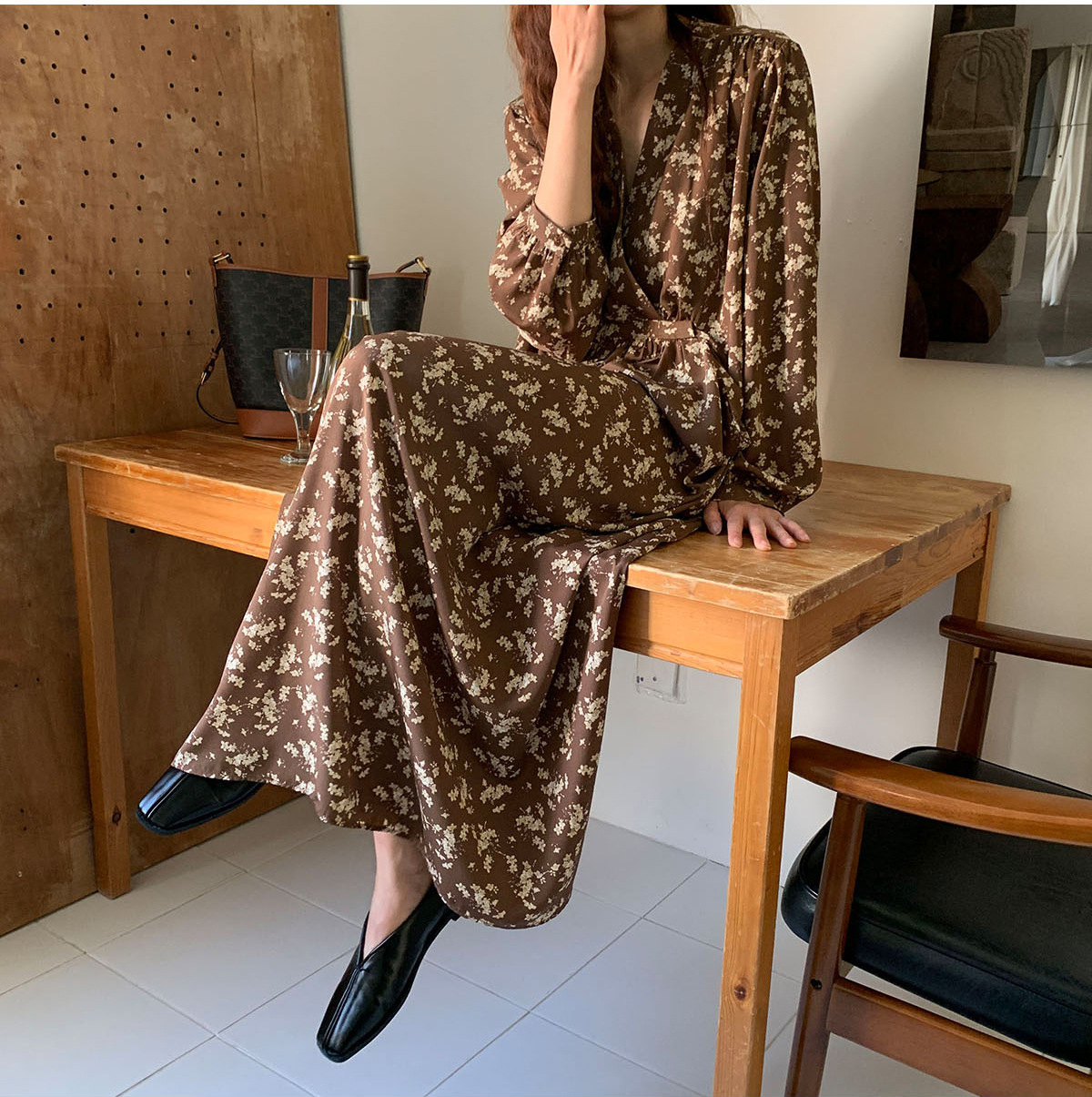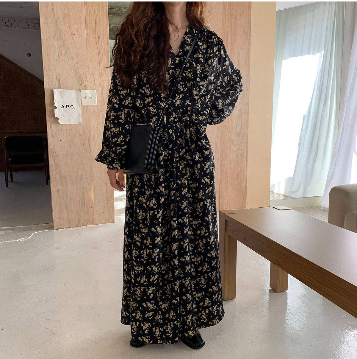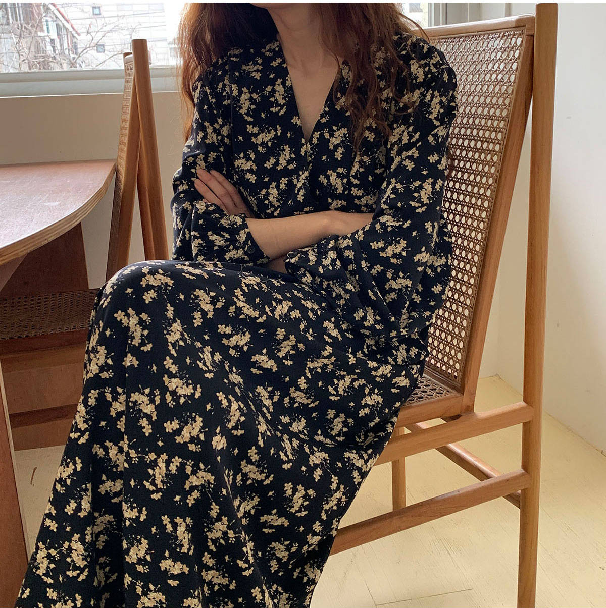 深いブイネックラインとゆったりとしたシルエットで、