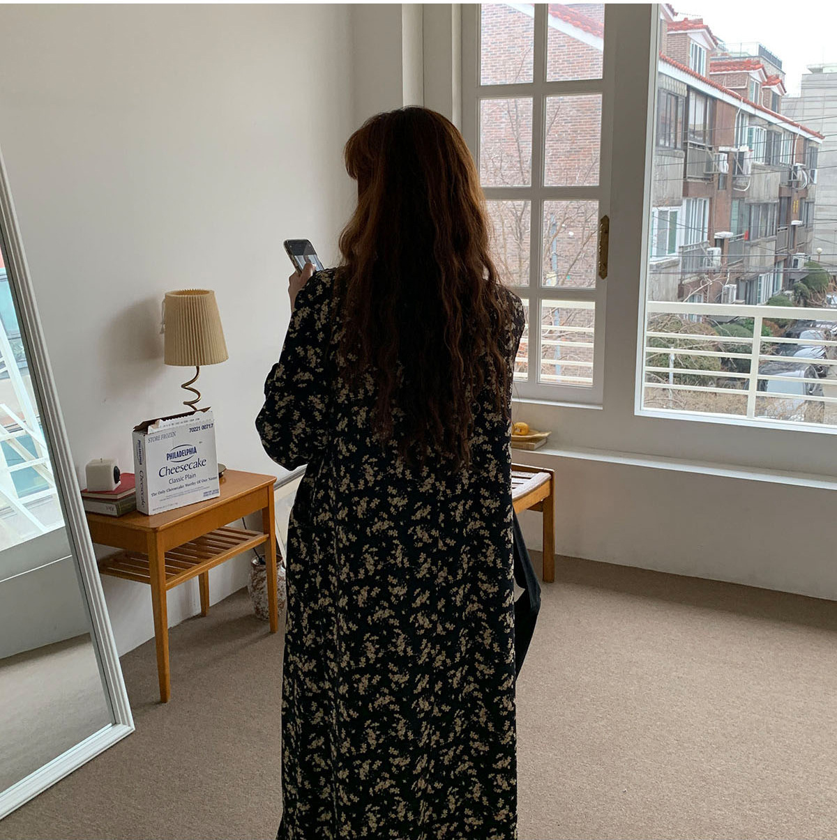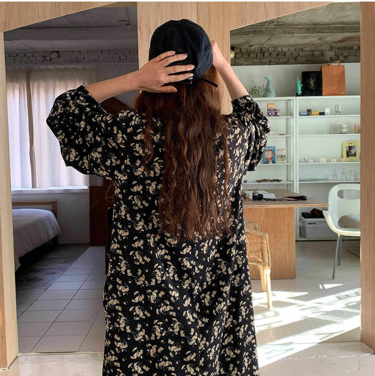 優雅な小花柄が魅力的な長袖シャツワンピースです。