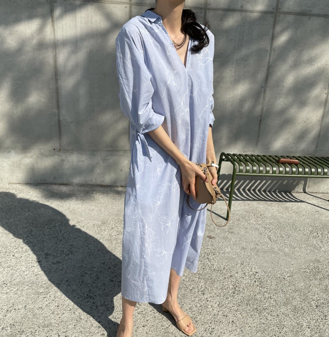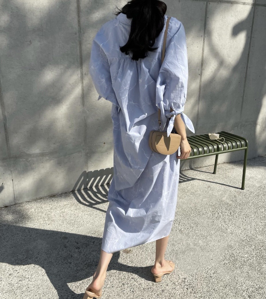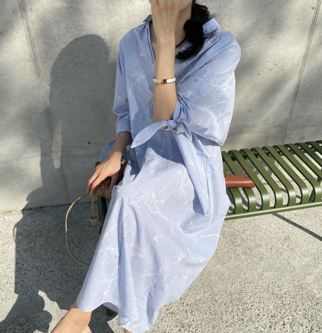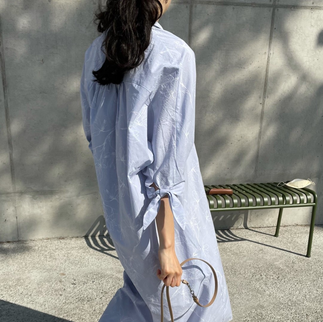 フリーサイズで快適に着用できる綿素材を使用したシャツワンピース。