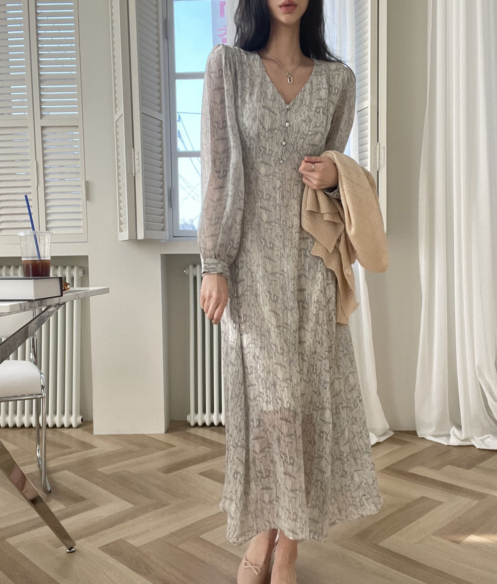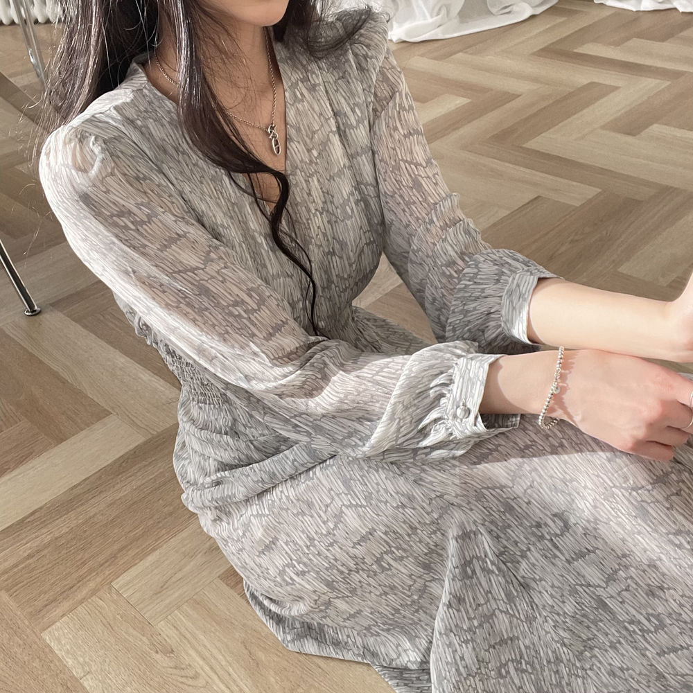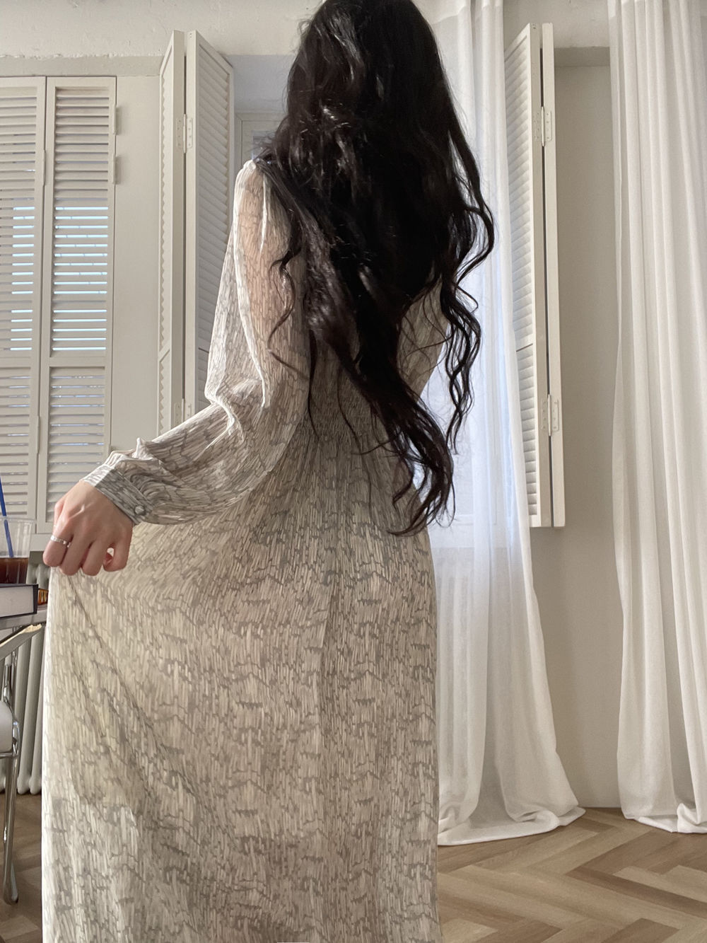 優雅な杢調生地を使用したシャツタイプのロングワンピース。