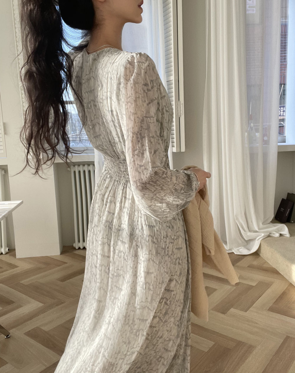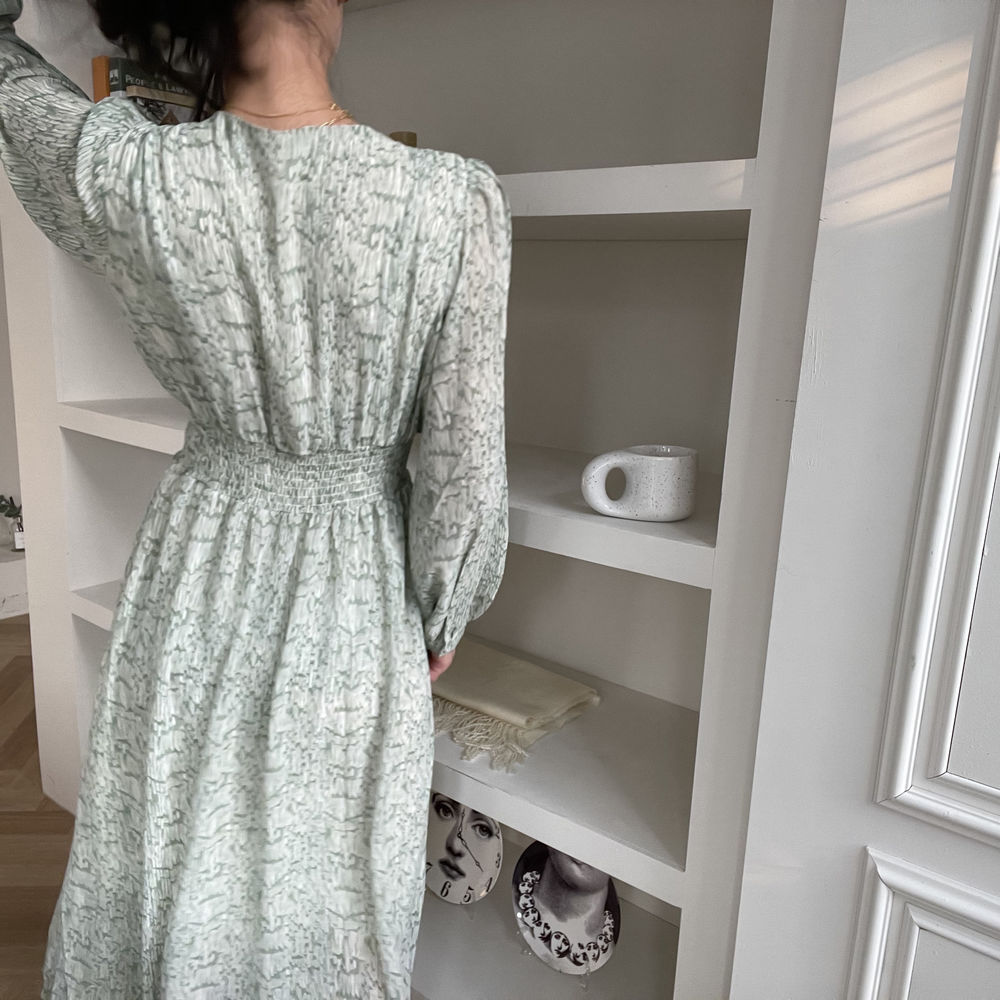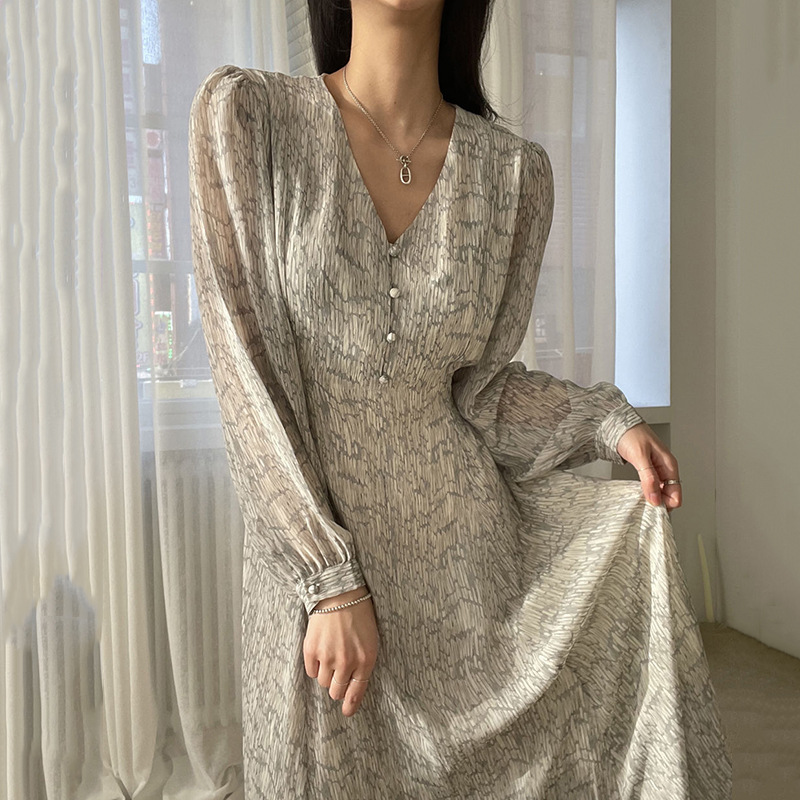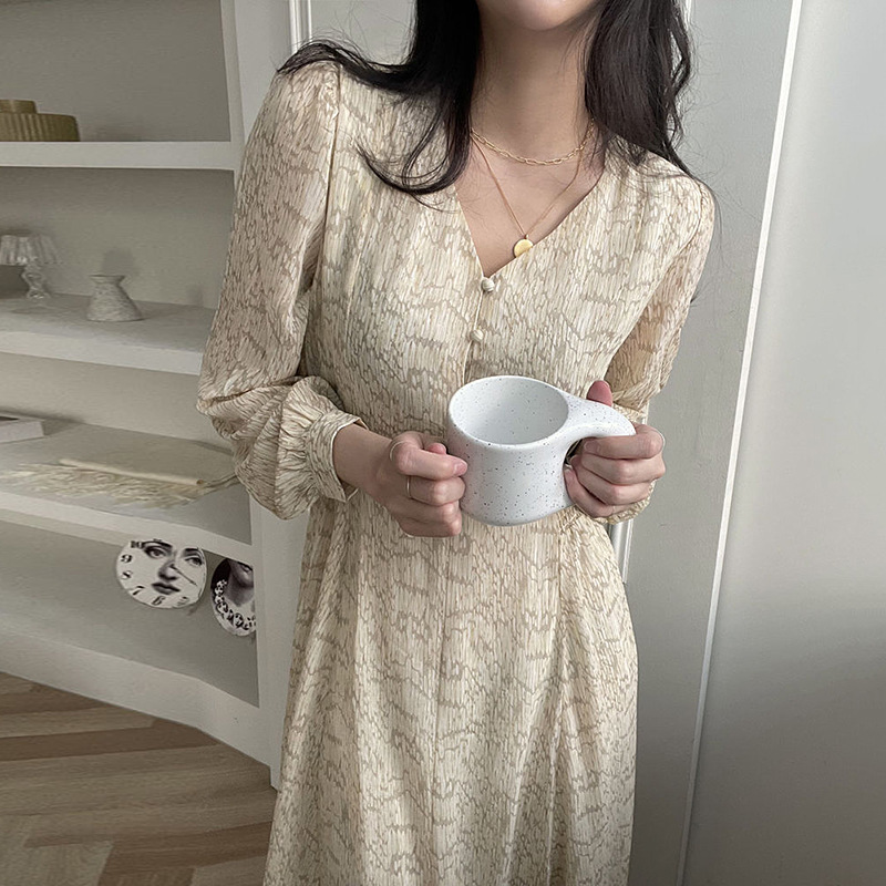 優雅な杢調生地を使用したシャツタイプのロングワンピース。
