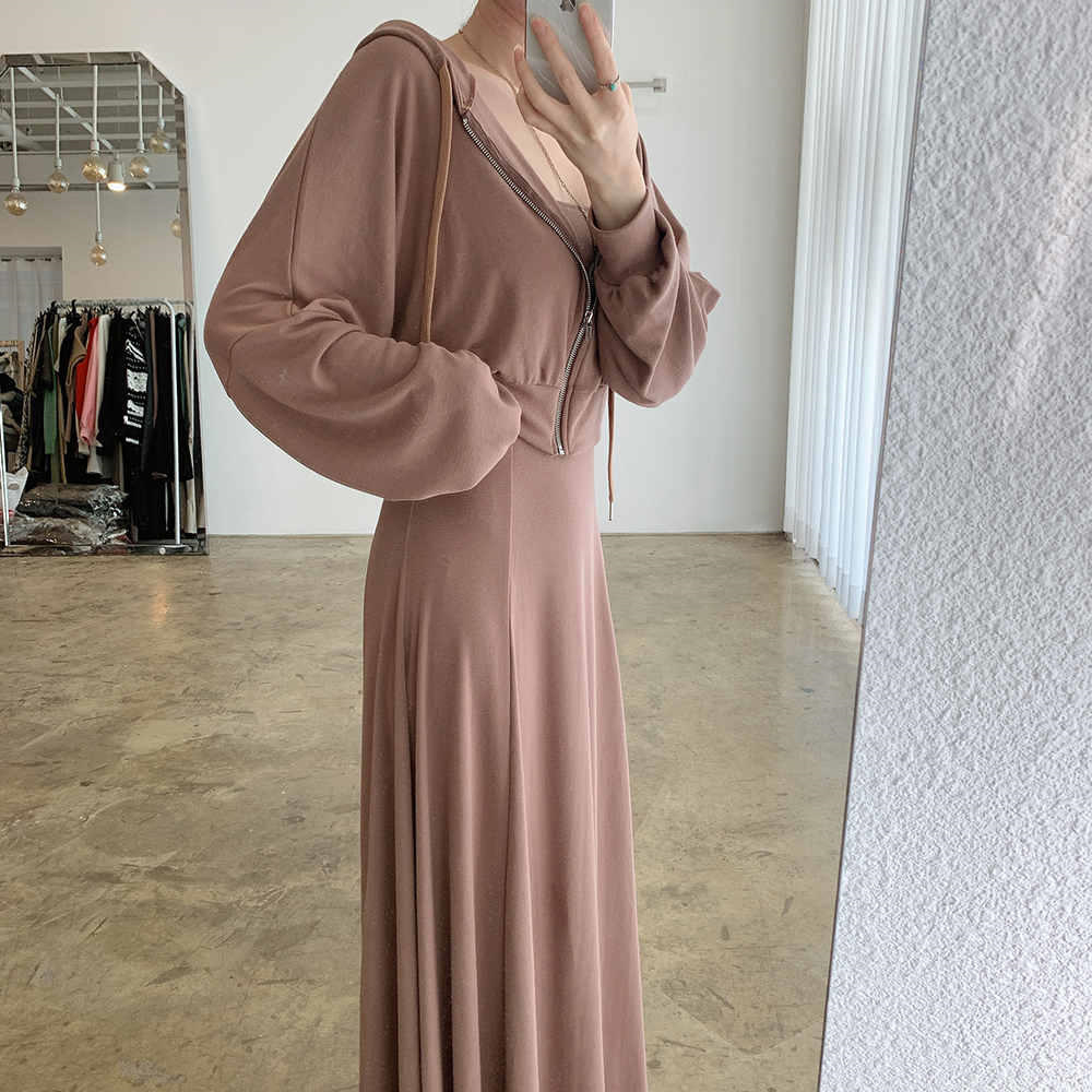 長袖パーカータイプで着脱しやすく、シンプルなデザインが上品な印象を演出します。