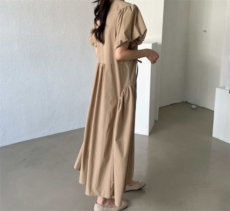 シャツタイプのロングワンピースで上品な着こなしを実現。