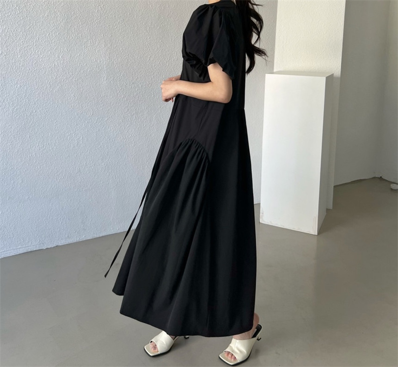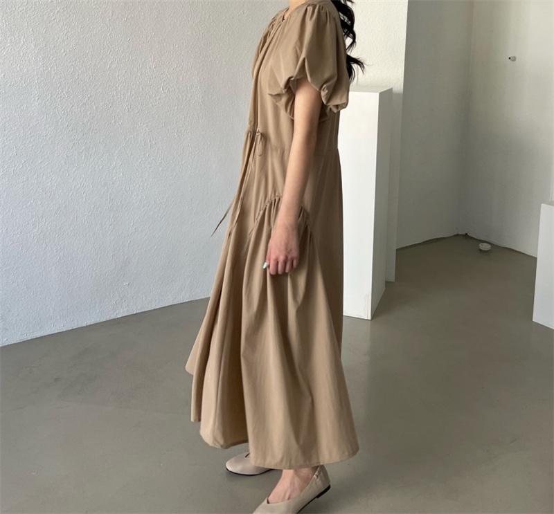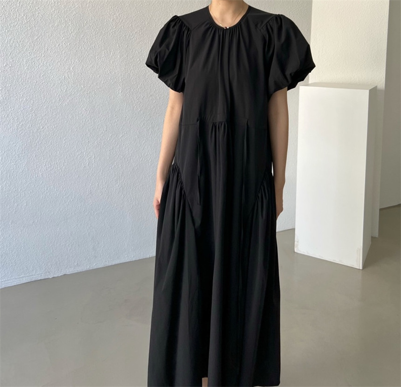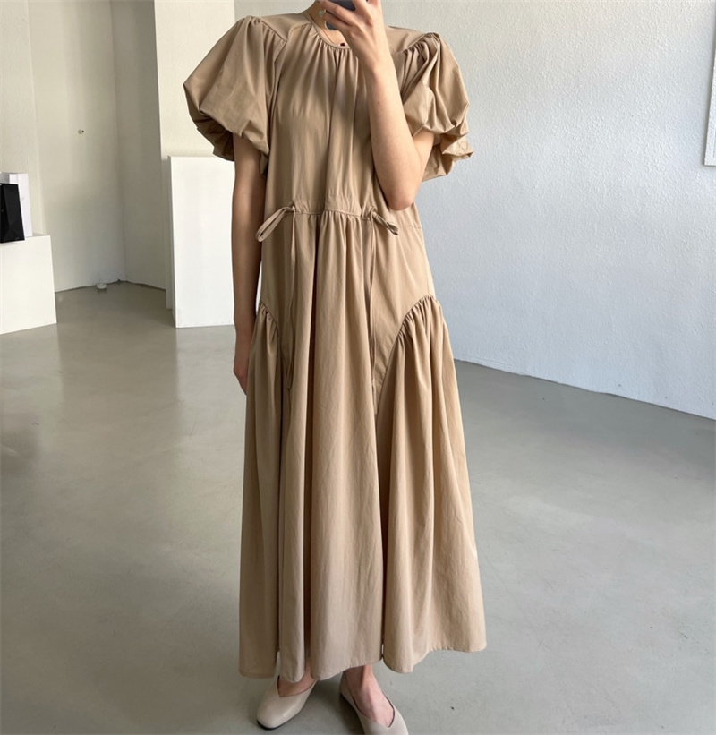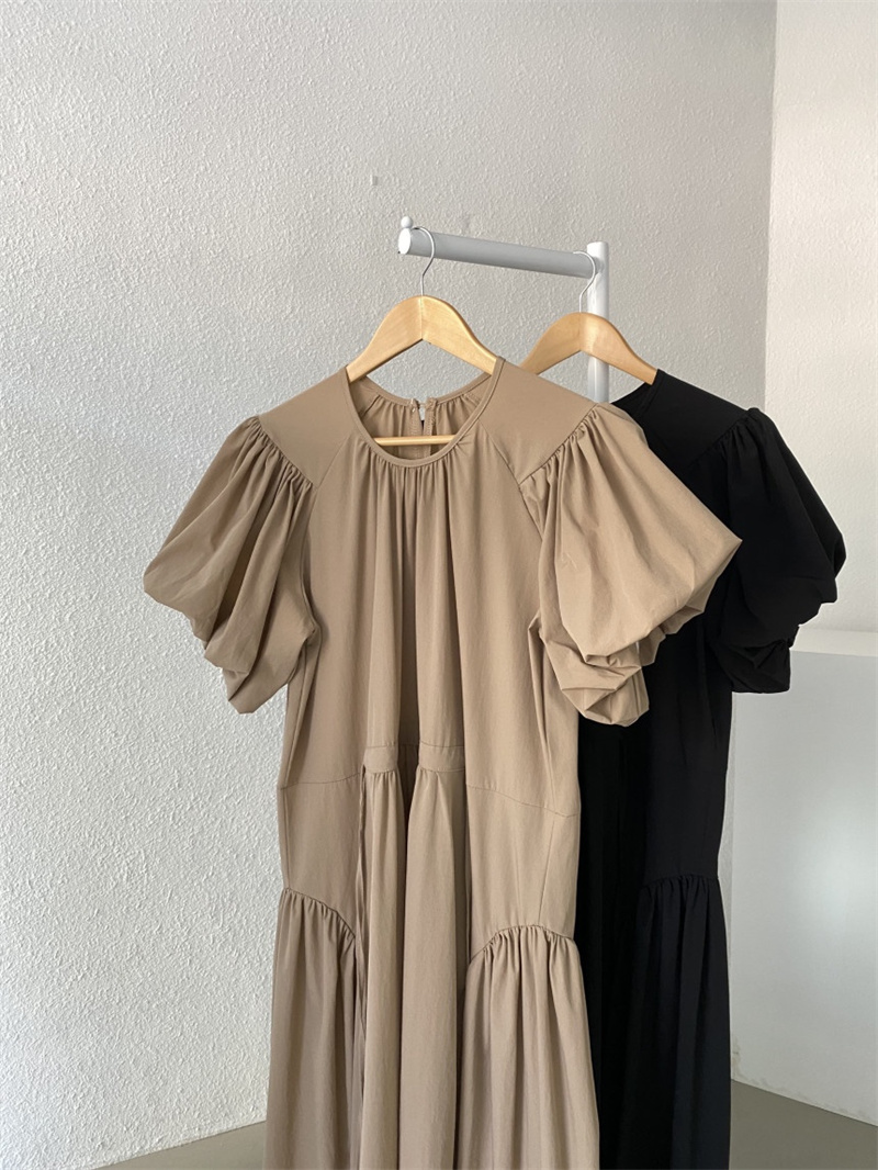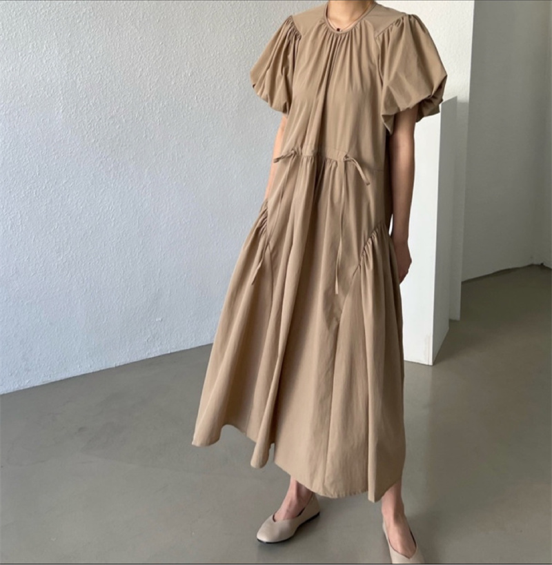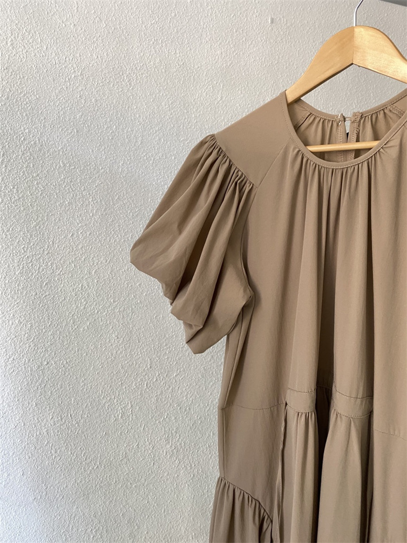 可愛らしいパフスリーブとティアード デザインが女性らしさを演出します。