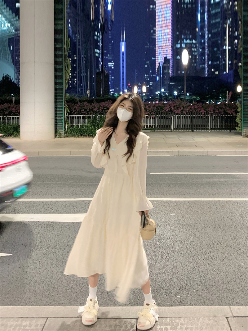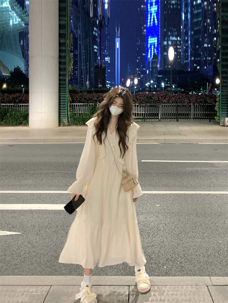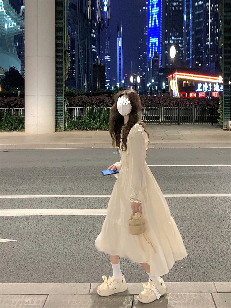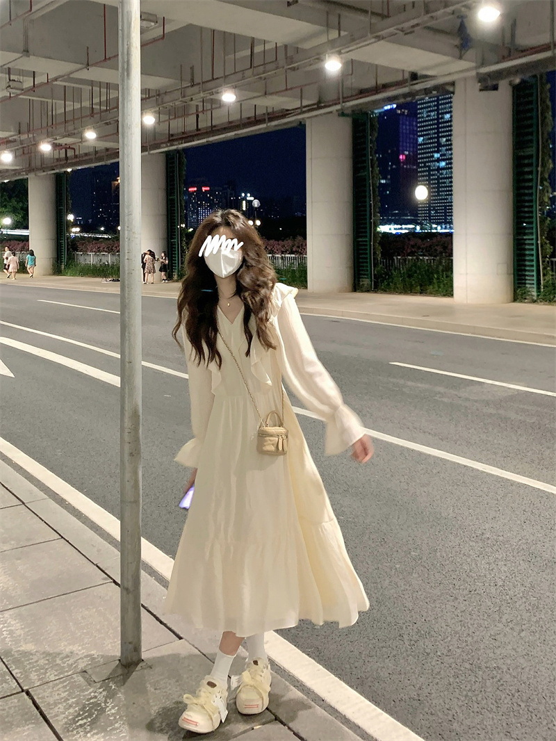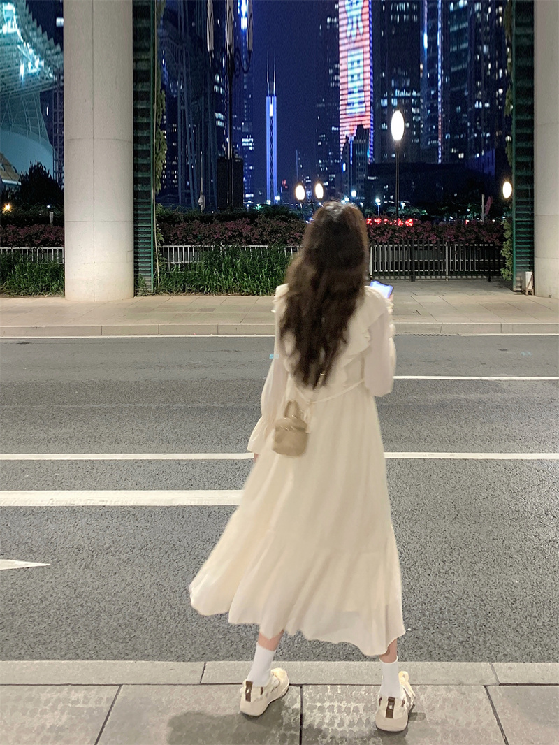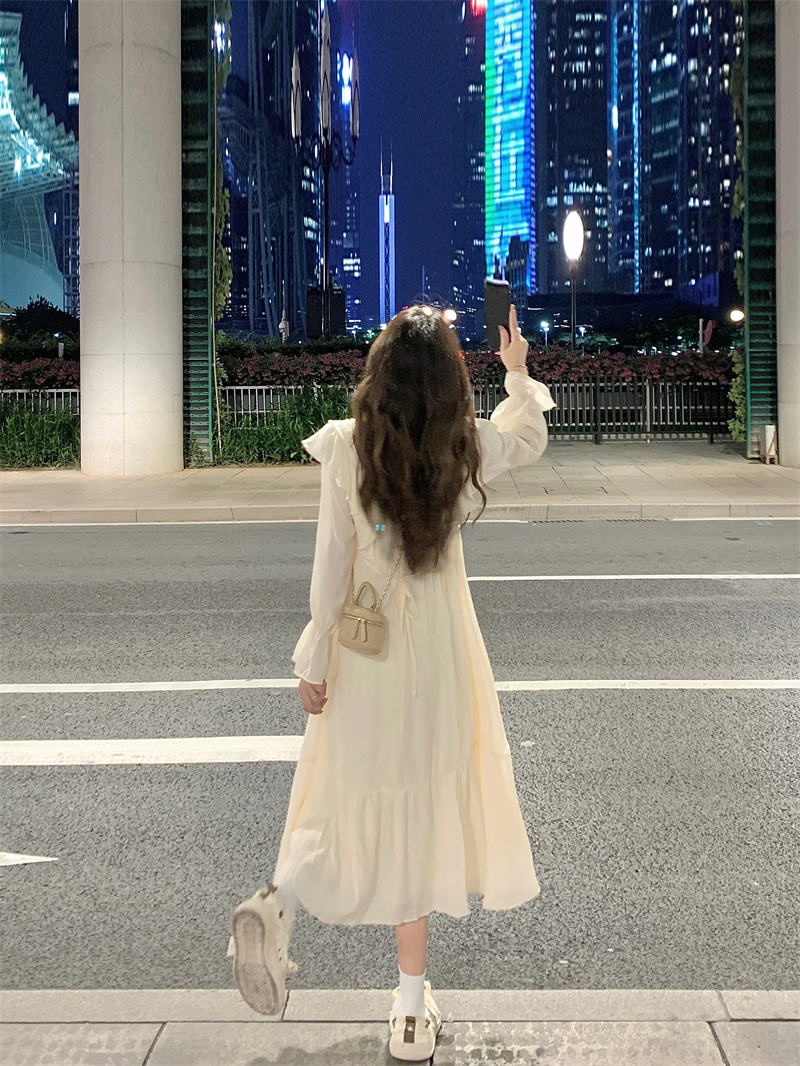 今季注目の重ね着風デザインが魅力的なシャツタイプのロングワンピース。