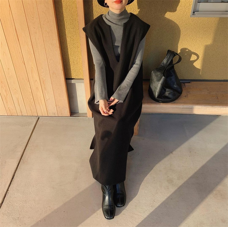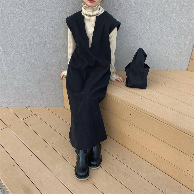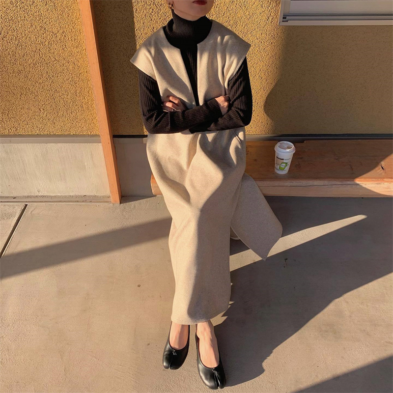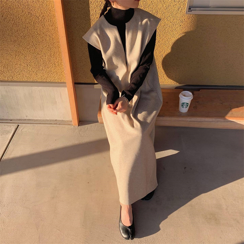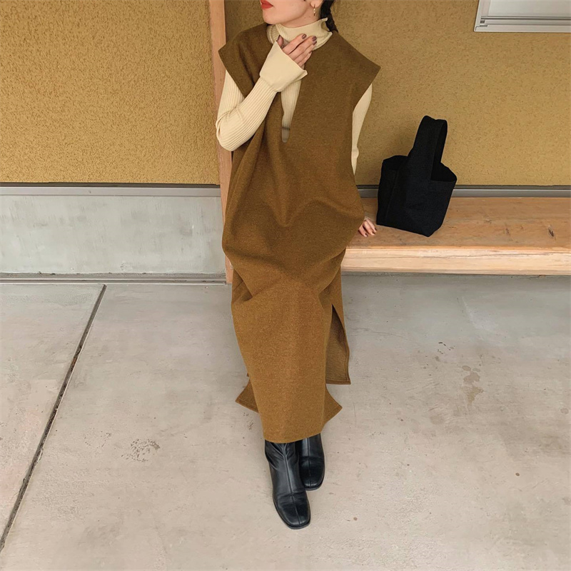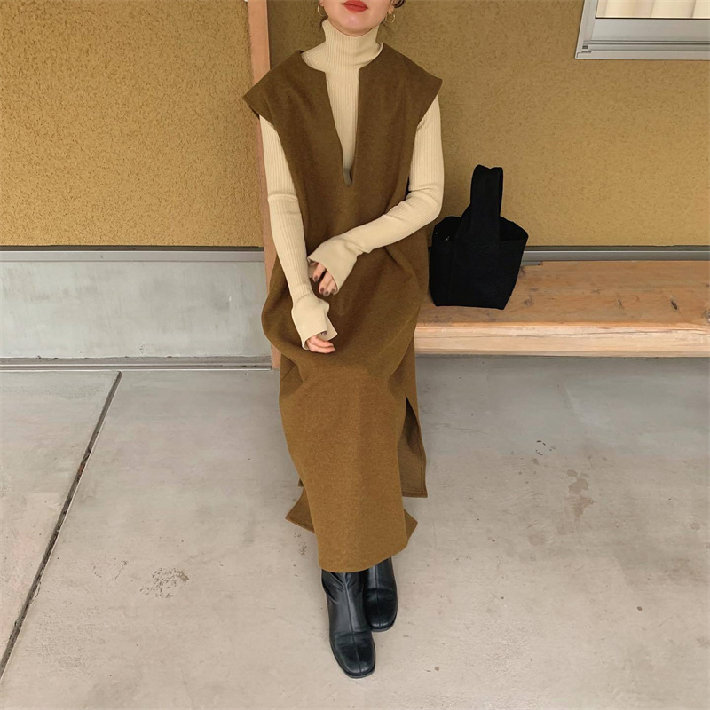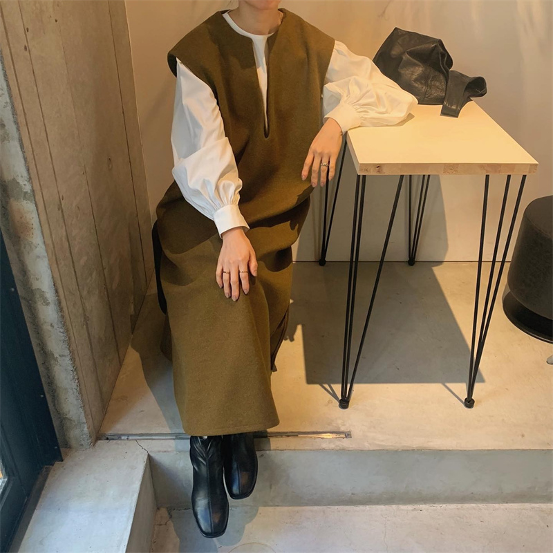 ロングワンピースとして一枚でも、インナーシャツと合わせても楽しめる2通りの着こなしが可能。