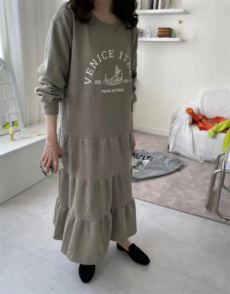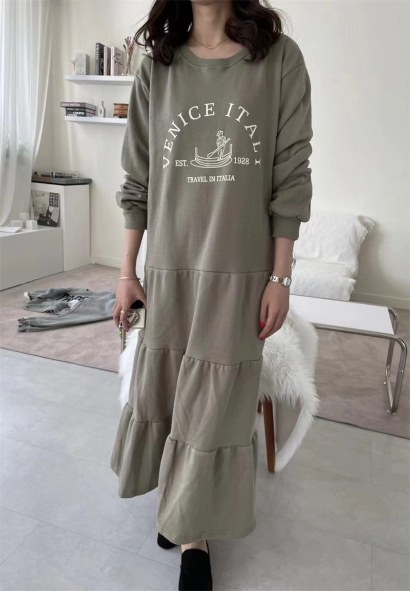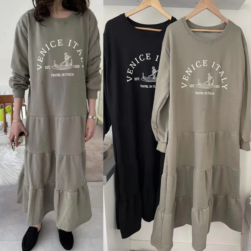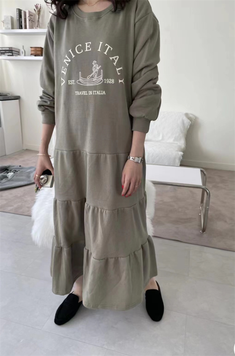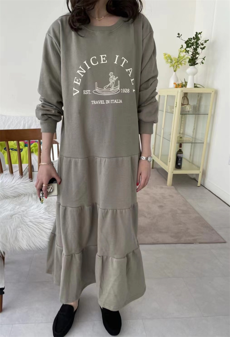 ゆったりとした着心地が魅力的なスウェット素材のロングワンピースです。