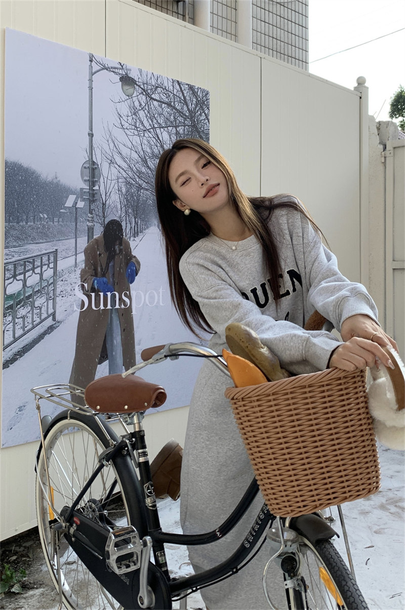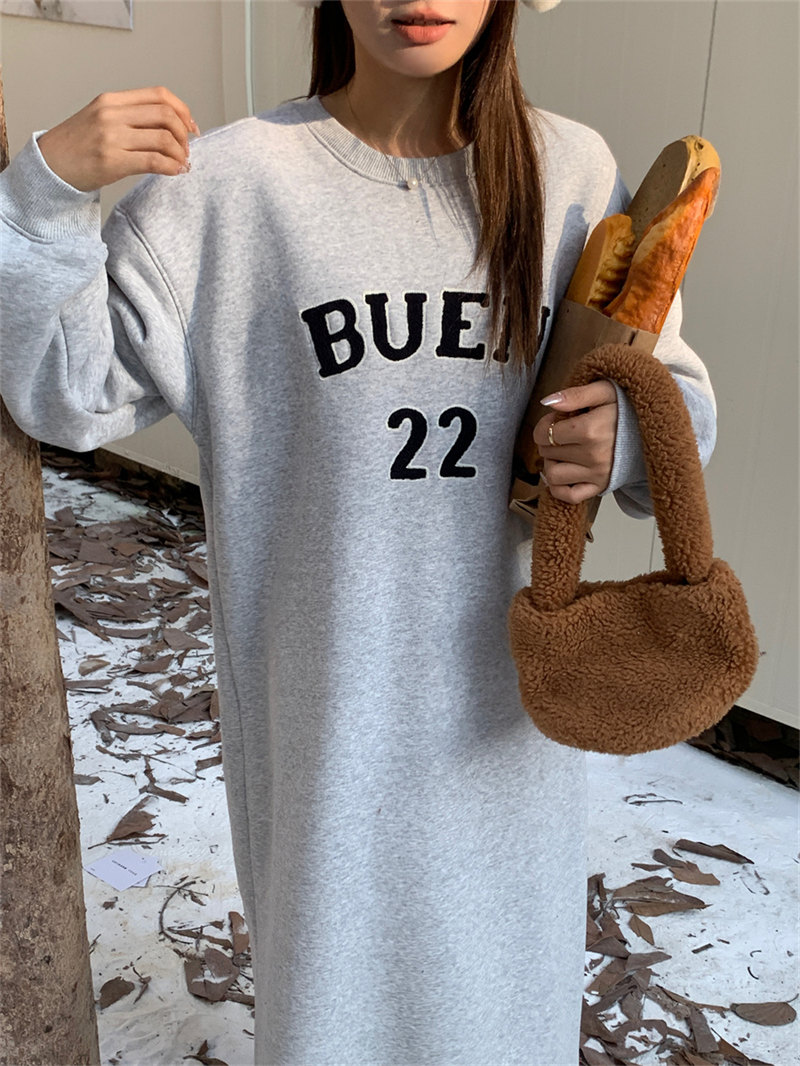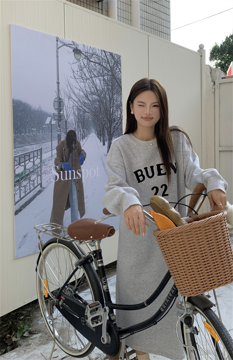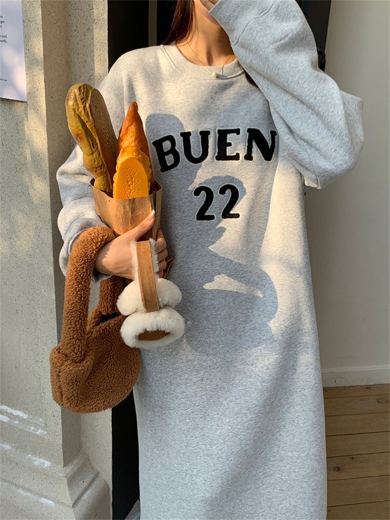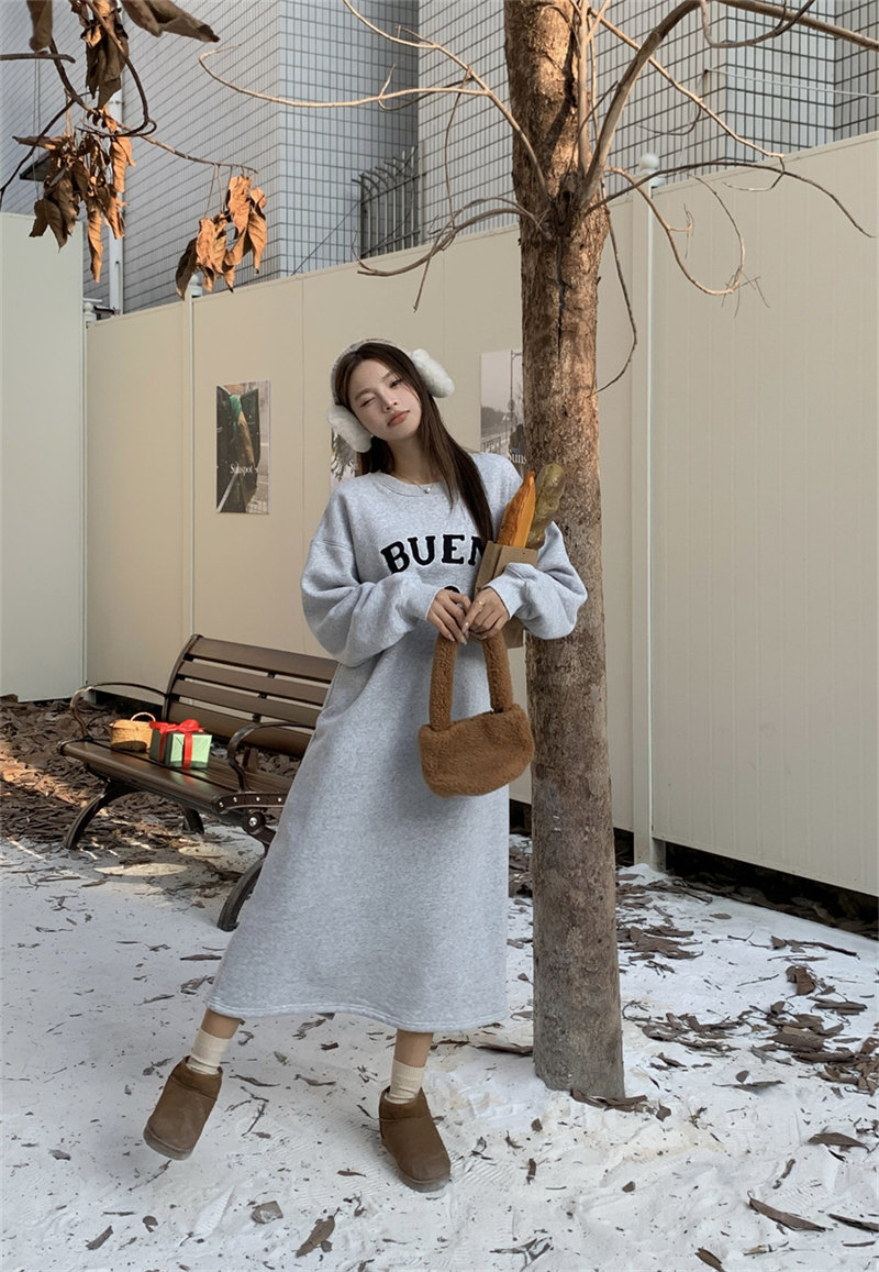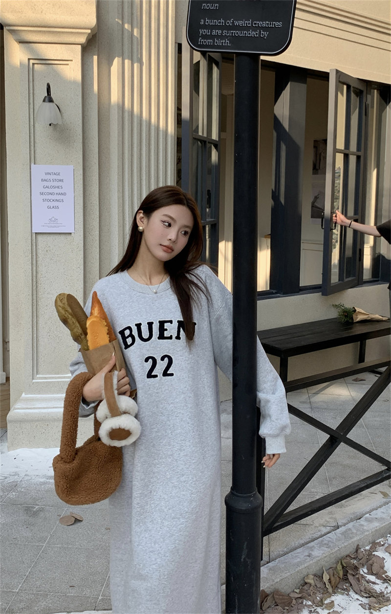 今季注目の韓国風デザインが魅力的なスウェット素材のロングワンピース。