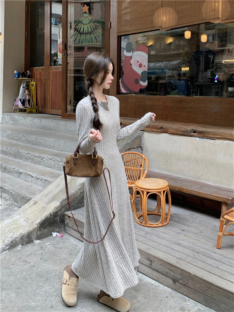 2024年新作の韓国風ニットロングワンピースが登場しました。