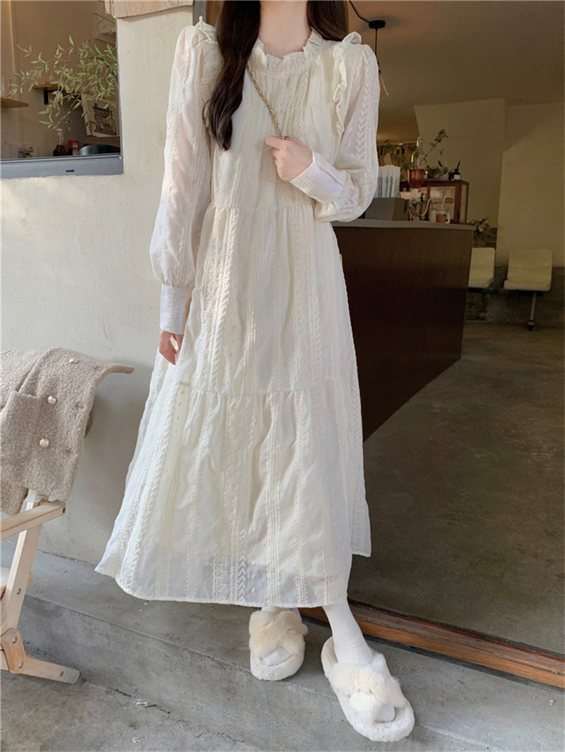 繊細なレース装飾と上品な白色が美しい一着です。