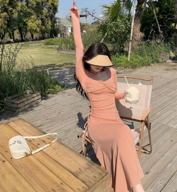 体にフィットするシルエットで美しいラインを演出し、長袖デザインで上品な仕上がりに。