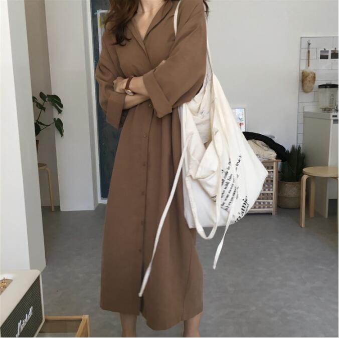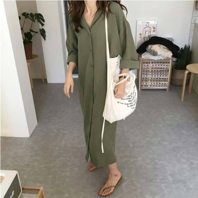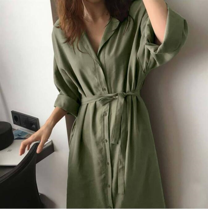 上品なシャツデザインのロングワンピースが登場しました。